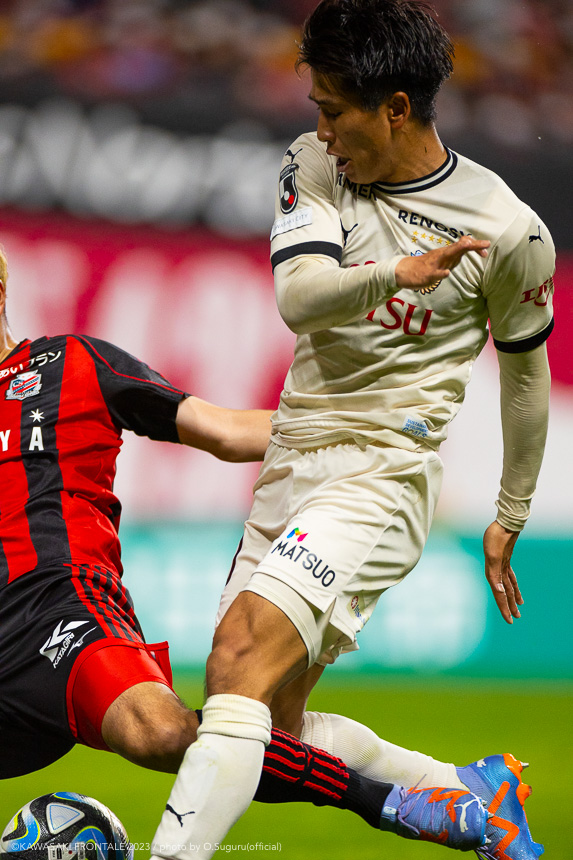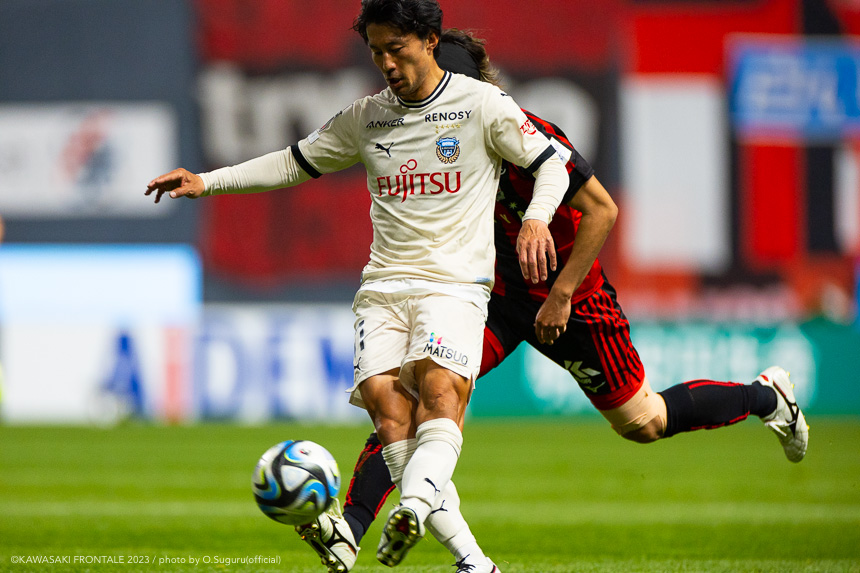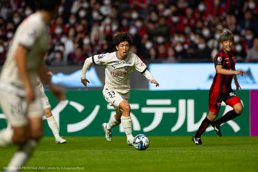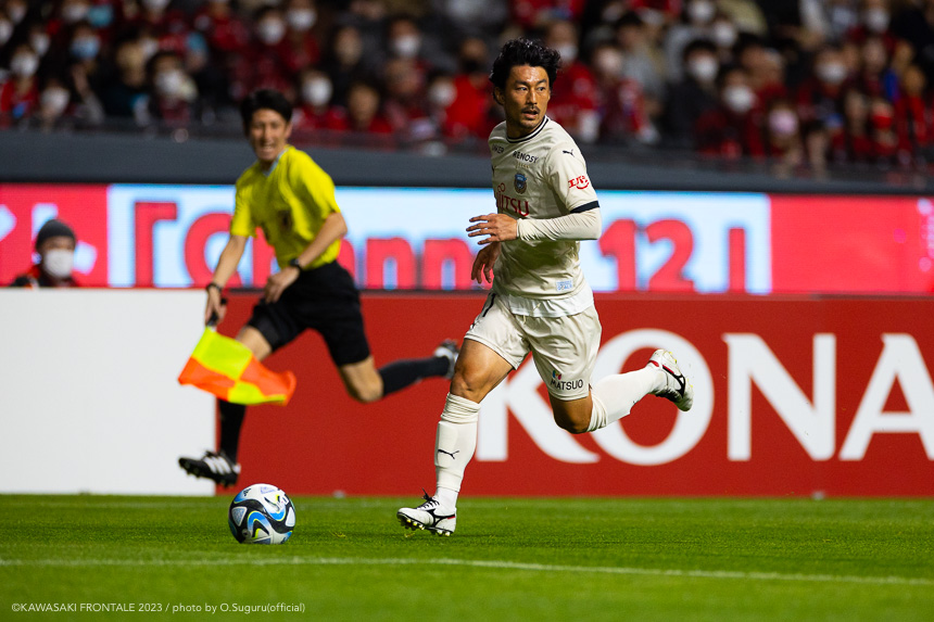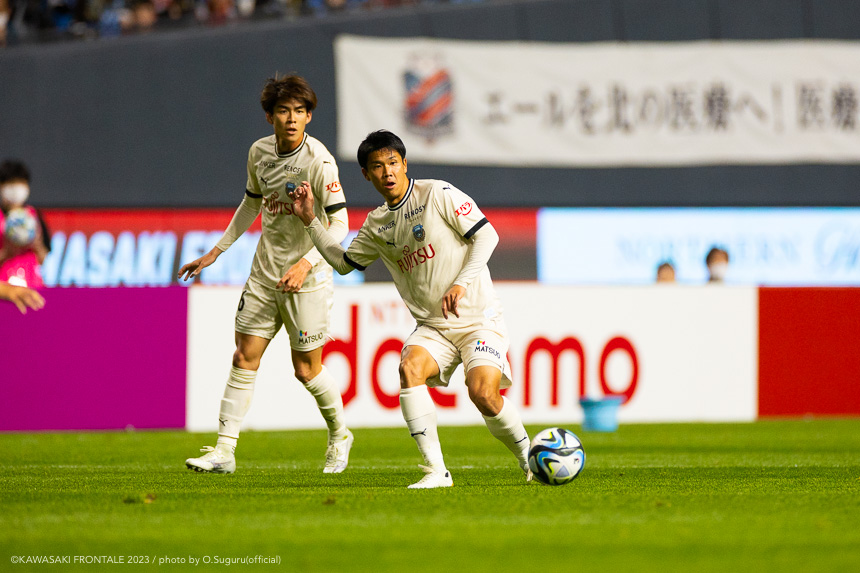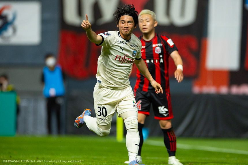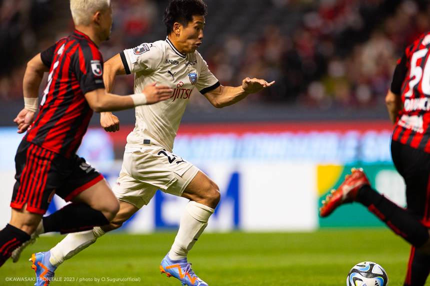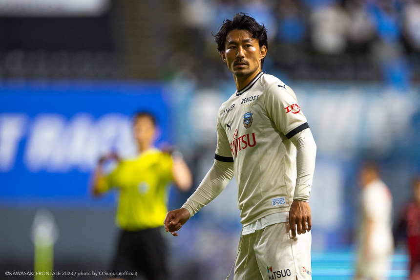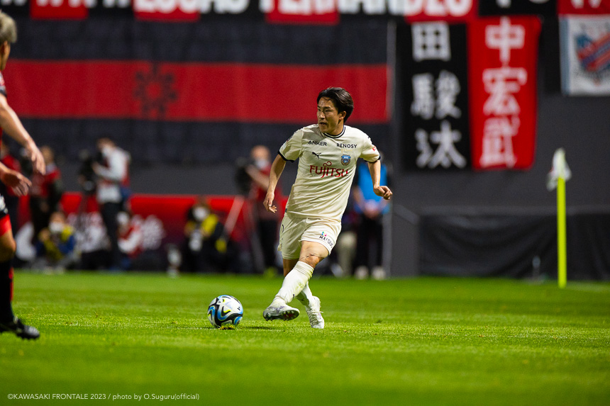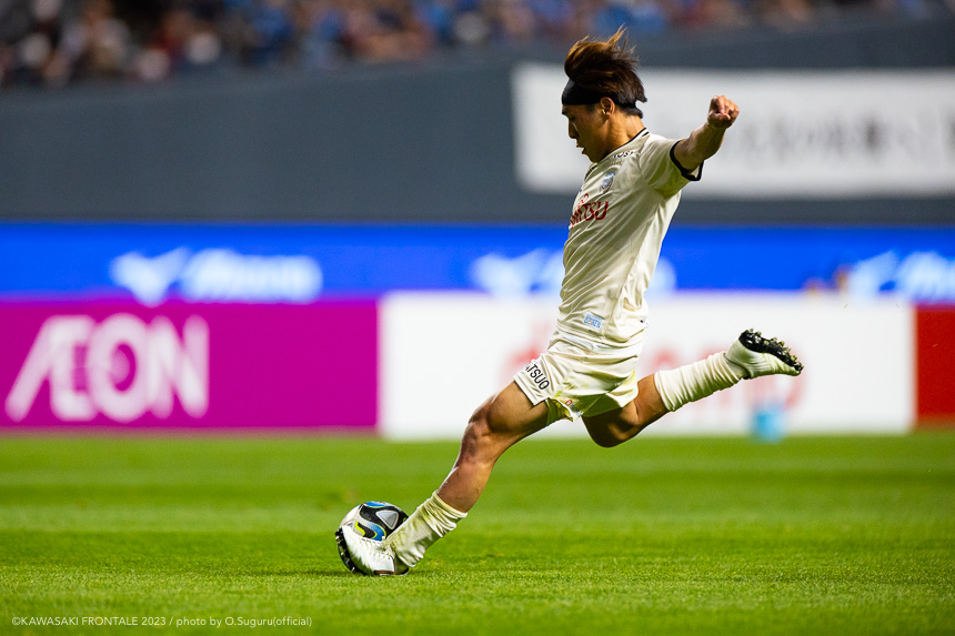 - 内容を求められるところはあるが、ここ数試合勝っていなかったので勝利を手にしたことは大きいと思う。絡んだ2得点ともオニさん(鬼木達監督)から話があったように、相手がマンツーマンに近い守備なので、ポジションに関係なく流動的に動いて背後に流れることでチャンスを作ることができた。競り合いは自分の強みでもあるので、得点につながったのはよかった。アキさん(家長昭博)が真ん中だったので、アキさんが落ちたときに食いついたスペースを狙おうと話していた。1点目のタイセイ(宮代大聖)が決めた得点も、試合前にソンさん(チョン ソンリョン)と内側から走れるようにと話していた。そういうコミュニケーションがあったからこそ取れたと思っている。