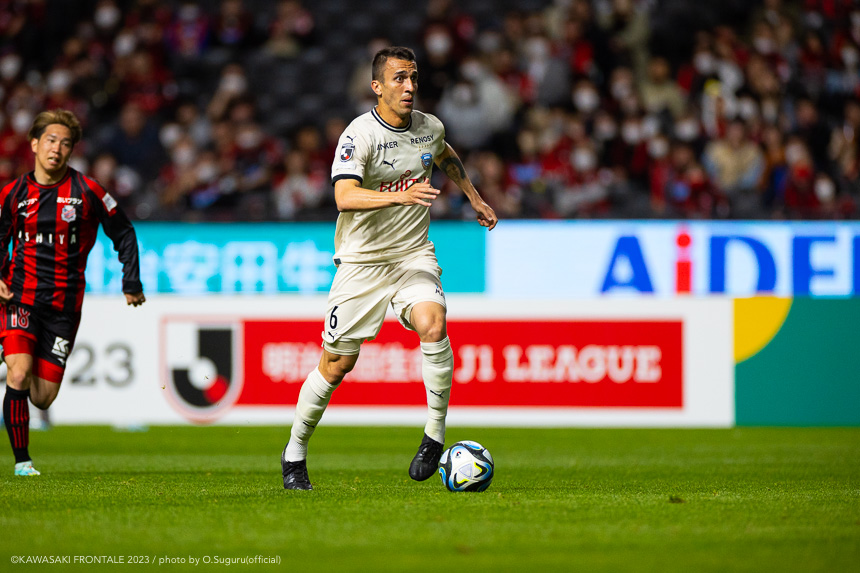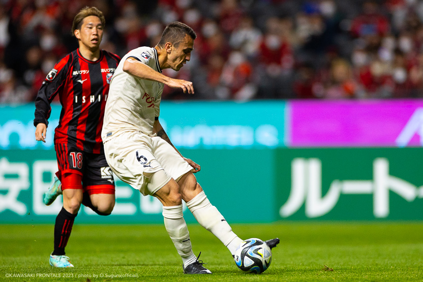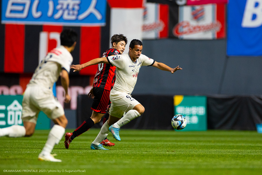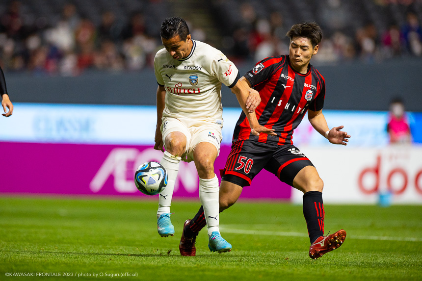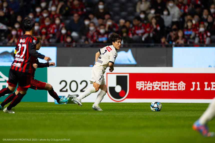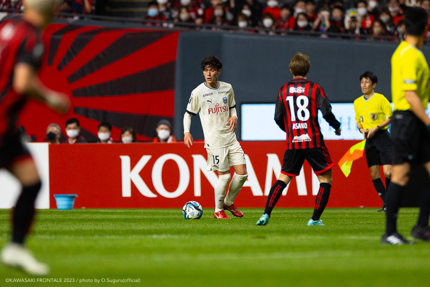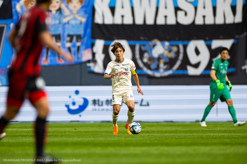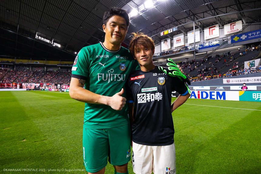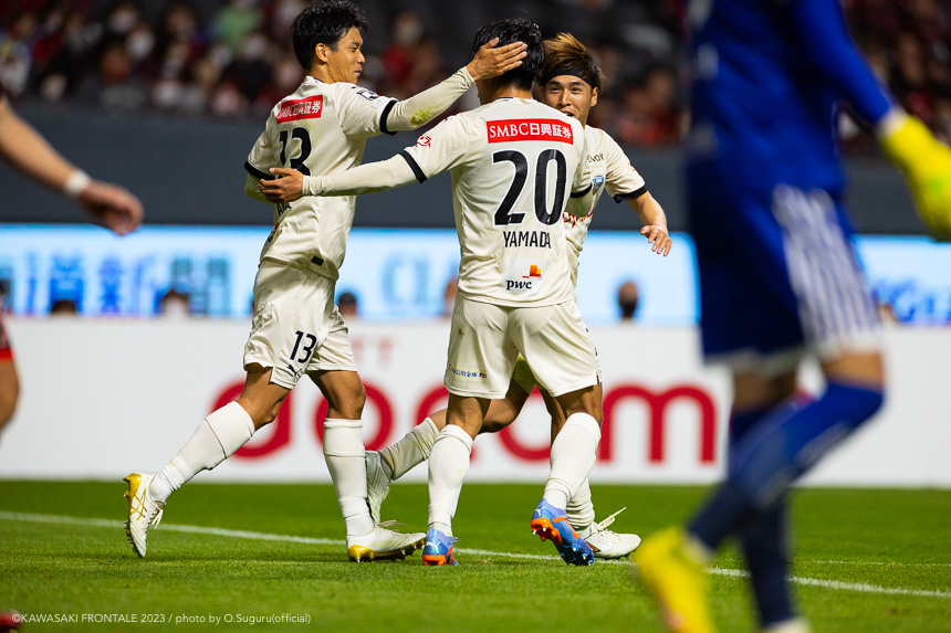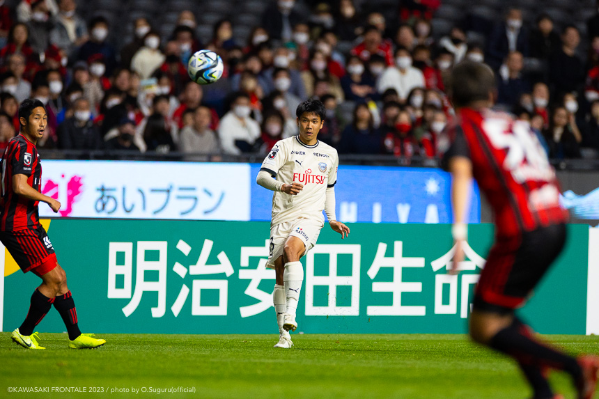 - 内容を求められるところはあるが、ここ数試合勝っていなかったので勝利を手にしたことは大きいと思う。絡んだ2得点ともオニさん(鬼木達監督)から話があったように、相手がマンツーマンに近い守備なので、ポジションに関係なく流動的に動いて背後に流れることでチャンスを作ることができた。競り合いは自分の強みでもあるので、得点につながったのはよかった。アキさん(家長昭博)が真ん中だったので、アキさんが落ちたときに食いついたスペースを狙おうと話していた。1点目のタイセイ(宮代大聖)が決めた得点も、試合前にソンさん(チョン ソンリョン)と内側から走れるようにと話していた。そういうコミュニケーションがあったからこそ取れたと思っている。