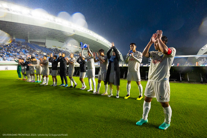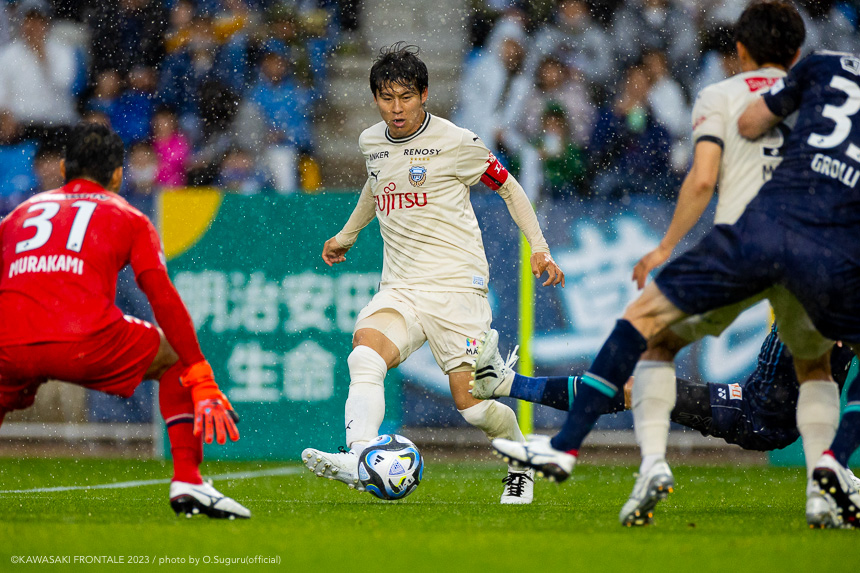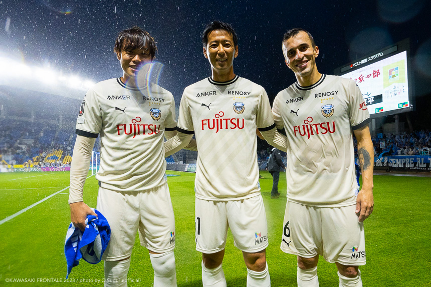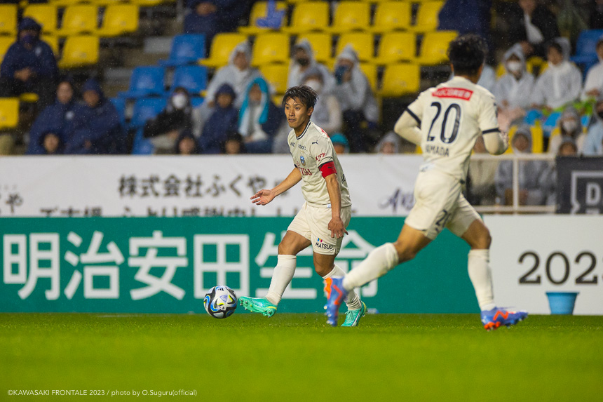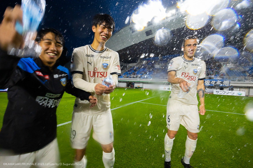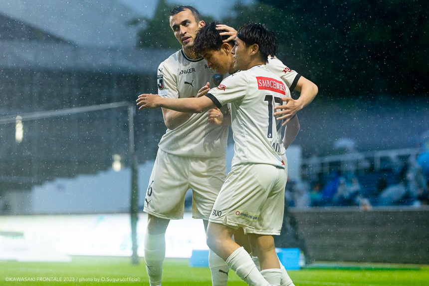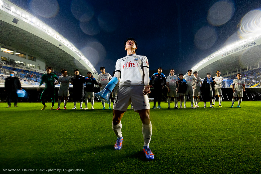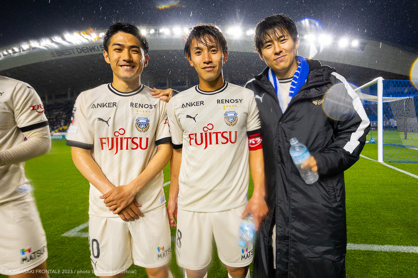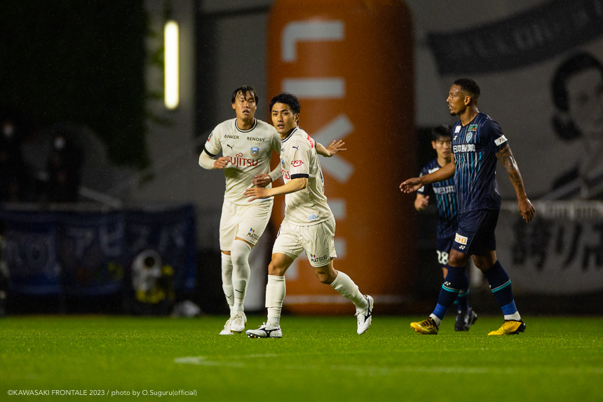 - 前節は先制して追加点を取れずに終わった。今日も先制点が大事だったが、追加点を絶対に取ろうというのは試合前から言われていた。本当に90分間、粘り強く戦うことができたと思う。(2点目は)普段からアキさん(家長昭博)からいいボールが来ているし、練習中からすり合わせをしてきた。練習していた部分が試合に出たのかなと。(3点目は)ダイヤくん(遠野大弥)が抜け出したときにはゴールを取れるポジションにいた。最後、自分が触れなかったが、あそこにいることが大事。チームとして3点目を取れたこともよかったと思っている。あとは個人のところにフォーカスしてやるだけだと思う。最後に失点をしてしまったが、どれだけ失点をしても多くの得点を取れば勝てる。それがフロンターレらしいサッカーだと思っているので、より攻撃的にやっていきたい。もっともっと成長できるように、次の試合に向けていい準備をしていきたい。