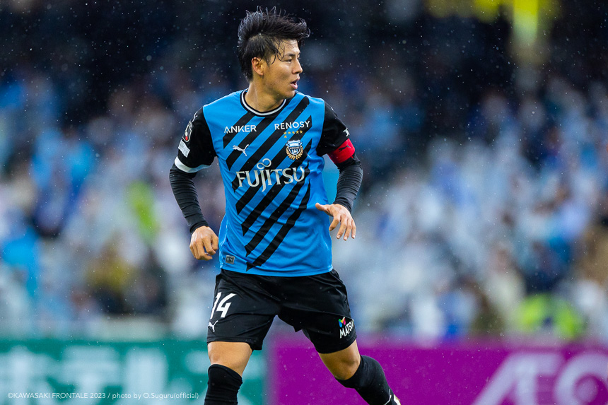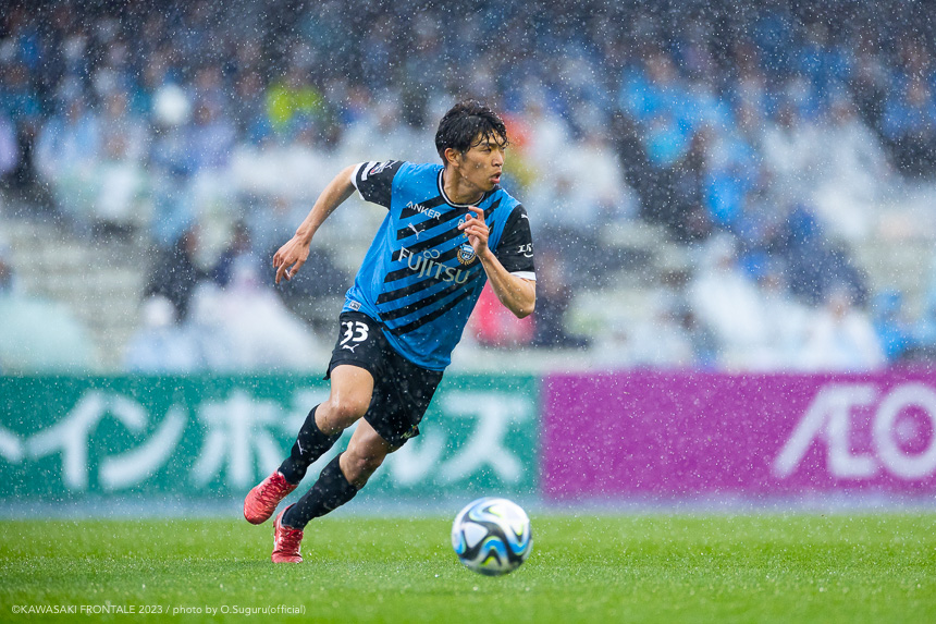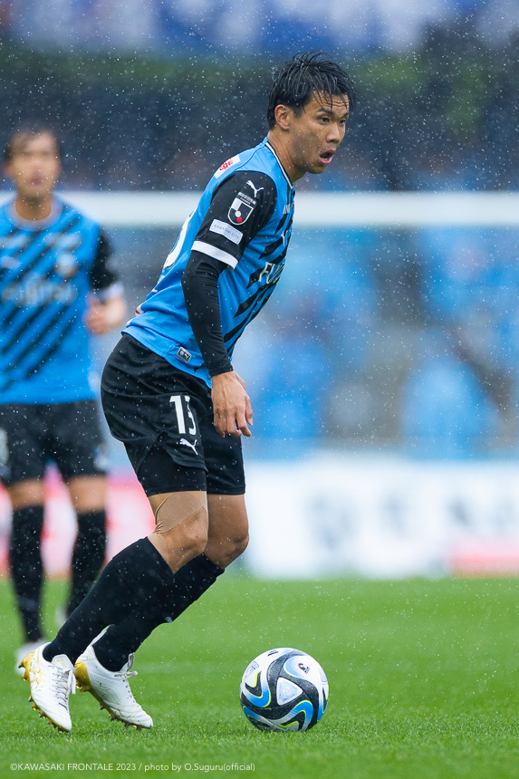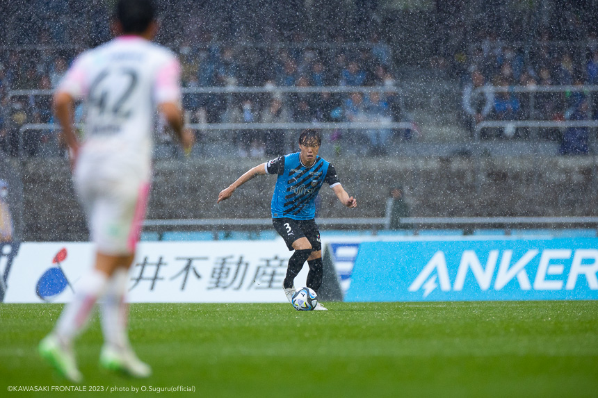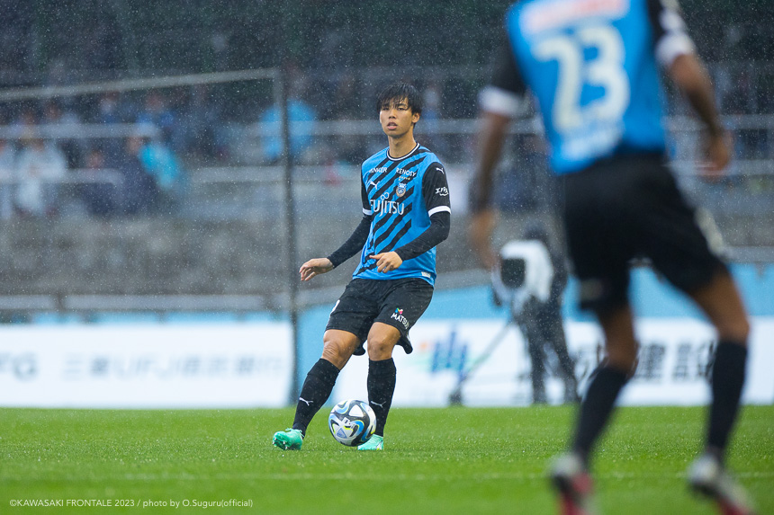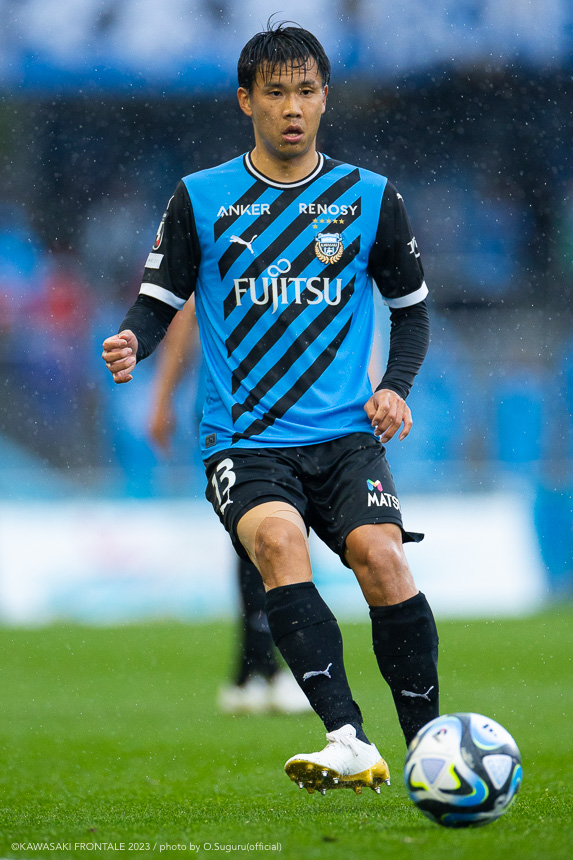 - 天候的にピッチがスリッピーで難しい試合で、前半はうまくいかないシーンが多かったが、ピッチ状況や相手のプレスに慣れてきて結果的に1点取れて勝ててよかった。今日はサイドバックだったが、ゲームを作ることや最後ニアゾーンに飛び込んでいくプレーを監督から求められていたと思うので、それはしっかりできたかなと。マルちゃん(マルシーニョ)がボールを持つと相手を引きつけてくれるし、マルちゃんは意外と走った選手を使うのがうまい。いいタイミングで自分にボールを出してくれた。個人的にも点が取れそうなシュートがあったが、ああいう場面で取れればチームが楽になる。ああいうチャンスをしっかりものにできるようにしたい。内容的にいいサッカーをすることも大事だが、それができないときにチームとして我慢することができている。我慢するところは我慢して、攻撃に出て行くタイミングでは積極的にしかける意識が浸透しているのが、今のチームのいいところだと思う。等々力でサポーターの皆さんに勝利をプレゼントしたいと選手は強く思っていたし、試合前に監督からも等々力で勝とうと言われていた。それが形になってうれしい。