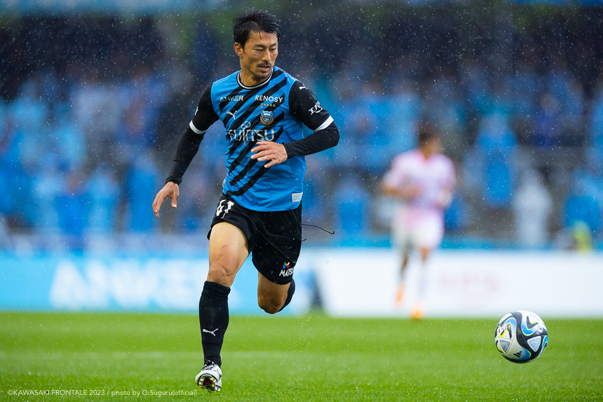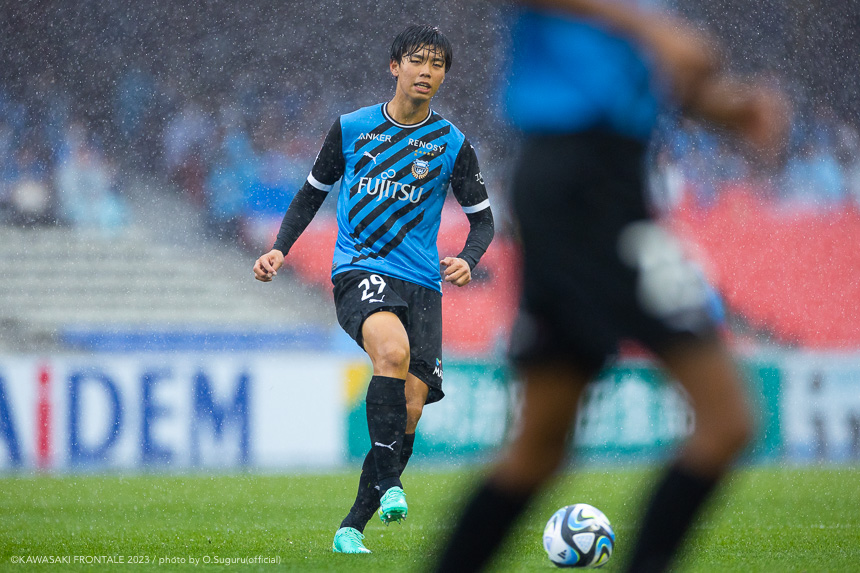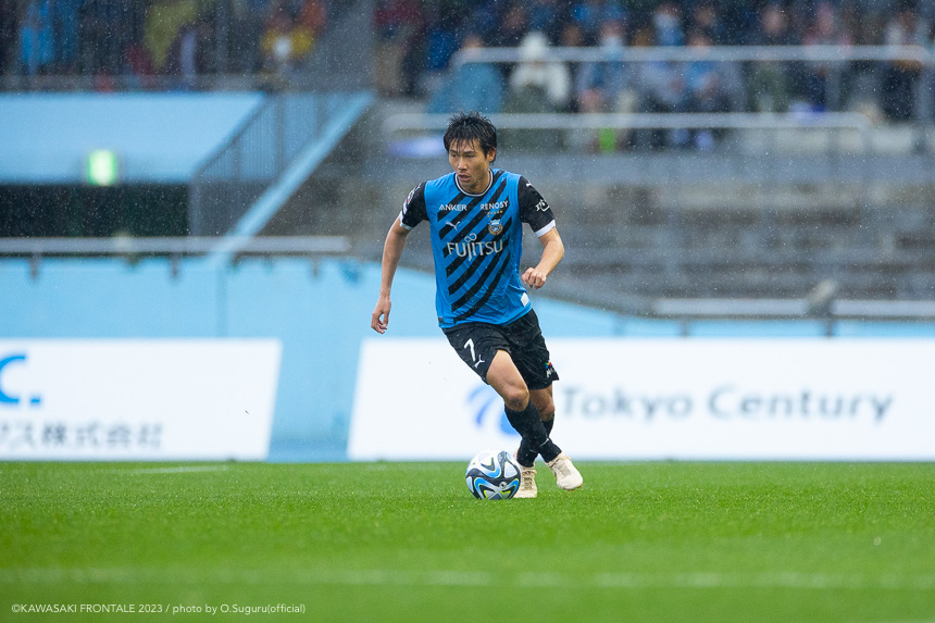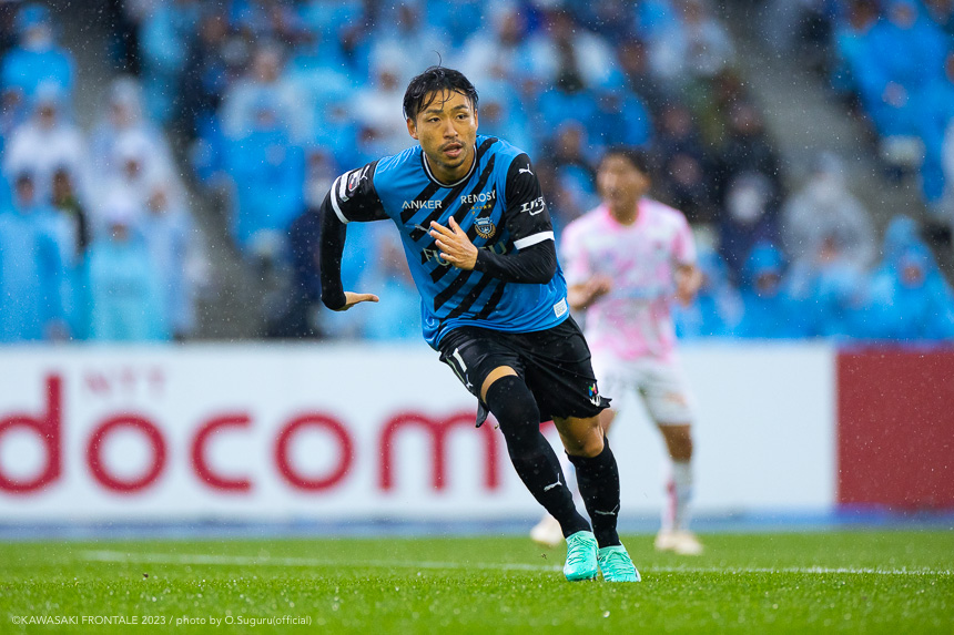 - 僕が監督になってからずっと評価しているのは、やっぱり結果を残していくところ、得点だったりアシストだったり。そうやっていろんな選手との、例えば憲剛(中村憲剛)との競り合いでもそうやって結果を残してきましたし。ただもっとやってほしいところでいうと守備のところ。それを今日のゲームなんかもそうですが、前節なんかも最後身体を張って枠外にシュートを飛ばしたりとか、今日でいうとベンチの目の前で戻りながらスライディングして取ったりとか。プレスバックのところなんかも非常に感度が良くなってきているので、そういうところを続けることが、やっぱり上手い選手がそういうことがやるというのがチームにエネルギーを与えてくれると思うので、続けていってほしいと思います。非常に良くなっていると思います。