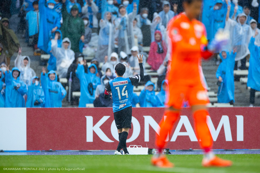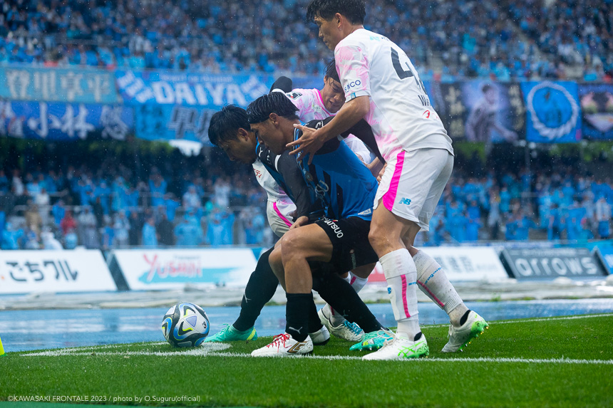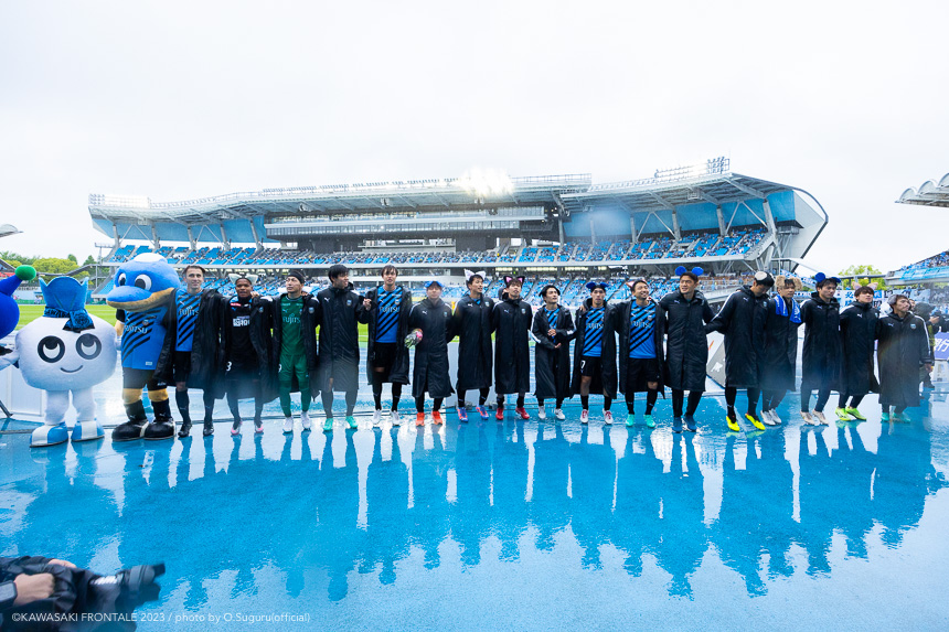 前半は拮抗した展開だったが、後半からは完全にゲームを掌握してチャンスを創出したフロンターレは、脇坂が決勝点を奪って1-0で勝点3を奪取。今季リーグ戦ホーム初勝利で、雨の等々力陸上競技場に駆けつけたサポーターとともに喜びを分かち合った。
