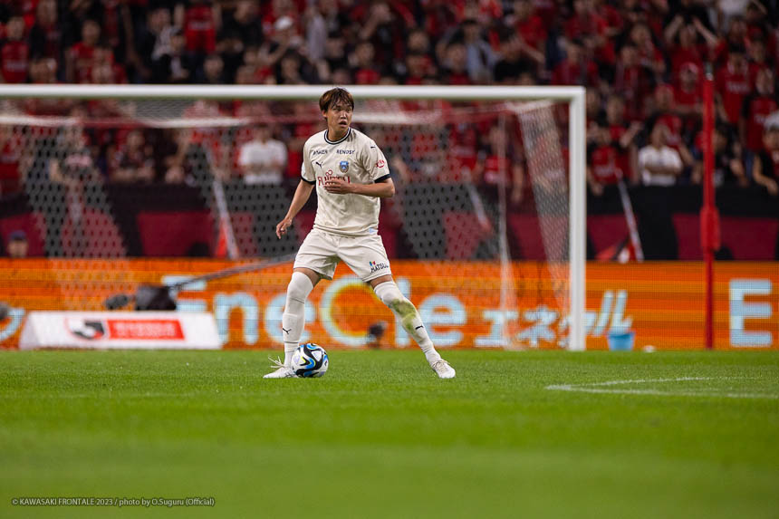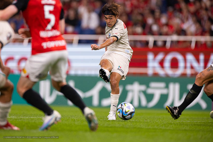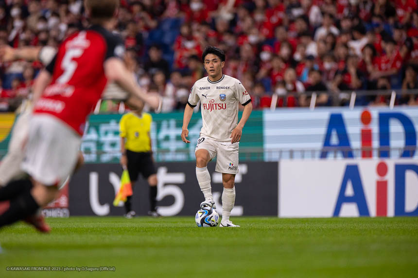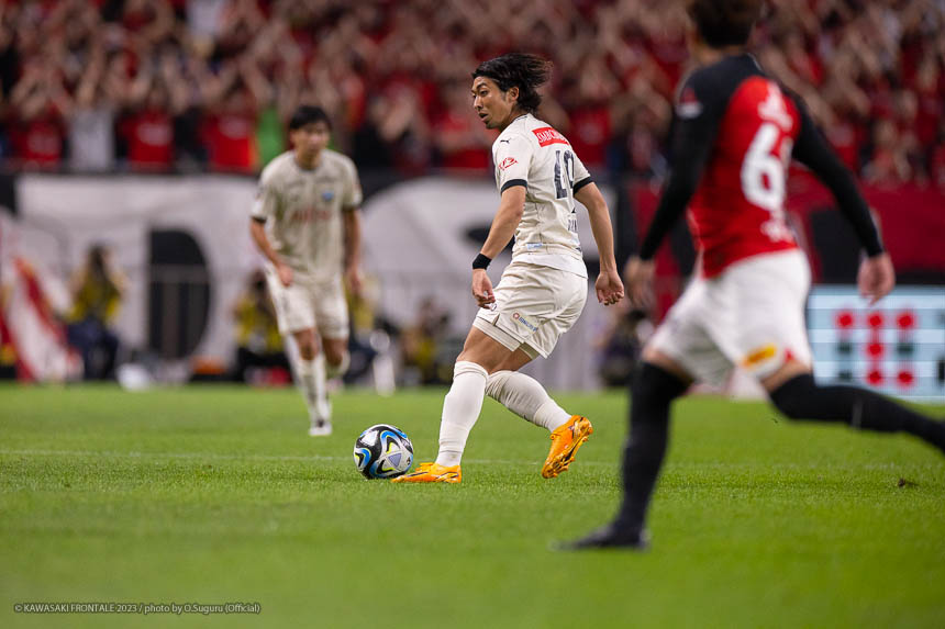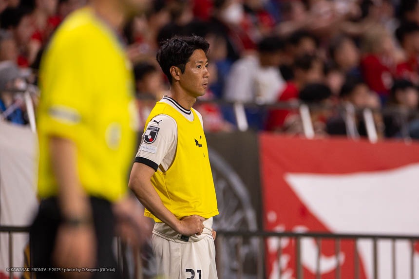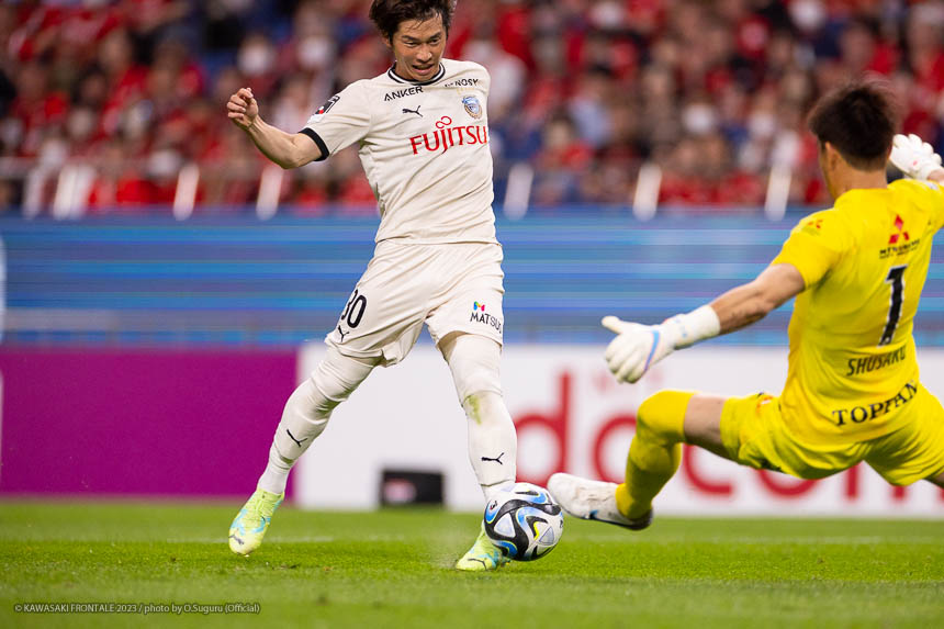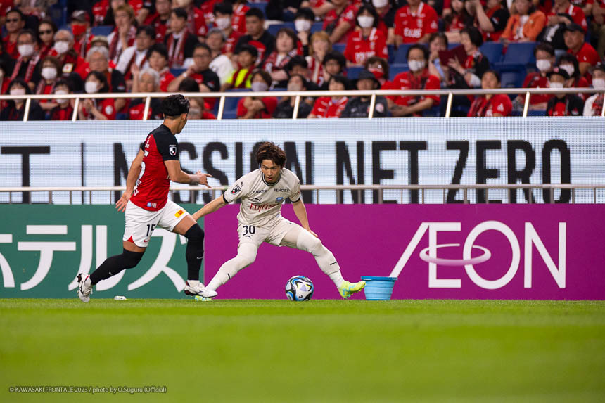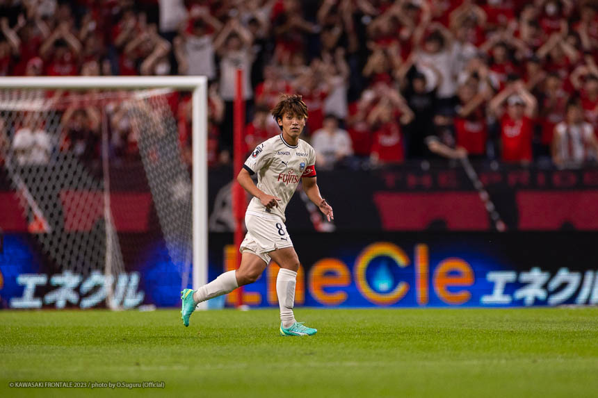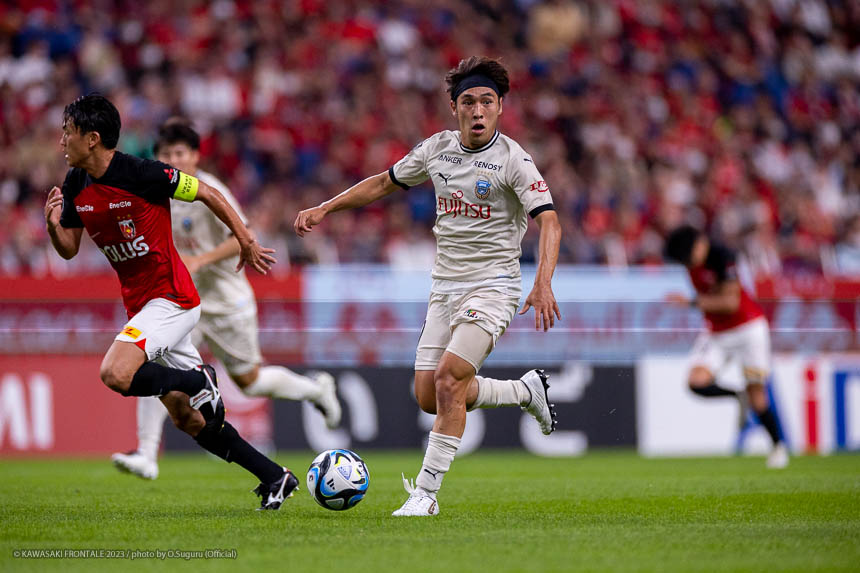 後半立ち上がりの浦和の攻勢をしのぐが、相手GKのロングキックから失点。しかし、前線からプレッシャーをかけて相手のミスを誘い、オウンゴールで同点に追いつく。その後はフロンターレが押し気味に試合を進めるが、決定機を得点につなげられず。終盤退場者を出し数的不利となるがしぶとく戦い抜き、試合はアウェイでドローという結果に終わった。