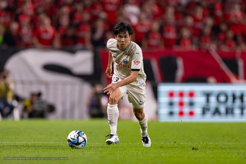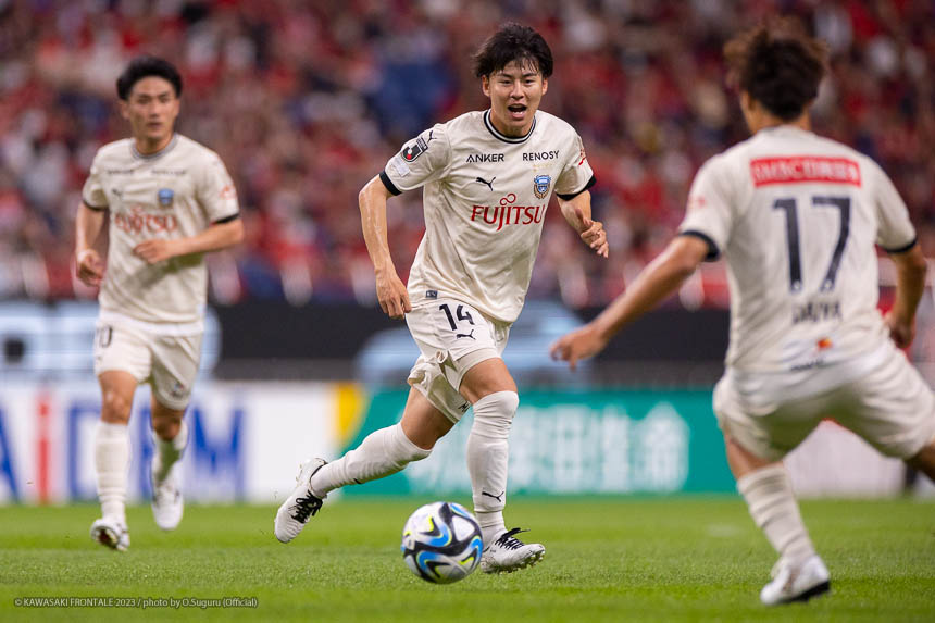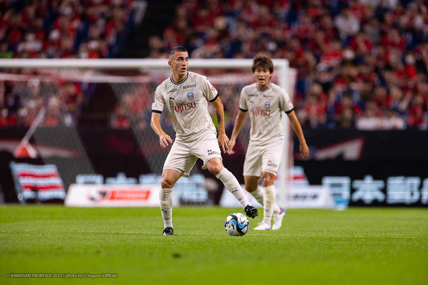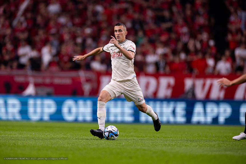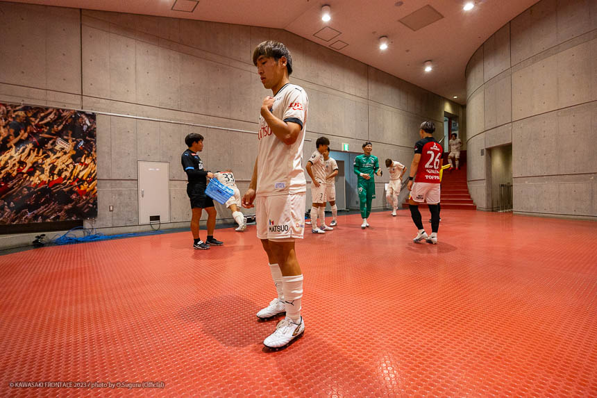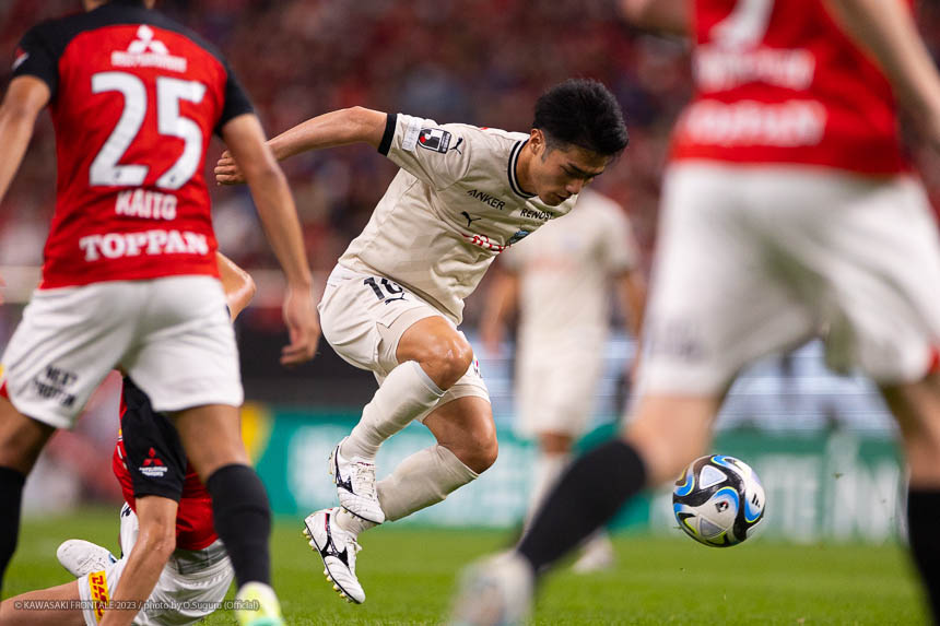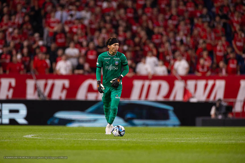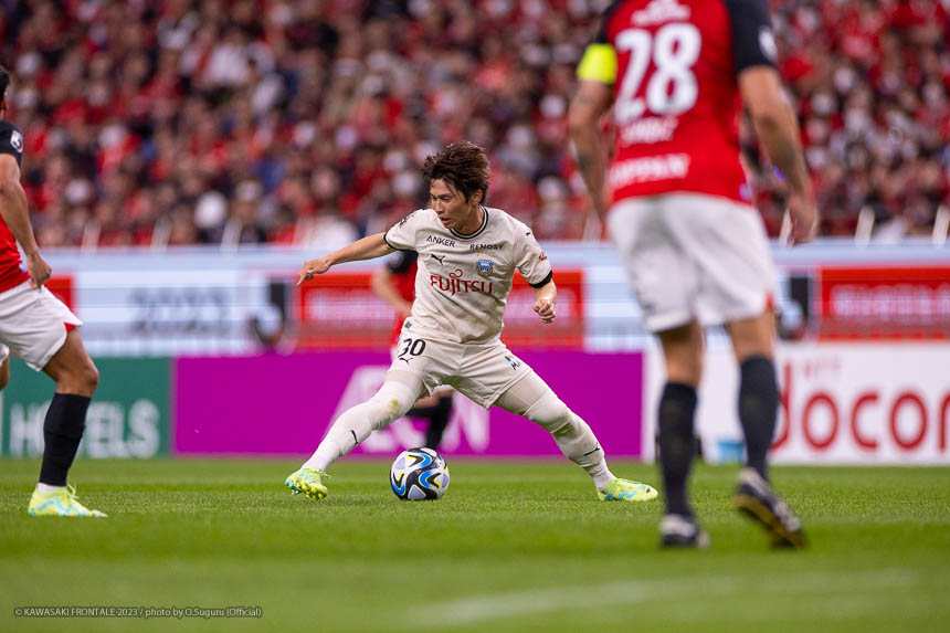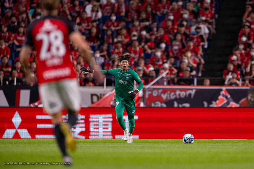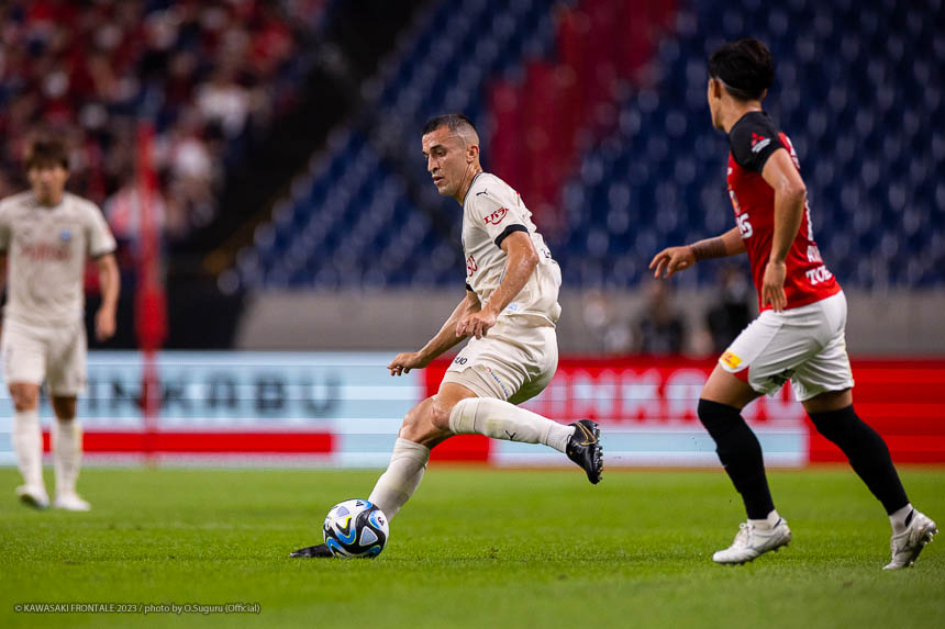 後半立ち上がりの浦和の攻勢をしのぐが、相手GKのロングキックから失点。しかし、前線からプレッシャーをかけて相手のミスを誘い、オウンゴールで同点に追いつく。その後はフロンターレが押し気味に試合を進めるが、決定機を得点につなげられず。終盤退場者を出し数的不利となるがしぶとく戦い抜き、試合はアウェイでドローという結果に終わった。