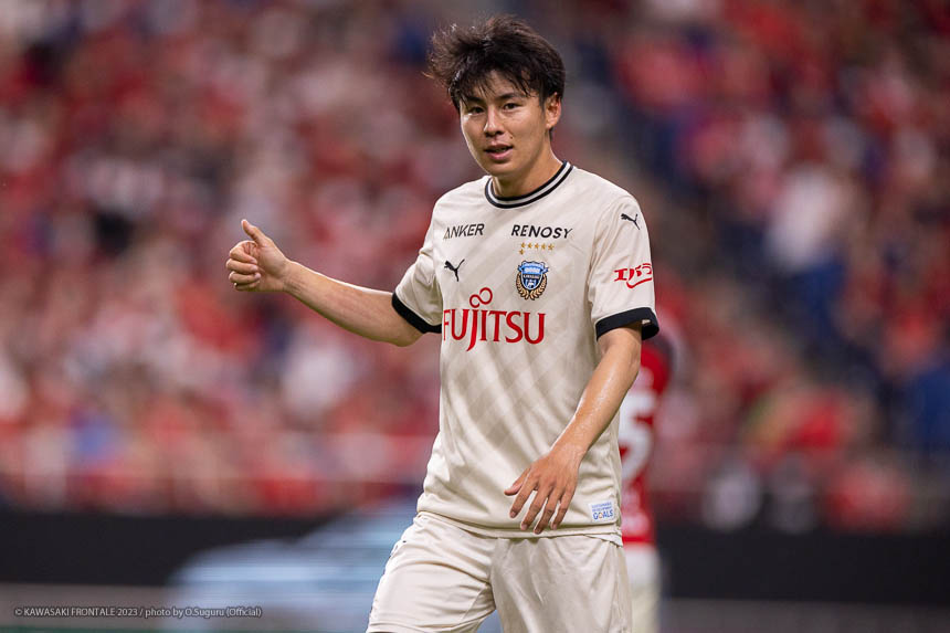 - シンプルですが相手の逆を取るとか、プレッシャーが来ても相手を止められるとか、そういうもので時間を作れるところ。それは彼のいいところであって、なおかつそこで広い視野でプレーができること、チャンスだと思えば縦にくさびを入れたりとか、そういうものが見えているのが彼の良さだと思うので、そこに対していろんな選手が反応できればもっともっと良くなりますし、リョウタだったりアキ(家長昭博)が絡むと単純に取れない。相手にとって取れない状況が作れると思うので、そこからもう一ついろんな選手と絡みながらクオリティを上げていければ、より良いのかなと思っています。結局最後は相手にとって怖いプレーがどれだけできるか。ここを彼ら含めてまたやっていければと思っています。