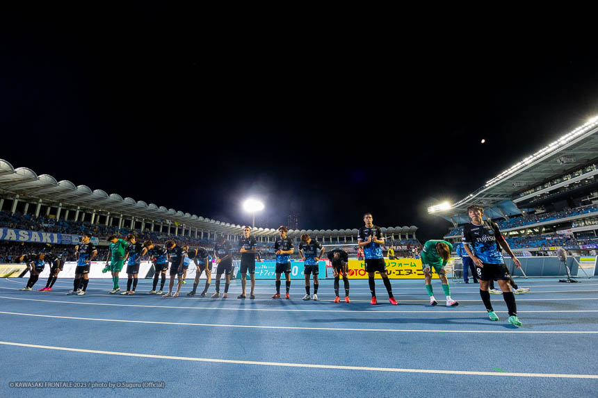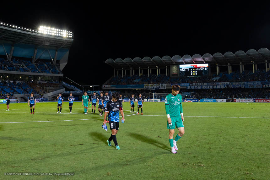 今日のゲーム、レフェリーの判定が大きく試合を左右する結果となりましたが、やはり試合というのはサポーターが見て楽しむものであれば、レフェリーが主役になるものではないと。判定がどういうものかということに対しては、もちろん今後議論されるものであると思いますが、私自身は納得できる判定ではなかったと思っています。試合の中で1人少ない状況で選手たちはしっかりと戦ってポイントを持ち帰ることができましたが、やはり川崎の選手層の厚さ、1人少ない中でこの夏場の、非常に気温も湿度も高い中で次々と失点してしまい、また相手の交代選手たちが次々と入ってくる中で非常に際どいシーンも作られましたし、得点をされてもおかしくないような場面もありました。ですが、選手たちが最後まで体を張って失点を2点までに抑えて守ってくれたと思います。