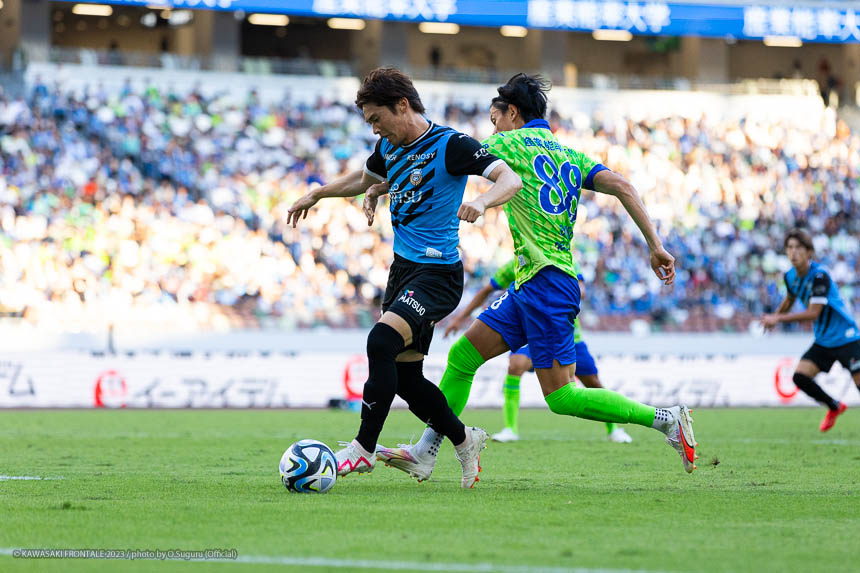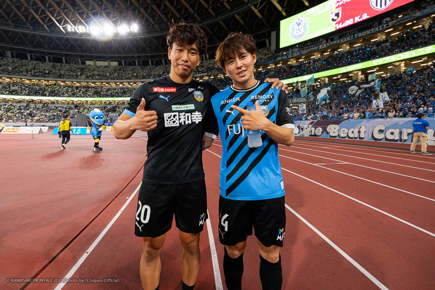 - 本来のサッカーはできなかったと思うが無失点に抑えることができたし、勝って修正することができる試合になったのかなと。もっとボールをつながなければいけなかったし、もっとフロンターレのサッカーをしなければいけなかった。ただ、みんなが考えたうえでプレーを選択していた。守備も最後のところで守り切ることを徹底できていたので、勝負事に勝てたことに関してはよかったのかなと。PKを獲得した場面はヤス(脇坂泰斗)に預けて潜っていこうと走り出して、ダミアンがヒールを使う選手なので前に走ったらいい感じに入れ替わることができた。PKでダミアンが今季初ゴールを決めることができたのはチームとして大きかった。個人的には自分で蹴ろうかなと思ったが、自分が獲得したPKなのにシン(山田新)とダミアンがケンカしてキッカーを取り合っていたのが面白かった。しっかり決めてくれてよかった。また、個人としてリーグ戦にスタメンで出て初めて勝つことができたので安心した。