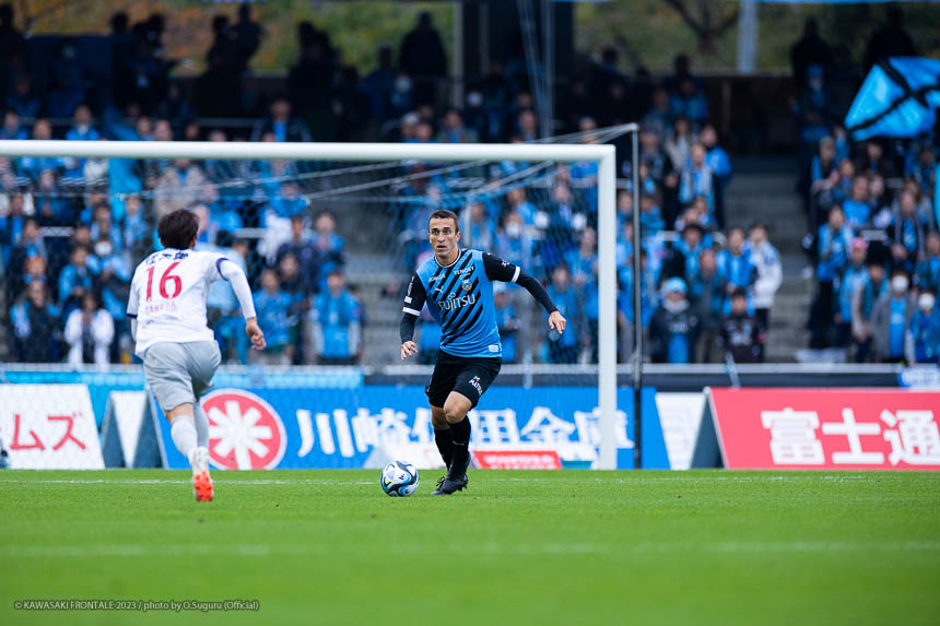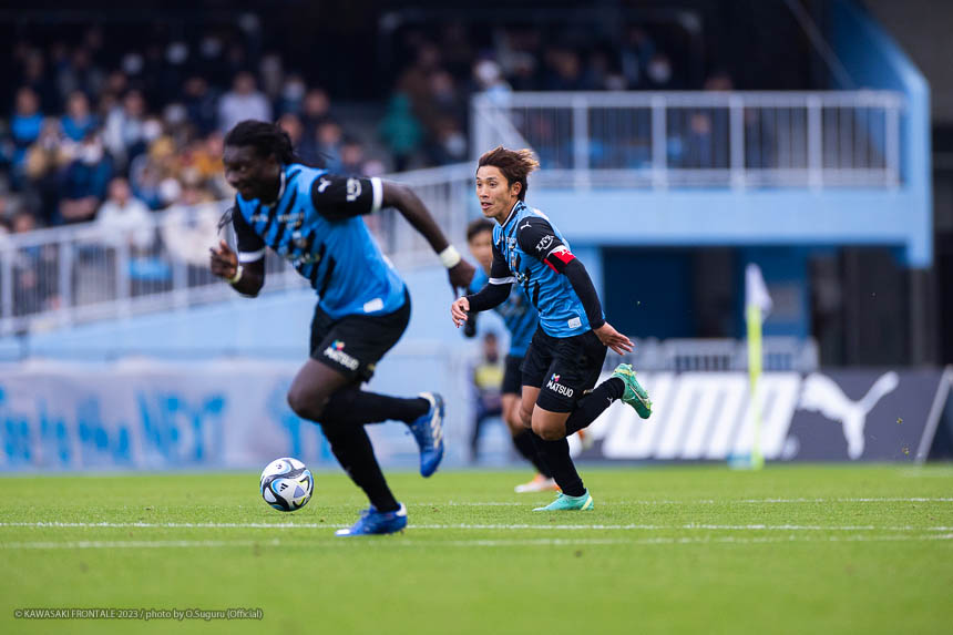 - チーム全体として前半あまりいい入りができず、ずるずるいってしまった感があるが、1点差で折り返すことができたし、ネガティブになる必要はないと思っていた。ただ90分を通して結果を見たときに、前半から相手を圧倒するようなサッカーができていれば、もっと違う結果になっていたのかなと。そこは修正しなければいけないと思う。1点目はバフェ(バフェティンビ ゴミス)が競り合ってボールを前に出す形は普段の練習からあったので、あそこは狙っていた。あとは冷静にGKを見てシュートを打つだけだった。2点目のクロスもイメージどおり。相手をうまくかわせてユウさん(小林悠)とバフェが見えたが、ユウさんにうまく合わせることができてよかった。前半のうちに2点目を取れたのは大きかったが、結果的に追いつくところまでで逆転できなかった。基準をもっと上げてどんどん点を取らなければいけないし、失点の場面も連続でやられているので、もっと突き詰めなければいけない。