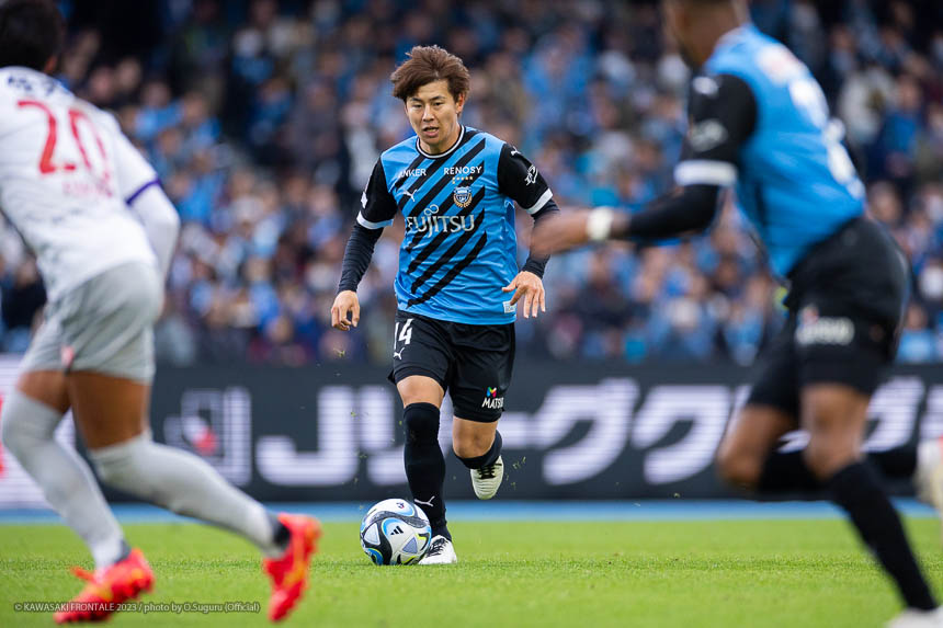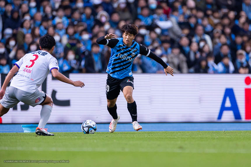 - 前半の失点を反省しなければいけない。自分たちで苦しくした試合だったと思う。 後半追いついて自分自身にもチャンスがあったので、そこで勝ち越せなかった悔しさが強い。(前半終了間際のゴールは)タイセイ(宮代大聖)が相手をうまくかわしてクロスを上げてくれた。自分はフリーだったので、そこまで難しいシュートではなかった。ゴールを喜べるような展開ではなかったが、後半にもチャンスがあったので決めたかった。序盤は右サイドを見てもらえる回数が少なかったが、途中からヤスト(脇坂泰斗)が間で受けたときに自分が相手の背後のスペースを狙えるようになった。クロスからチャンスを作れていたし、だんだんリズムをつかめてきた感覚はあった。こういう言い方をしていいのかわからないが、個人的には試合に長い時間出られるのは楽しいなと思った。最後までピッチにいたいという気持ちがすごくあったので、だからこそもう1点欲しかった。オニさん(鬼木達監督)が自分を信じて最後まで出してくれたので、もう1点、期待に応えたかった。そういった気持ちも含めて、いろいろな悔しさが残る試合だった。