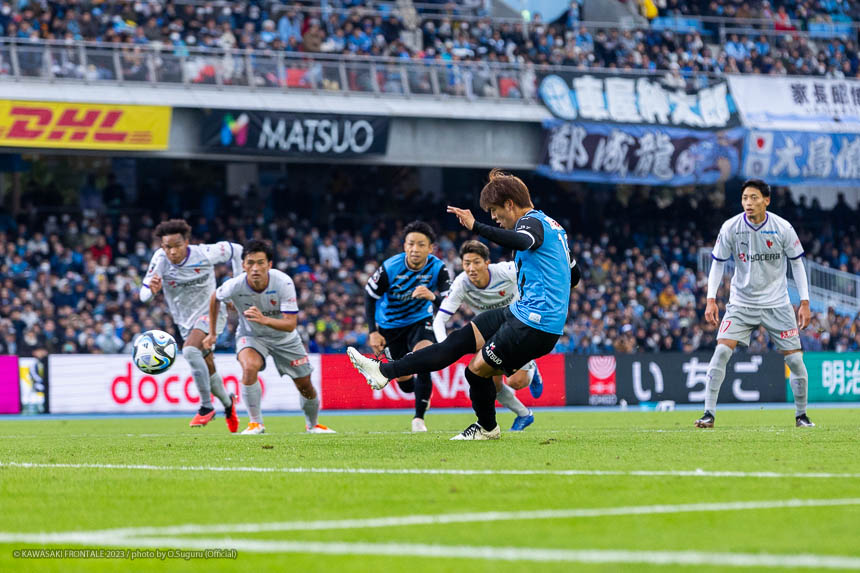 前半は互いに攻撃をしかける展開となり2-3で折り返すが、後半はフロンターレがボール保持から何度もチャンスを創出。そのなかで後半アディショナルタイムに獲得したPKを脇坂が冷静に沈めて3-3。勝点1を分け合う結果となった。
