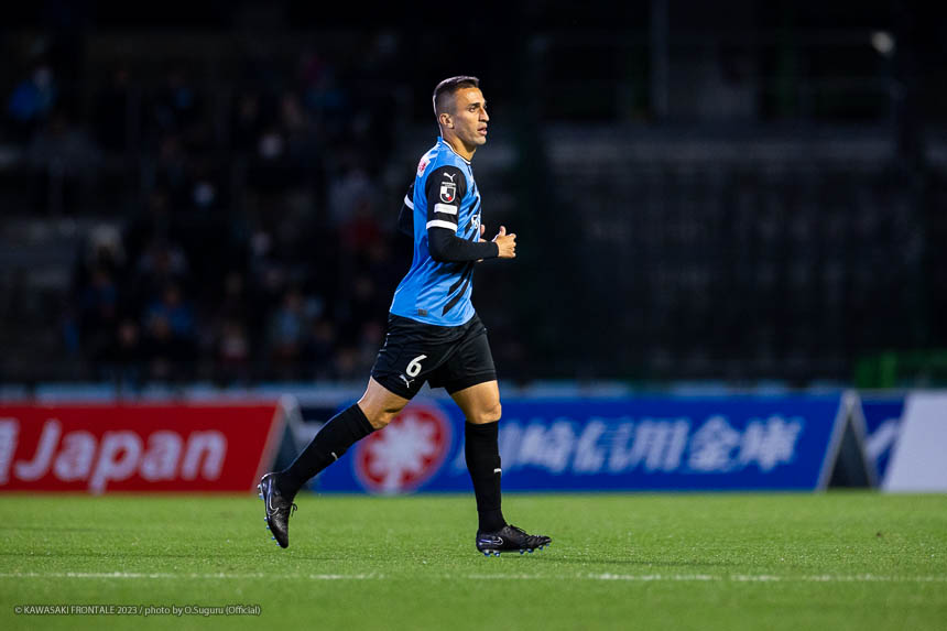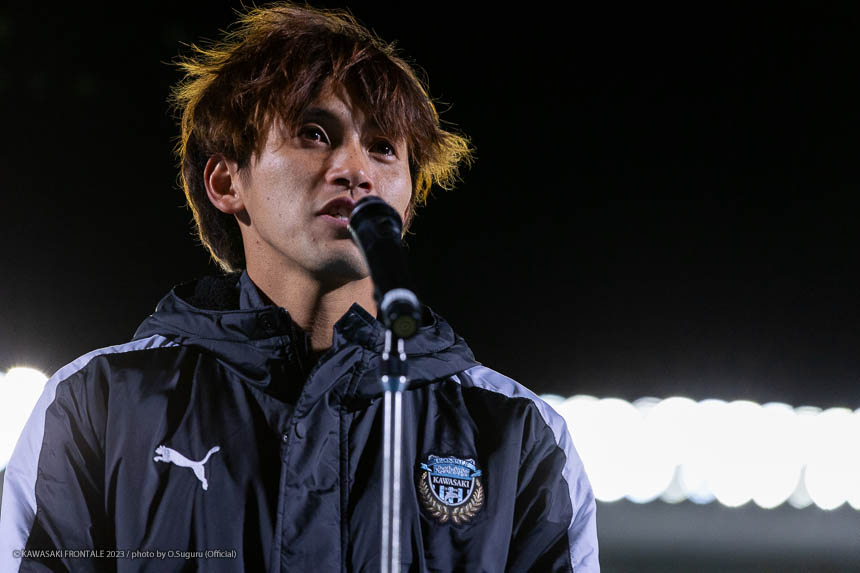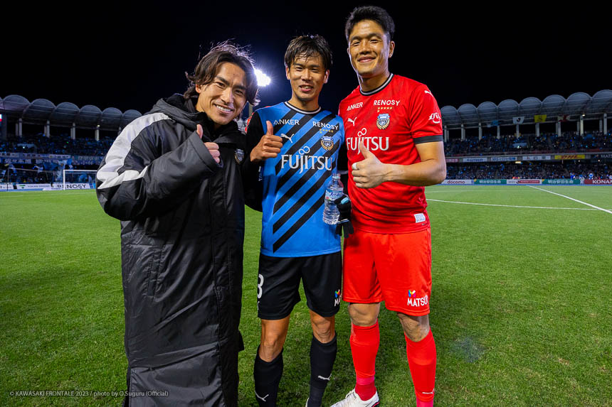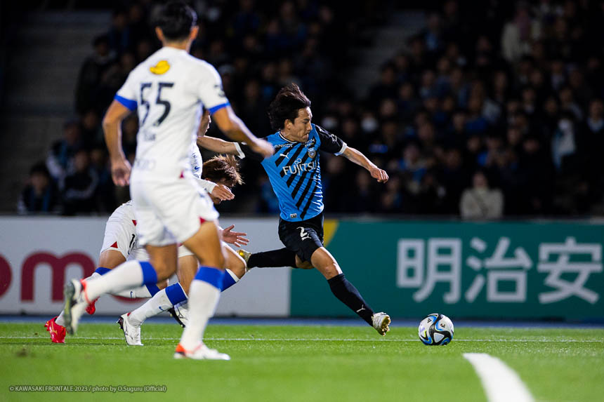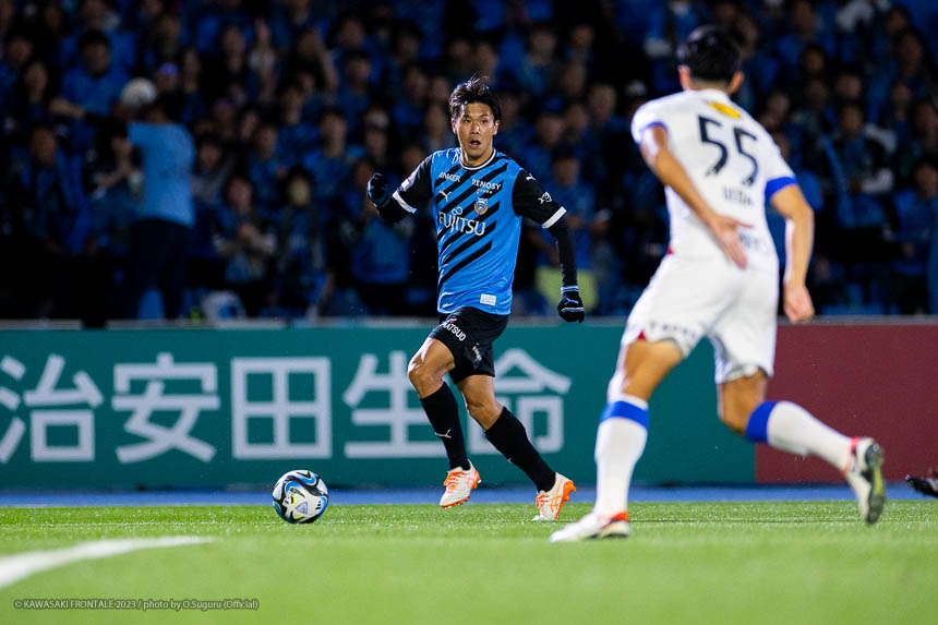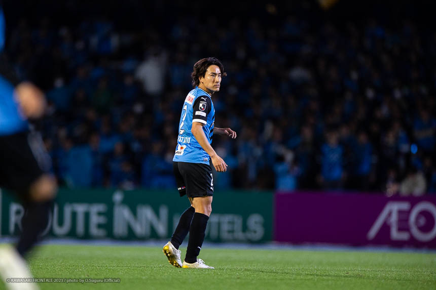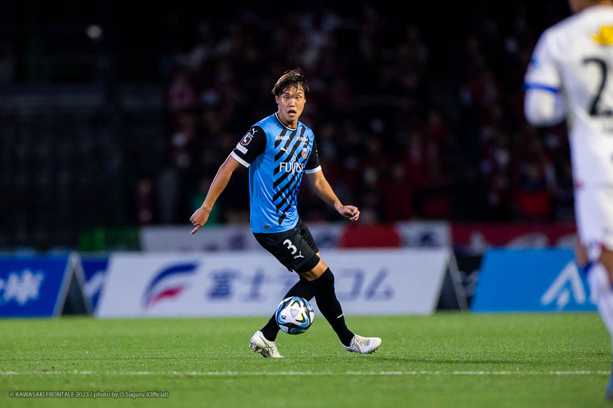 - リーグ戦のホーム最終戦で3-0というスコアで勝ててよかった。鹿島はロングボールを蹴ってくることが多いと思っていたので、自分が競るかカバーするかを判断しながら集中してプレーすることができたかなと。あとはセンターバック間でのラインコントロール、相手の鈴木(優磨)選手や知念(慶)選手が落ちてボールを受けるときにどうするかといった部分で、気になるところは声がけしながら修正した。やはり知念はいい選手だと思う。マッチアップしたときにフィジカルや競り合いが強いと感じた。個人的にはJ1リーグ200試合出場を達成できた。鹿島からプロの生活がはじまって、C大阪、そしてフロンターレで試合に出させてもらった。少しずつ成長した姿を両チームのサポーターの皆さんに見せることができたかなと思う。節目の試合で鹿島が相手ということで、縁を感じる試合だった。次は大会がACLに変わる。グループステージ突破を決めることに集中したいし、残り少ない試合で全勝していい結果でシーズンを終われるようにしたい。
