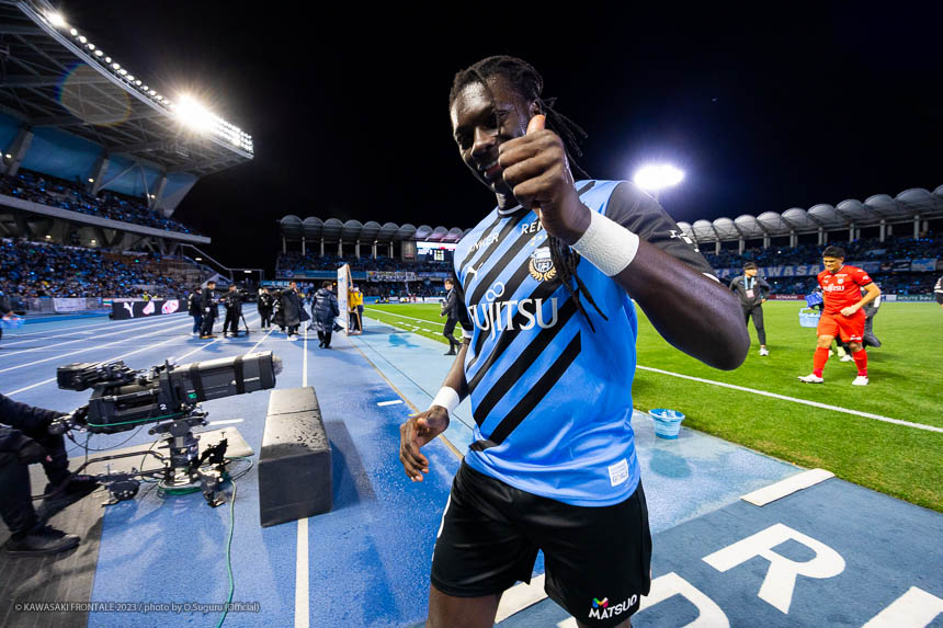 - チーム全体でいいゲームができたと思うし、マルシーニョとのコンビネーションで2ゴールを取れたこともうれしく思う。試合後にもマルシーニョに「アシストしてくれてありがとう」と伝えた。試合はとくに前半難しい展開になったが、落ち着いて辛抱強く戦うことによって、後半は自分たちのリズムでサッカーをすることができたと思う。1点目を取ったときに家族への思いをパフォーマンスで表現したが、2点目を取ったあと子どもたちと目が合ったので、一緒に写真を撮ることを思いついた。子どもたちもすごく喜んでくれていたので、写真が上がってくることを楽しみに待って、これから先の自分のいい思い出にしたいと思う。ハットトリックのチャンスもあったが、重要なのはチームが勝利すること。そのために誰がゴールをしてもいいし、何よりもチームの結果が大事。今日のこのゲームを次につなげていきたいと思う。次のゲームはACLでグループステージ突破を決められる試合なので、またみんなで一丸となって戦いたい。