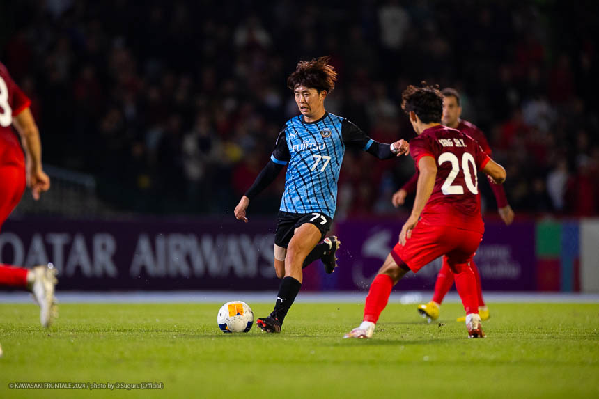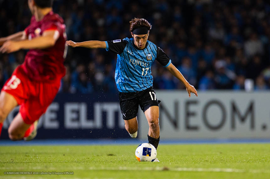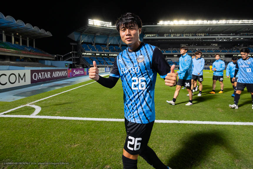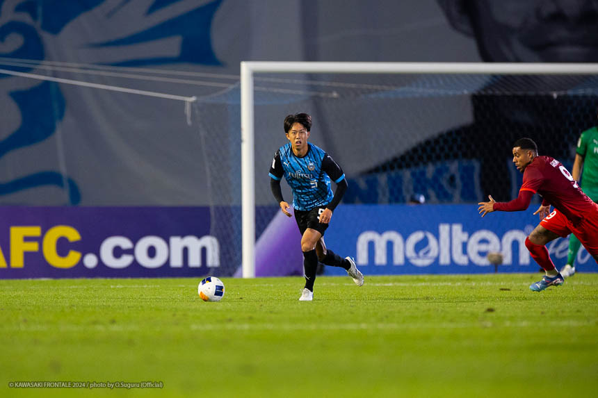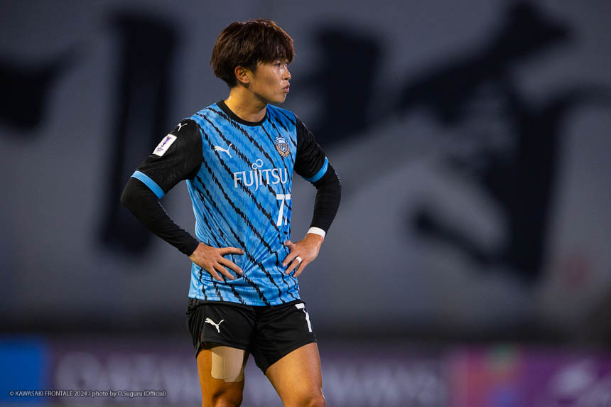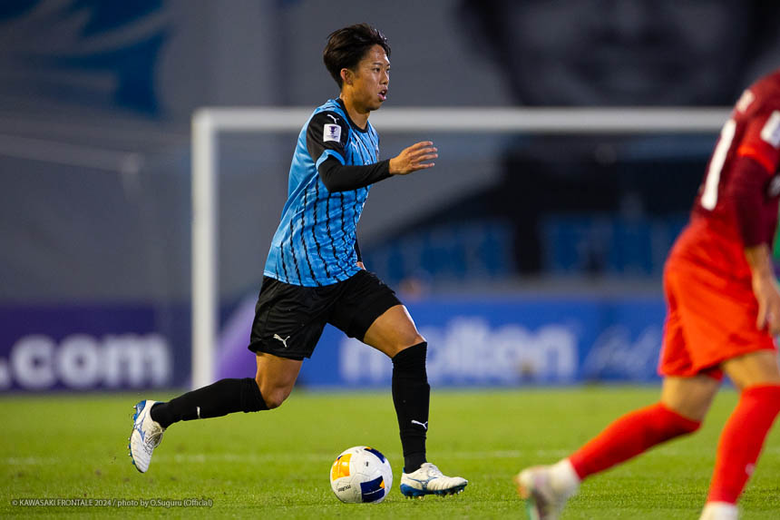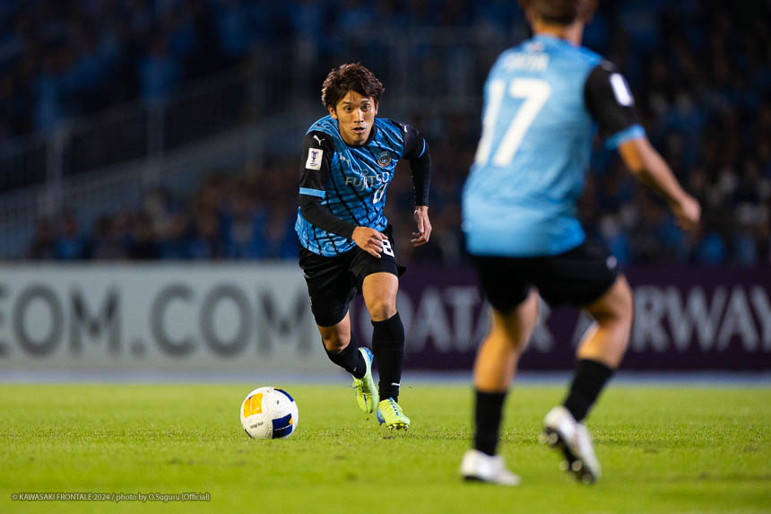 - 今日は前がアキさん(家長昭博)だったので、自分がサイドで幅をとって左の突破口になるようにとオニさん(鬼木達監督)から言われていた。その意識づけがアキさんの先制点につながったのかなと思う。あとはずっと張っているだけではなくて、ときにはアキさんが外で自分が中に入ったり相手を見ながら流動的にプレーして、相手が捕まえづらかったことが一番よかったと思う。後半、相手の10番の選手(マティアス バルガス)が入ってきて、守備を捨ててずっと右サイドで張っている感じだった。その時点で3-0のスコアだったので、無理して上がらずリスク管理を意識しながらプレーしていた。