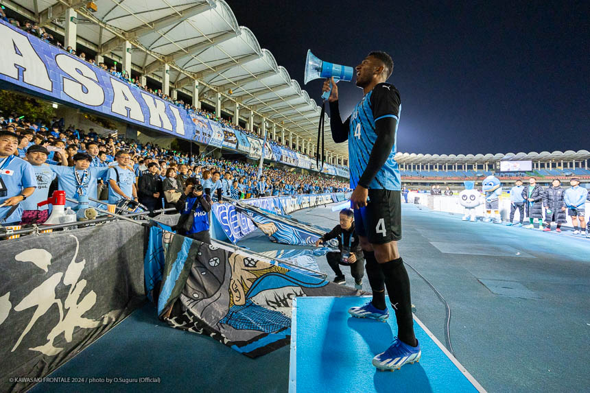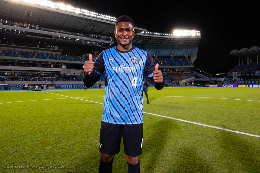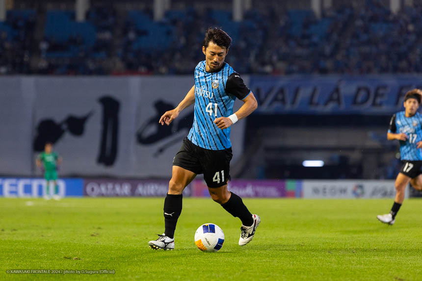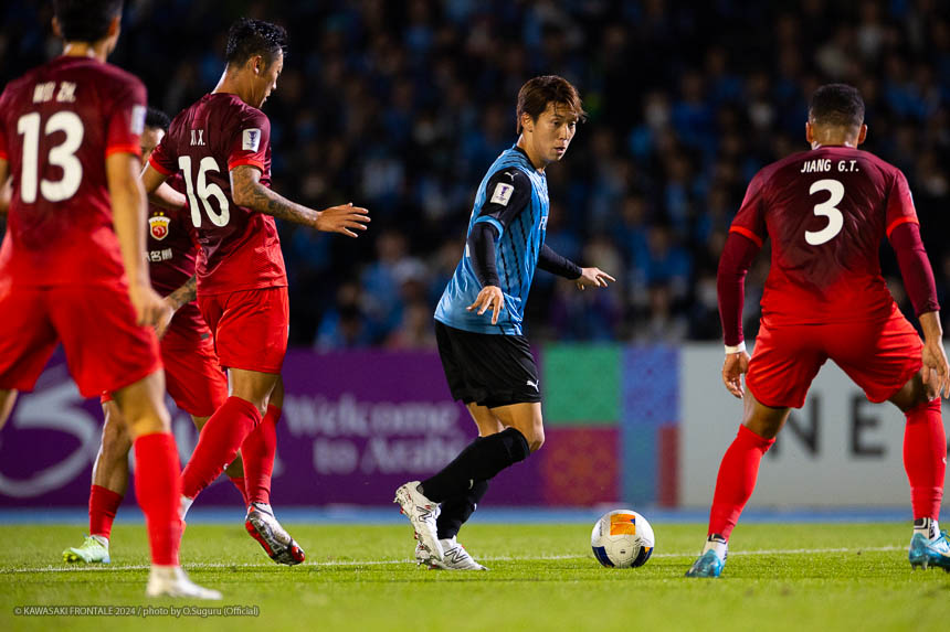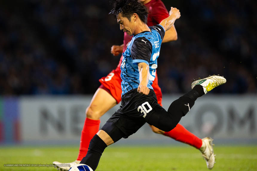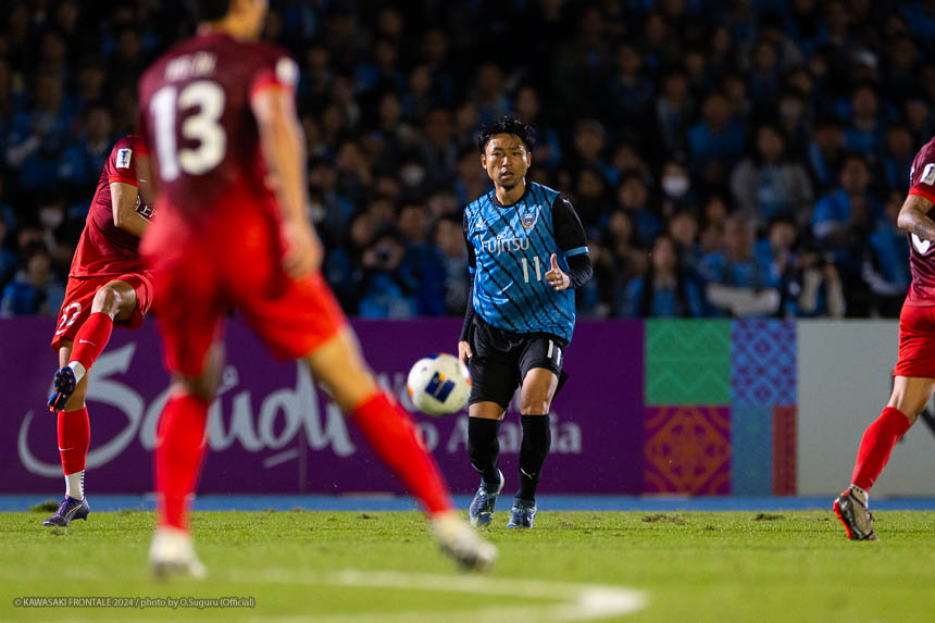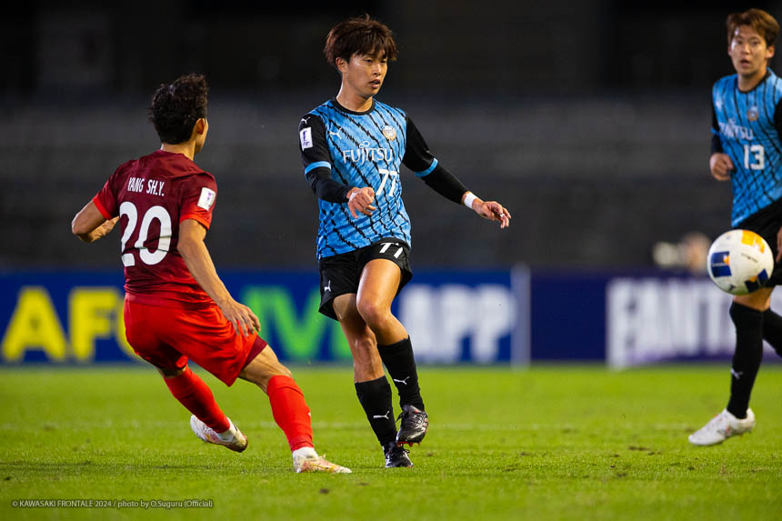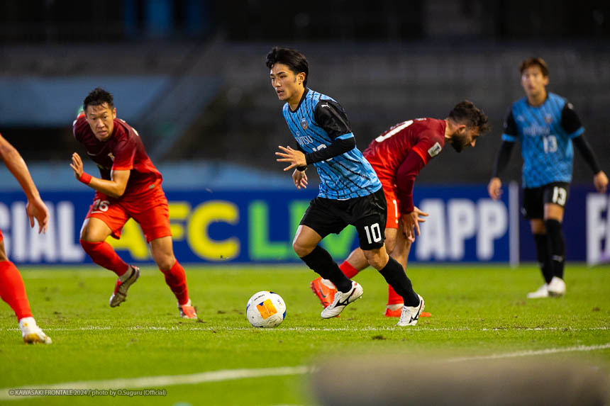 - 今日は前がアキさん(家長昭博)だったので、自分がサイドで幅をとって左の突破口になるようにとオニさん(鬼木達監督)から言われていた。その意識づけがアキさんの先制点につながったのかなと思う。あとはずっと張っているだけではなくて、ときにはアキさんが外で自分が中に入ったり相手を見ながら流動的にプレーして、相手が捕まえづらかったことが一番よかったと思う。後半、相手の10番の選手(マティアス バルガス)が入ってきて、守備を捨ててずっと右サイドで張っている感じだった。その時点で3-0のスコアだったので、無理して上がらずリスク管理を意識しながらプレーしていた。
