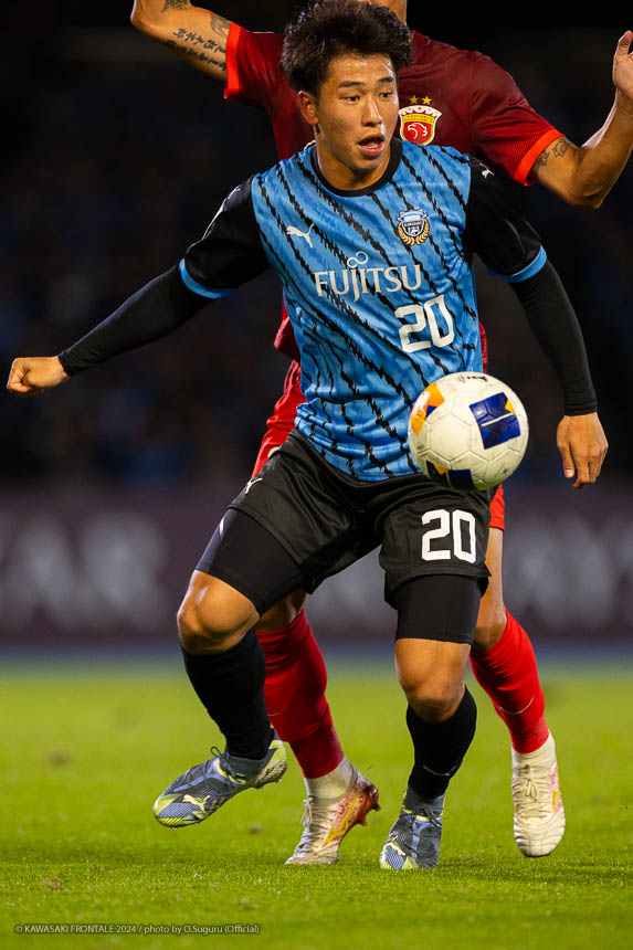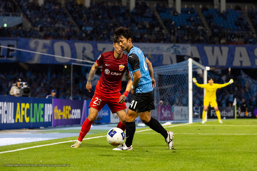 23分、フロンターレの攻撃。三浦が右サイドチェンジ。遠野が折り返すがクリアされる。セカンドボールを拾って攻勢をかけるがファウルで止められる。24分、エリア右角からのフリーキック。山本のボールはクリアされる。25分、左コーナーキック。山本のボールはクリアされる。26分、上海海港の攻撃。ロングボールからセカンドボールを拾われて速攻を狙われるが守備陣が対応。27分、フロンターレの攻撃。自陣からボールを運んで中央に入った際がスルーパスを狙うがエリソンに合わず。28分、左サイドで細かくパスをつないで深い位置に入り込んだ遠野が折り返しを狙うがブロックされる。29分、左コーナーキック。山本のボールはGKに弾かれる。セカンドボールを拾って押し込むがフィニッシュにつながらず。30分、上海海港の攻撃。カウンターを狙われるが橘田と家長が戻りながら対応。31分、フロンターレの攻撃。セカンドボールを拾って左サイドから崩しをかけ家長が深い位置から折り返すがGKにキャッチされる。32分、相手陣内でプレッシャーをかけゴール前にこぼれたボールに反応した瀬川がシュートに持ち込むが枠を外れる。惜しい場面だった。33分、自陣深い位置からボールを運び山本が中盤から背後にボールを入れ左サイドで粘ったエリソンが折り返し。瀬川がスルー、背後に走り込んだ際がシュートを決める(3-0)。35分、中盤右からのフリーキックの流れ。セカンドボールを拾われて圧力をかけられるが守備陣がしのぐ。38分、三浦が中盤から右サイドに展開。セカンドボールを拾って圧力をかけるがファウルで止められる。39分、エリア右からのフリーキック。山本のボールはクリアされる。セカンドボールを拾ってゴール前に圧力をかけるがしのがれる。42分、右サイドでパスをつなぎ崩しをかけて抜け出した家長がクロスを入れるがクリアされる。43分、上海海港の攻撃。右サイドに振られクロスをグスタボに落とされシュ シンにミドルシュートを打たれるが枠を外れる。44分、フロンターレの攻撃。佐々木のロングボールをエリソンが収めて右サイドからゴール前に迫るが惜しくもシュートに持ち込めず。45分、右コーナーキック。山本のボールはクリアされる。攻守ともに相手を圧倒して試合を優位に進めるフロンターレは3点にリードを広げて前半を折り返した。