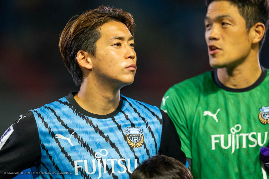 - (4点目のアシストは)ソウくん(河原創)がボールを持ったときに裏を狙っていこうと思っていた。そこでボールが出てきて角度的にはシュートは厳しかったが、走っている最中にシンくん(山田新)が見えたので横パスが通れば入るかなと思ってうまく折り返すことができた。シンくんがうまくゴール前に詰めてくれていた。パスが少し緩いかなと思ったぎりぎり通ってよかった。最後に自分もフィニッシュまで行くシーンがあったが、もっとしっかりシュートを打てれば決まってもおかしくなかったと思う。もっと練習しなければいけない。アシストという結果は残すことができたが、やっぱり自分はストライカーなので点が欲しかったのが正直なところ。個人的に初めての等々力でのプレーだったが、たくさんの方々に応援してもらって自分自身の力にもなった。