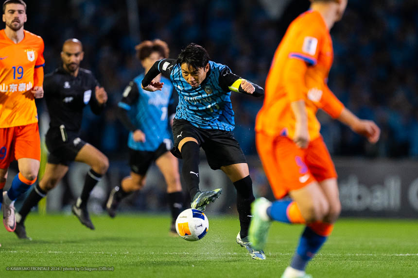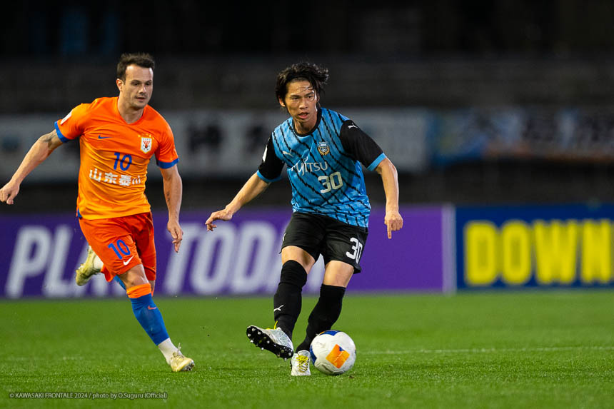 - 得点を取れたのはよかったが、個人的には今日はちょっと体が動いてないなと感じていた。出来としては満足のいくものではないので、そこは修正しなければいけないと思っている。ただ、前半のうちに2点目を取れたのはよかった。相手がマンツーマンのような形で来ていて、自分が落ちてもあまりうまくいかないなという感じがあって、ボールを触ってリズムを出すのに時間がかかってしまった。ただ、そのあたりはソウ(河原創)がうまくやってくれていたので、そのサポートもありながらプレーしていた。山東は前回大会で今年の最初に対戦していて、ホームでの敗戦は本当に悔しかった。今回、山東はメンバーが何人かいなかったこともあるが、しっかりした内容で勝てたのはよかったと思う。(2点目の直接フリーキックの場面は)GKがファー気味に立っていたので、シュートを匂わせなかったら入るんじゃないかなという感覚だった。ボールを上げて外してしまうのが一番嫌だったし外から巻かなくても入る感じがしたので、あとはちゃんと枠に入れることだけだったと思う。それにしてもうまくいきすぎた。
