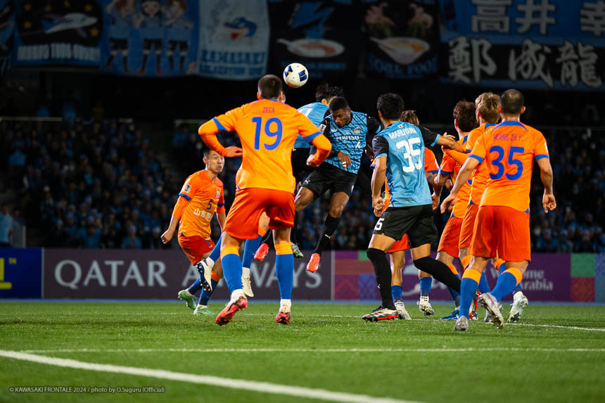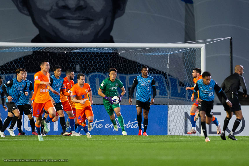 48分、フロンターレのメンバーチェンジ。負傷した瀬川に代わって遠野がピッチへ。52分、山東泰山の攻撃。中盤でルーズボールを拾われ、右サイドからアーリークロスが入るが守備陣が対応。53分、右サイドで粘られ崩しを狙われるが守備陣が対応。55分、フロンターレの攻撃。細かくパスをつないで左サイドから崩しをかけ抜け出した遠野が折り返すがクリアされる。57分、セカンドボールを拾ってゴール前に圧力をかけるがしのがれる。58分、河原が中盤から右サイド裏のスペースにボールを入れて走り込んだ遠野が折り返すがゴール前に合わず。59分、山東泰山の攻撃。中盤でボールを奪われてカウンターを狙われるがジェジエウが戻りながら対応。62分、中盤でパスをつながれ右サイド裏にボールを入れられるがチェン プーには丸山が対応。64分、フロンターレの攻撃。自陣からボールを運び左サイドから入り込んだエリソンが連続してシュートに持ち込むがブロックされる。65分、左コーナーキック。山本のボールをジェジエウがヘッドで合わせる(3-0)。66分、山東泰山の攻撃。中盤から背後のスペースにボールを出されシェ ウェンノンに抜け出されシュートに持ち込まれるがGKソンリョンの好セーブでしのぐ。危ない場面だった。68分、フロンターレのメンバーチェンジ。マルシーニョに代わって家長、小林に代わって山田、山本に代わって橘田がピッチへ。69分、山東泰山の攻撃。自陣からボールを運ばれ右サイドからクロスが入るが河原がクリア。