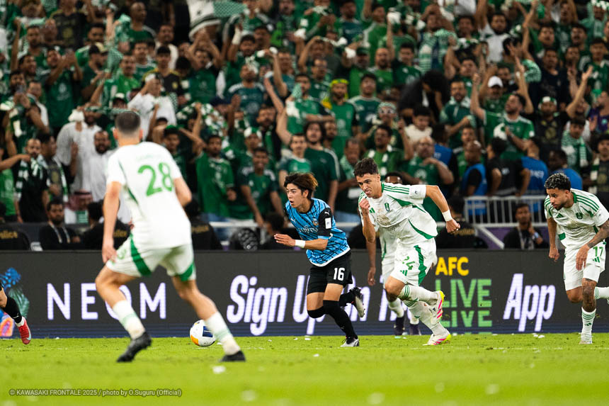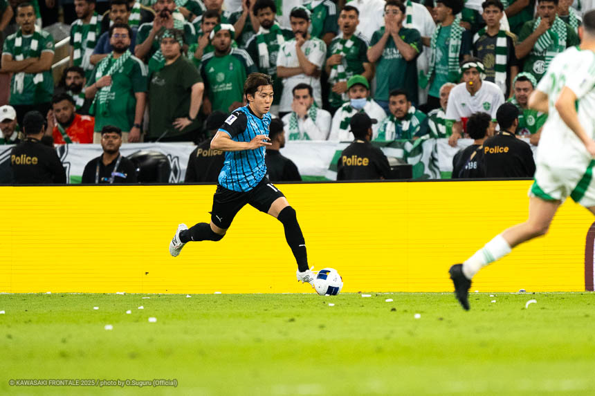 いよいよ決勝戦が始まるというワクワクした気持ち。勝つことだけを考えて、チーム全員で決勝戦に臨みたい。対戦相手のアルアハリは攻撃も守備も非常に高いレベルで行えるチーム。そこに負けないようチーム全員で攻撃も守備もして絶対に勝ちたい。たくさんのサポーターの方々が応援に来てくれている。画面の前で応援してくれる方もいる。また日本ではフロンターレサポーター以外の方も応援をしてくれている。…