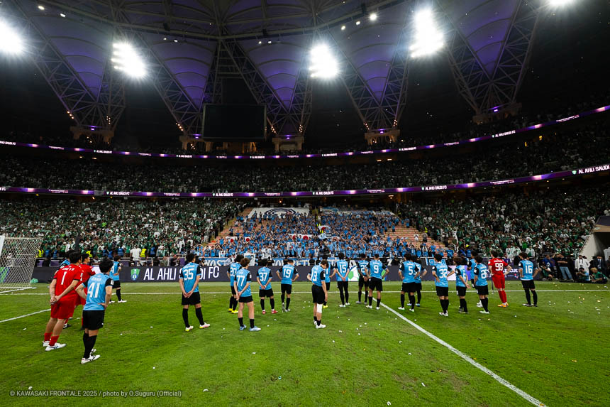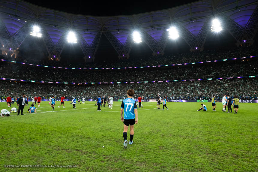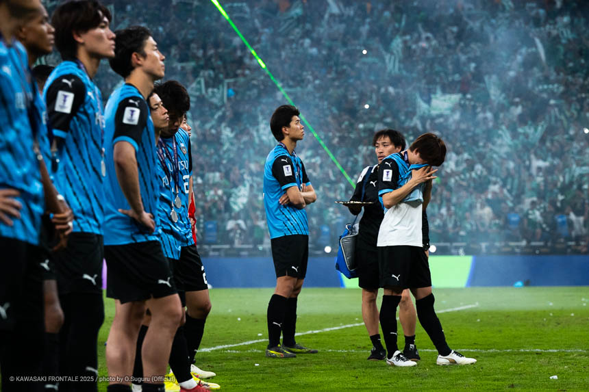 - 涙がすべてではないと思いますが、選手、スタッフ全員が同じ気持ちで悔しかった。そういうふうに感じています。選手たちにはロッカールームに帰ってきて「自分」という言葉をかけました。私に何ができただろうか。監督である私。私は私を反省します。選手はそれぞれ、コーチもそれぞれ、自分に対して矢印を向けて、何かできたんじゃないか。それは技術的なこと、トラップ、キック、ドリブルひとつ。もしくは言葉ひとつ、言葉がけひとつ。そういうことを話しました。そこからまた成長が(あります)。今日の2時間が、2時間半、3時間が次の成長につながる、つなげなくてはならないという話をしました。サウジアラビアまで来て、スタジアムに足を運んで応援していただいた皆様には、本当に感謝しかありません。先ほどもインタビューで伝えましたが、この場を借りてもう一度お礼を言いたいです。ありがとうございました。また、画面を通して我々にパワーを送っていただいた皆様にも、残念な結果を届けてしまいましたが、川崎フロンターレ、Jリーグに所属しているチームはやれるんだというところを、今日のところは負けてしまいましたが、いい戦いをこの大会で見せたんじゃないかなと、見せられたんじゃないかなと思います。引き続き応援いただいて、ともにJリーグを盛り上げ、日本サッカーがこれからも躍進していくことを願いますし、一緒に歩いていきたい、歩んでいきたい、そういうふうに思います。