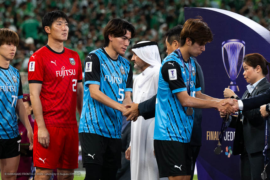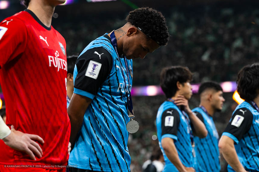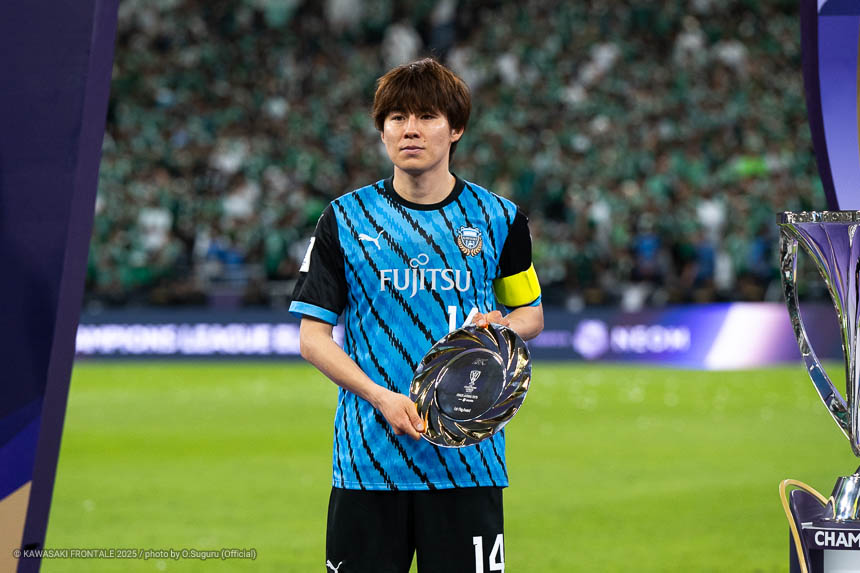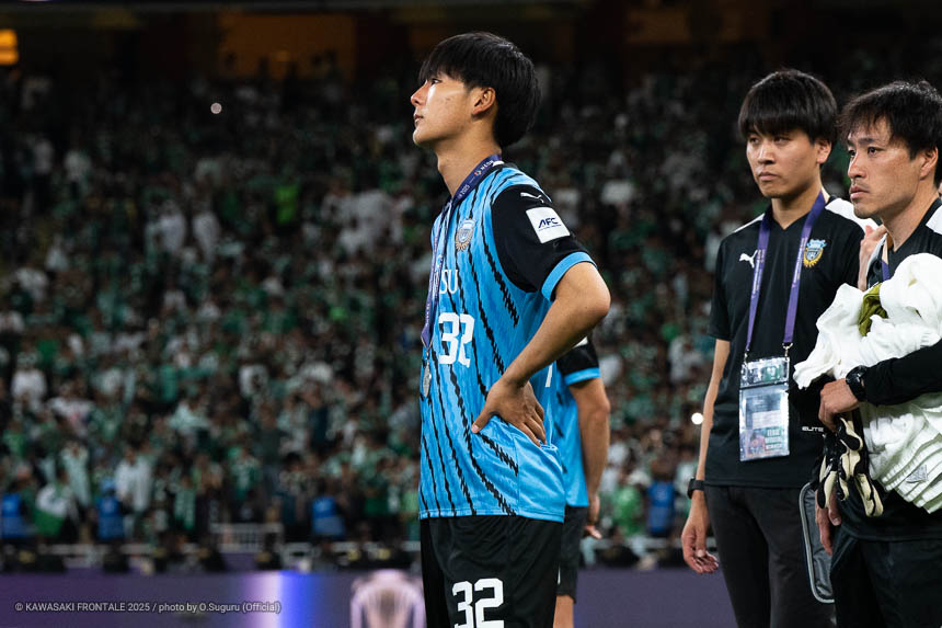 - クラブが達成できなかったベスト4を達成して決勝まで来たので、優勝したかった。前半で2失点してしまい、試合を90分で見たときに苦しくしてしまった。チームとしては戦えていたと思うが、個人のところで力の差があったと思う。フロンターレのチーム力はアジアの戦いでも自信を持っていいと感じたが、個人をもっともっと伸ばさなければいけない。ACLEは、チームとしてなかなか結果が出ずに苦しかった2023年に天皇杯のタイトルを獲ってから、いまはいない選手やスタッフも含めて全員でつないできた大会。フロンターレが長年越えられなかった壁をチーム全員の力で越えて、決勝の舞台まで戦うことができた。だからこそ優勝してサポーターの皆さんと一緒に喜び合いたかった。悔しい。この舞台に立つためには日本でもう一度タイトルを獲らなければいけない。チーム全員でもう一度国内タイトルを勝ち取って、絶対にこの舞台に帰ってきたい。