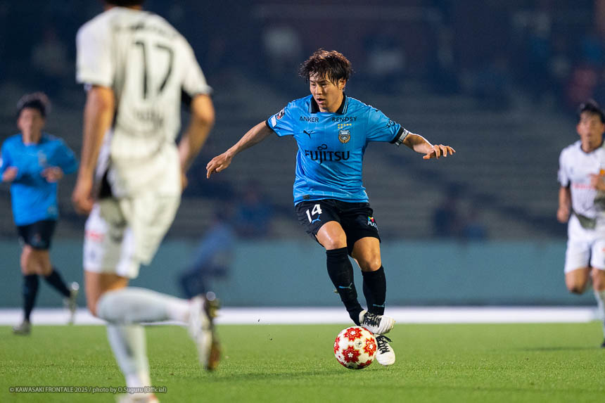 - 天皇杯初戦は難しい試合になる。最悪のケースとして最初に失点するという想定もしていたが、前半で追いついて得点を重ねることができた。同点ゴールの形も狙っていたショートカウンターできれいに崩すことができたので、逆転まで時間の問題だと思っていた。終盤の失点はいらなかったが勝ててよかった。自分が1人走るだけで相手は嫌がっていたし、今日は簡単に使ってくれて周りの選手もうまくスペースを使えていたので、いい感覚でプレーできていた。個人としてはあまり疲労を残さずに交代できた。次の試合まで中2日だが、いいコンディションで臨めるかなと思っている。