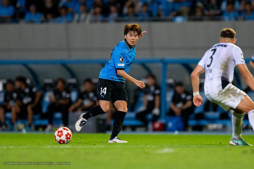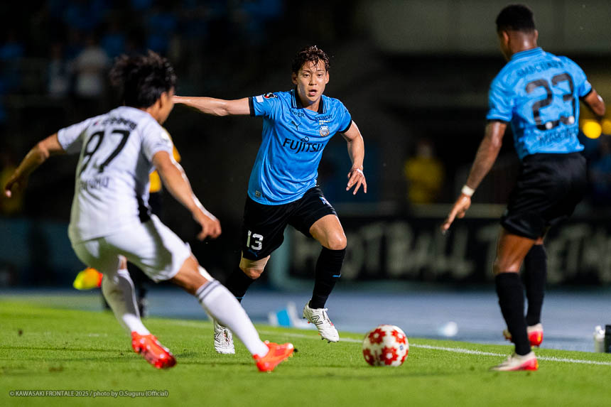 - 120分戦って0得点はいけないと思う。自分自身を含めて決定的なシーンやシュートチャンスがあったなかで得点につなげられなかった。そういう流れが続くと相手も守備で頑張ることができる。そこが今日の結果に大きくつながったと思う。前半は相手がすごく頑張っていたので、ユウキ(山本悠樹)と相手を走らせて疲弊させるイメージを共有していた。そのなかでもう少し全員でタイミングを合わせて相手の嫌なエリアに侵入できればよかった。後半は全体的に相手陣内に押し込むことができたが、決め切れない流れが続くと相手に耐えられてしまう。相手の3バックの横のストッパーを引き出すのが理想的だと思うが、そこに人が入っていったり、ドリブルで侵入していくプレーをもっと増やす必要があると思う。あとは単純にシュートチャンスで目の前の相手に当ててしまうことが多かった。相手のゴール前のカバーの意識が高かったが、シュートの場面でもっと冷静になれば決めることができたと思う。そこは練習していくしかない。