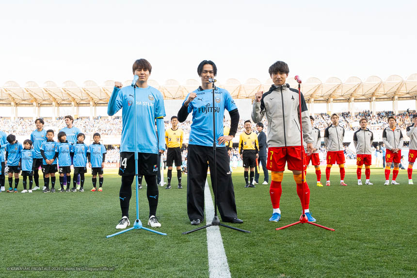 - 開幕戦で複数得点、無失点で終われてよかった。分析のなかで名古屋がタイトに来るのはわかっていたし、前半は0-0でいいとみんなで話し合っていた。向かい風でもあったので背後に蹴ればボールが止まるし、弾かれればボールは伸びるという難しい状況だった。そこをチームで共有して、相手の疲れが出てくる後半にギアを上げていこうと考えていた。アカデミー出身選手がたくさん点を取って勝てたので、クラブとしても新しい一歩を踏み出せたと思う。そこに至るまでアカデミースタッフ、彼らを育ててきた方がたくさんいる。一昨年Anker フロンタウン生田もできてクラブとしてアカデミーに力を入れているなかで、アカデミー出身選手が活躍するのは現在のアカデミーの選手にとっても励みになると思う。今日はたくさんの人が応援に駆けつけてくれたし、新しくなったフロンターレに期待してくれているのが伝わっていた。皆さんに楽しんでもらえるような試合ができたのかなと思っている。