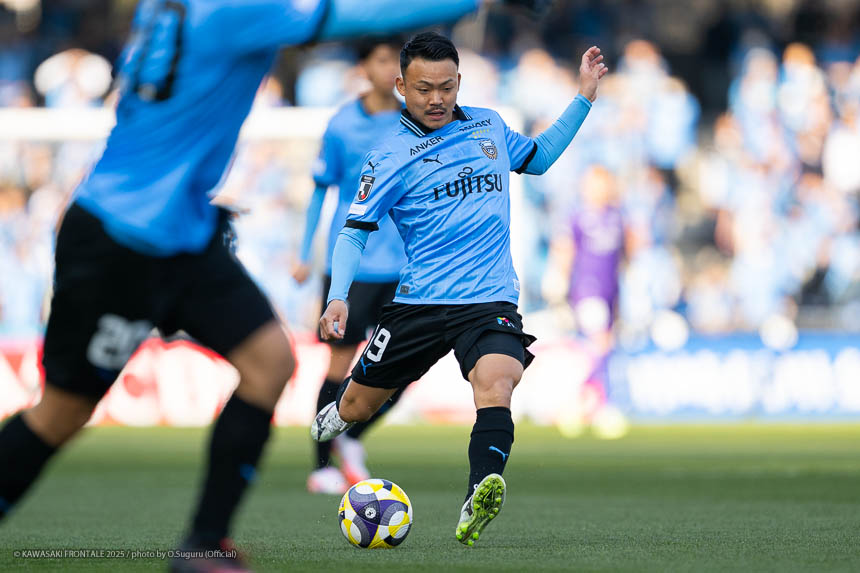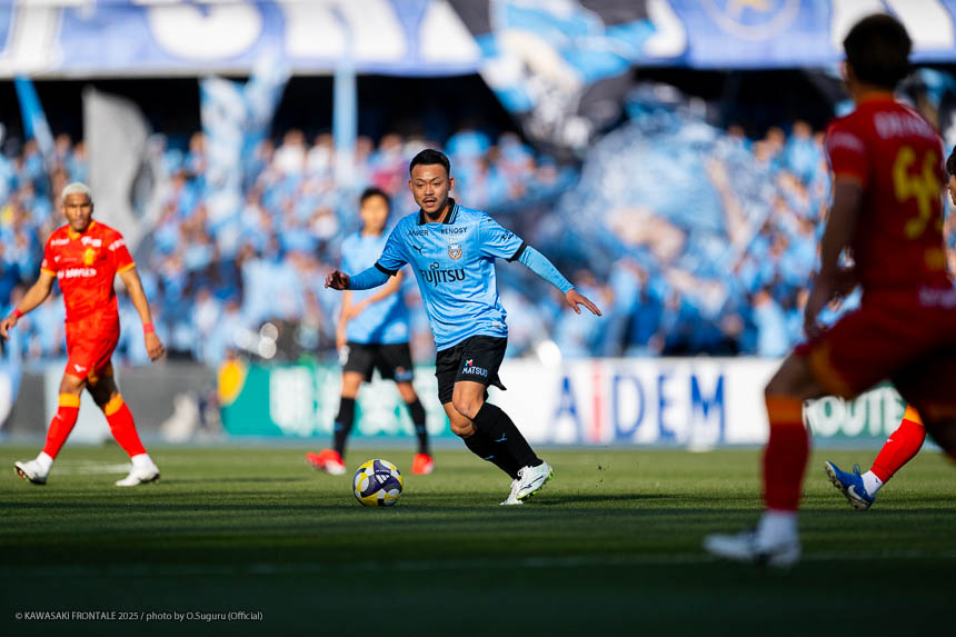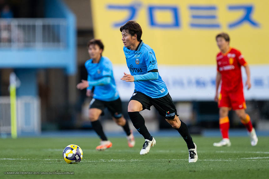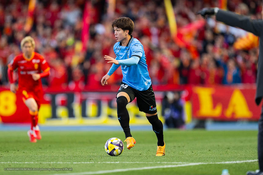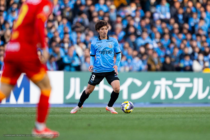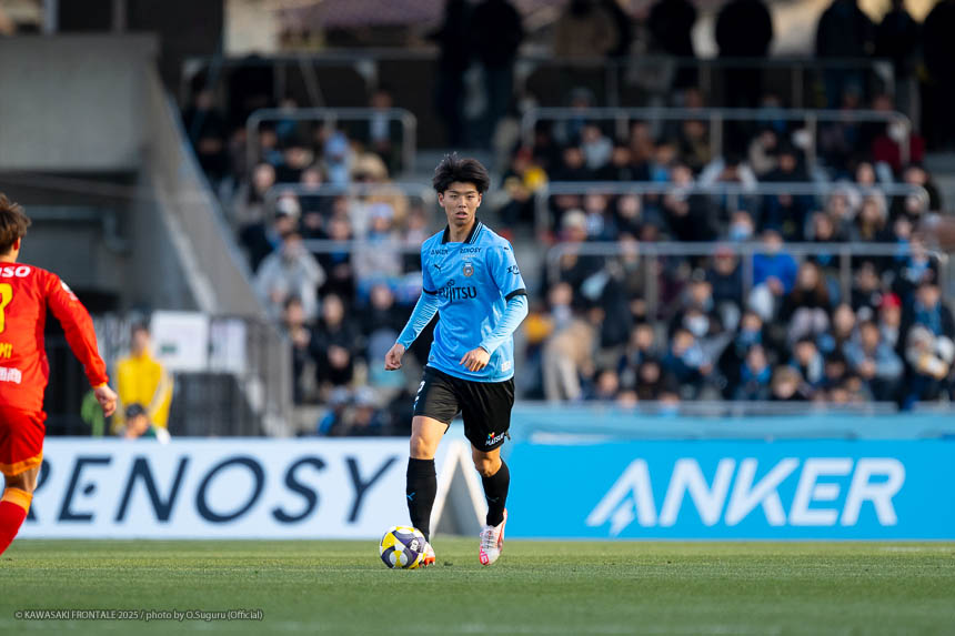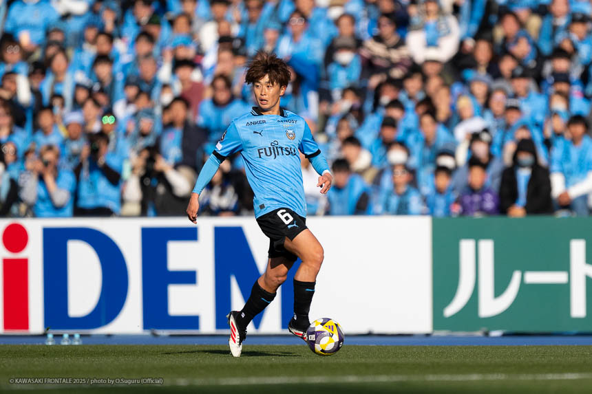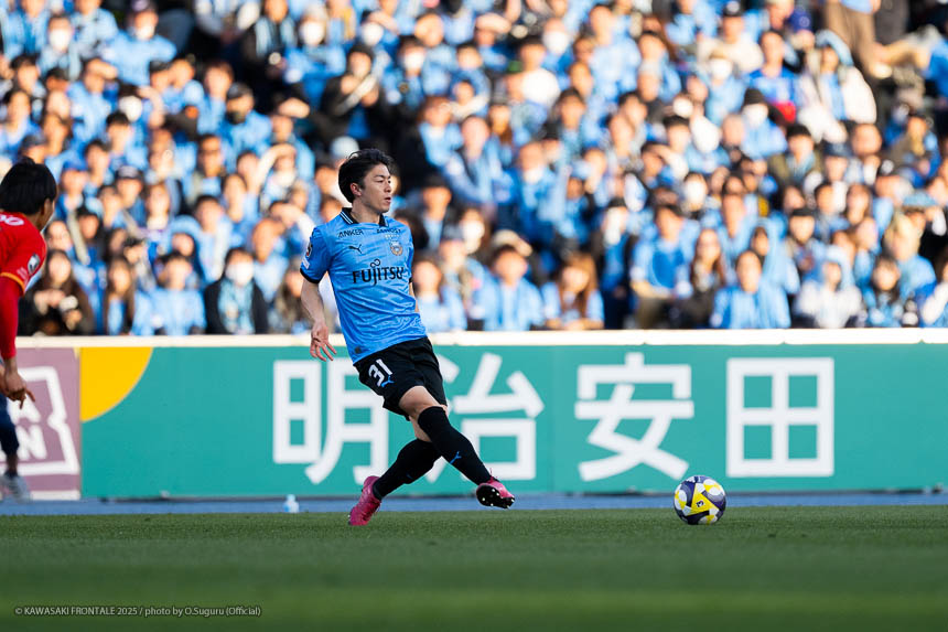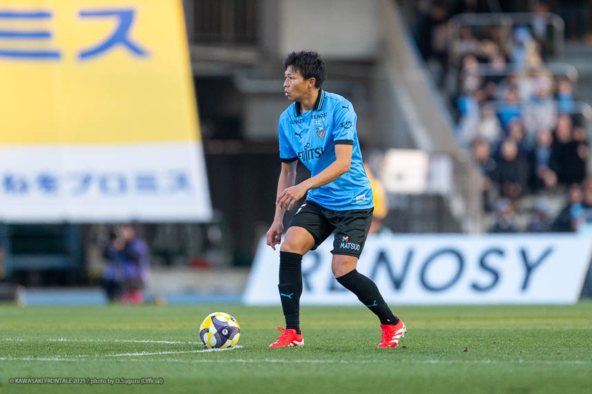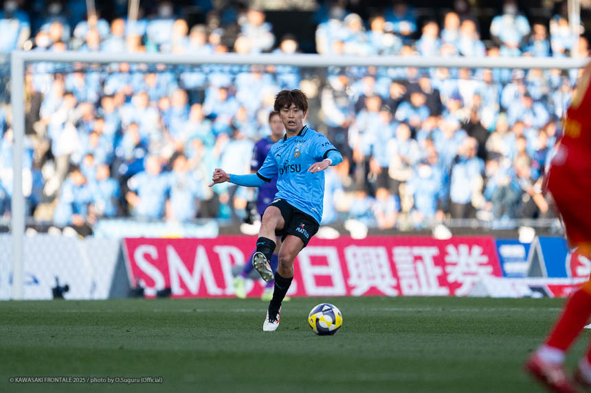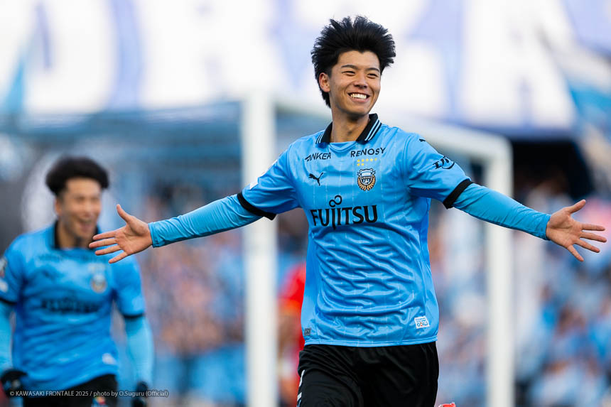 - 前半は0-0をネガティブにとらえないよう、焦らずにプレーできていた。去年だったら0-0だとうまくいかない雰囲気が出て焦れて失点することもあったので、意思統一して全員が慌てずにプレーできたのがよかった。ゴールシーンは自分が起点になってからスムーズに左へ展開して、マルシーニョとソウタ(三浦颯太)のクオリティが高かったのでゴール前で待っているだけだった。チームとしても理想的な点の取り方だったと思う。試合が終わってから4点取ったのが(全員)アカデミー出身だと気づいた。自分自身もうれしいし、アカデミーのスタッフの方も喜んでくれていると思う。しかも等々力での開幕戦だったので感慨深い。自分たちがフロンターレをもっと上に押し上げていきたい。