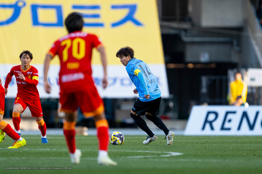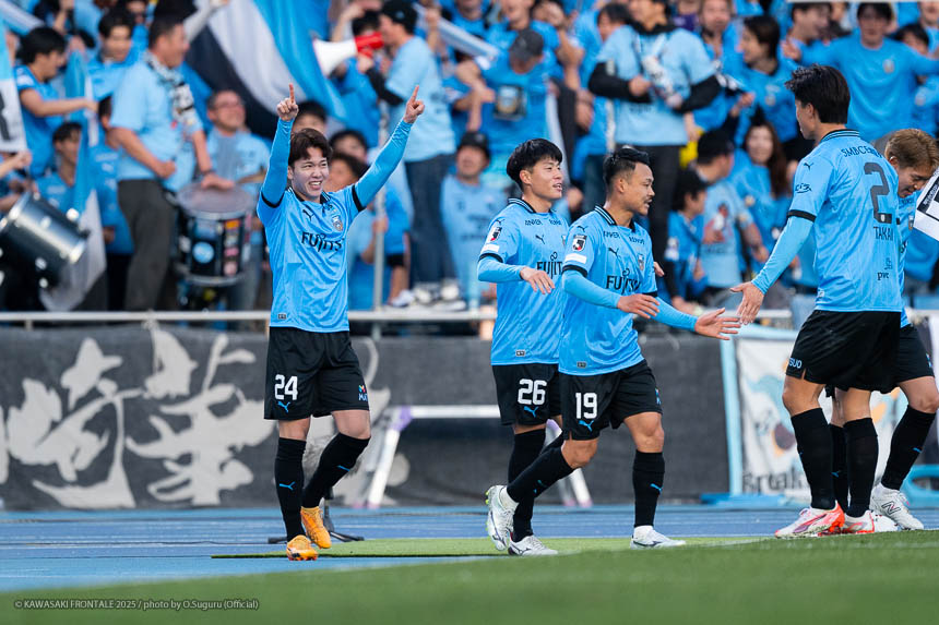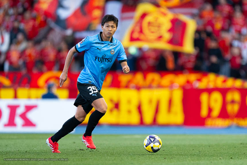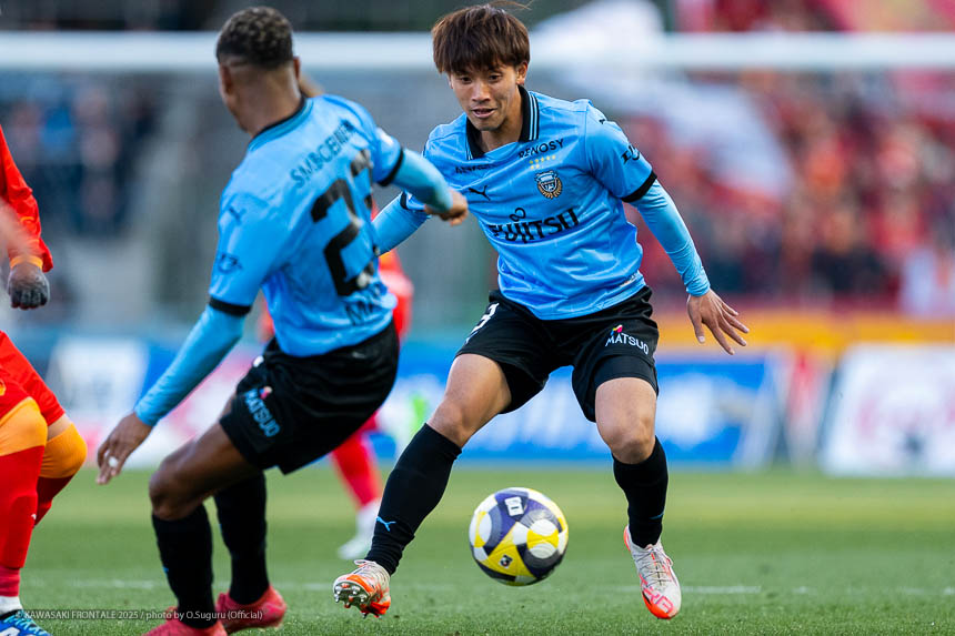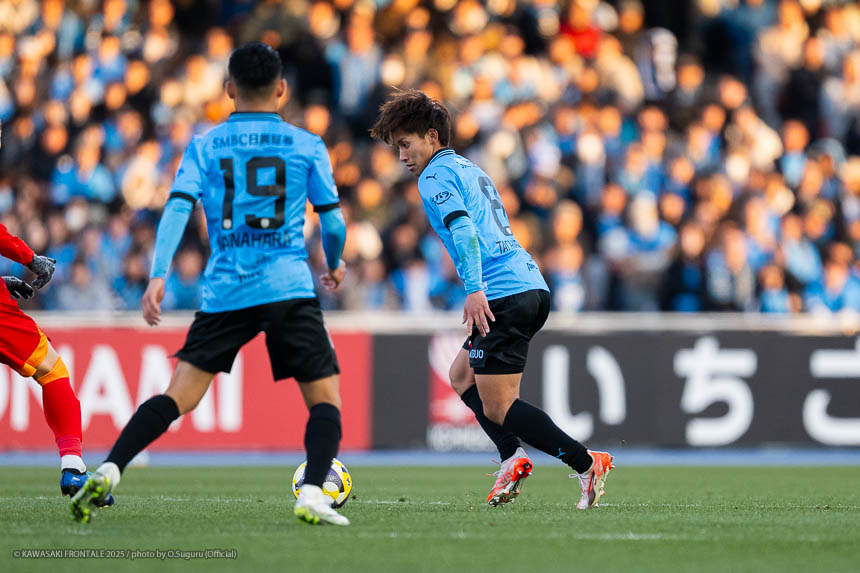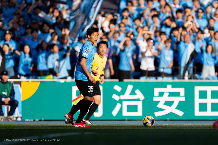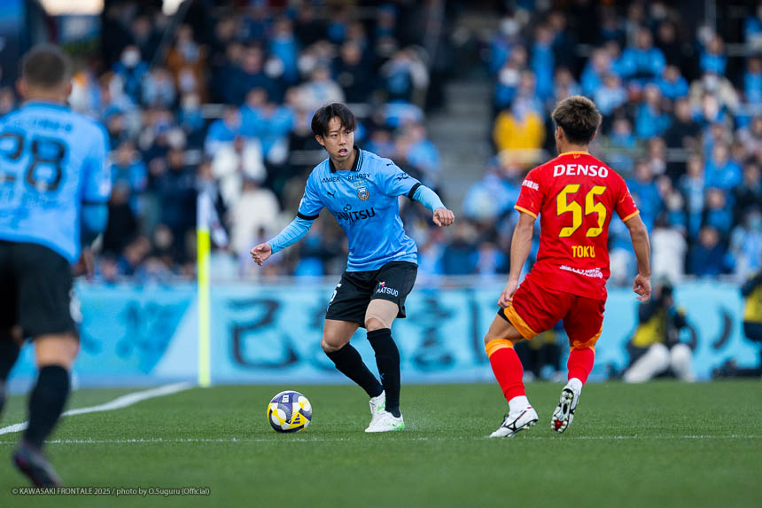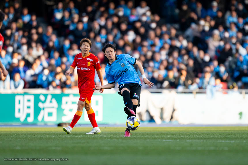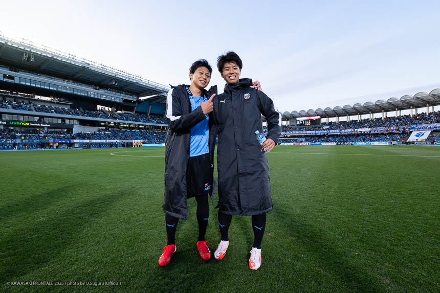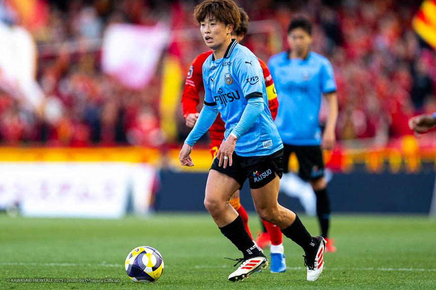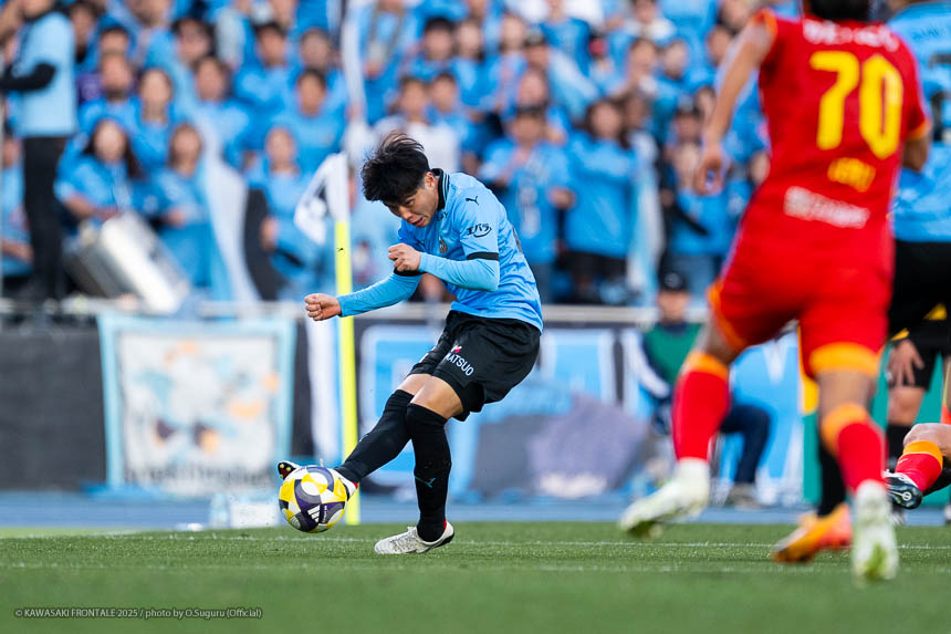 - 前半は0-0をネガティブにとらえないよう、焦らずにプレーできていた。去年だったら0-0だとうまくいかない雰囲気が出て焦れて失点することもあったので、意思統一して全員が慌てずにプレーできたのがよかった。ゴールシーンは自分が起点になってからスムーズに左へ展開して、マルシーニョとソウタ(三浦颯太)のクオリティが高かったのでゴール前で待っているだけだった。チームとしても理想的な点の取り方だったと思う。試合が終わってから4点取ったのが(全員)アカデミー出身だと気づいた。自分自身もうれしいし、アカデミーのスタッフの方も喜んでくれていると思う。しかも等々力での開幕戦だったので感慨深い。自分たちがフロンターレをもっと上に押し上げていきたい。