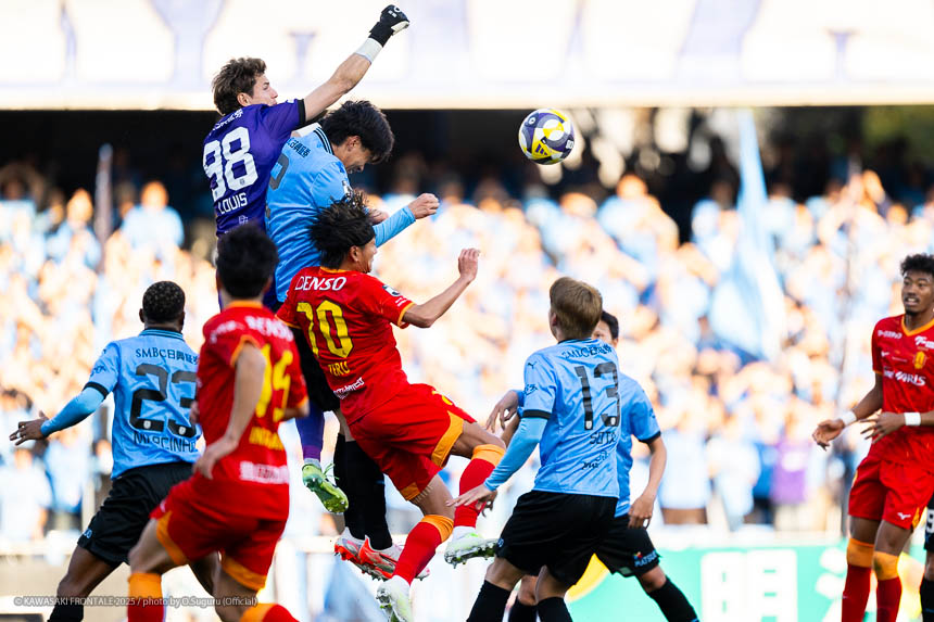 72分、フロンターレの攻撃。中盤でボールを奪って速攻。右サイドから際がクロスを入れるがGKにキャッチされる。74分、左コーナーキック。山本のボールはGKパンチング。こぼれ球を拾って押し込む。75分、際が右サイド裏のスペースにボールを入れヴェロンがクロス。さらに圧力をかけ河原がクロスを入れるがクリアされる。76分、左コーナーキック。山本のボールはクリアされる。77分、フロンターレのメンバーチェンジ。ヴェロンに代わって山内、山本に代わって橘田がピッチへ。78分、フロンターレの攻撃。左サイドをパスワークで崩し、山内が左足でシュートに持ち込むがGKに止められる。惜しい場面だった。79分、さらに相手ゴールに圧力をかけ橘田がクロス。山田がヘッドで合わせるがポストに当たり外れる。しかしこぼれ球に反応した山内が粘って押し込む(3-0)。82分、フロンターレのメンバーチェンジ。マルシーニョに代わって宮城、山田に代わってエリソンがピッチへ。87分、フロンターレの攻撃。パスをつないで押し込み山内が右サイドの深い位置で突破。折り返しを宮城がヒールで合わせる(4-0)。90分、名古屋の攻撃。リスタートの流れ。左サイドから崩しを狙われるが守備陣が対応。90+3分、フロンターレの攻撃。ボールを奪い返して左サイドに展開。崩しをかけてエリソンが連続してシュートに持ち込むが止められる。90+4分、際が右サイド裏のスペースにボールを入れ抜け出した山内が入り込んで左足でシュートを放つが惜しくもクロスバーに当たり外れる。際のスルーパスに走り込んだエリソンがエリア内で粘るがフィニッシュにつながらず。4-0で試合終了となった。