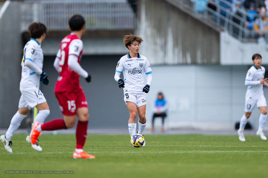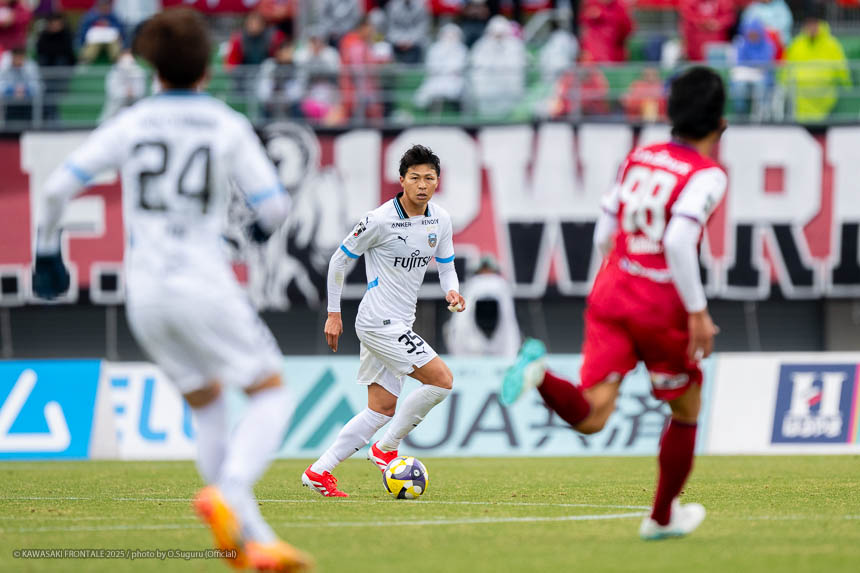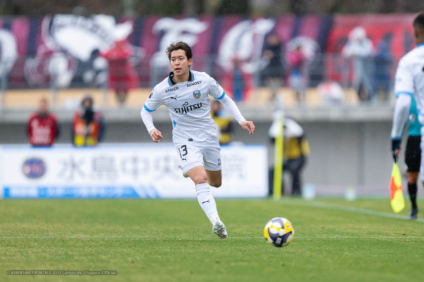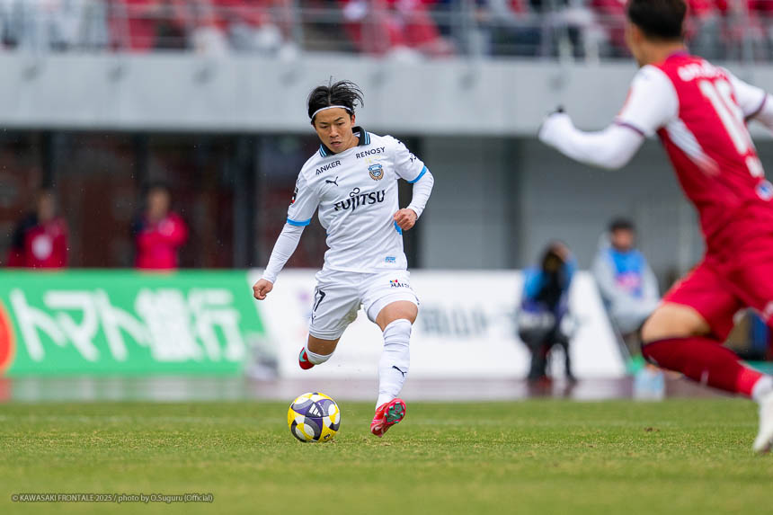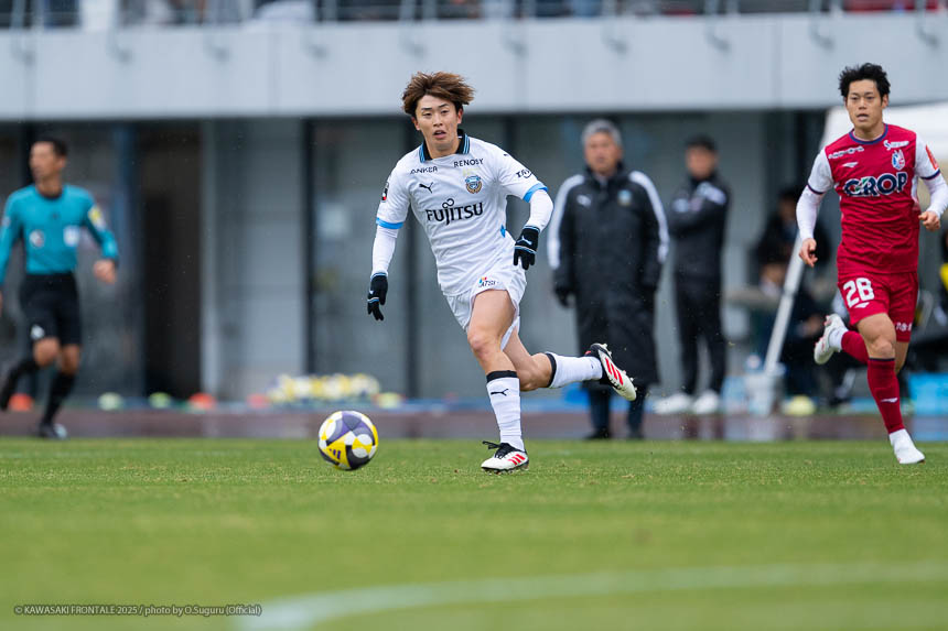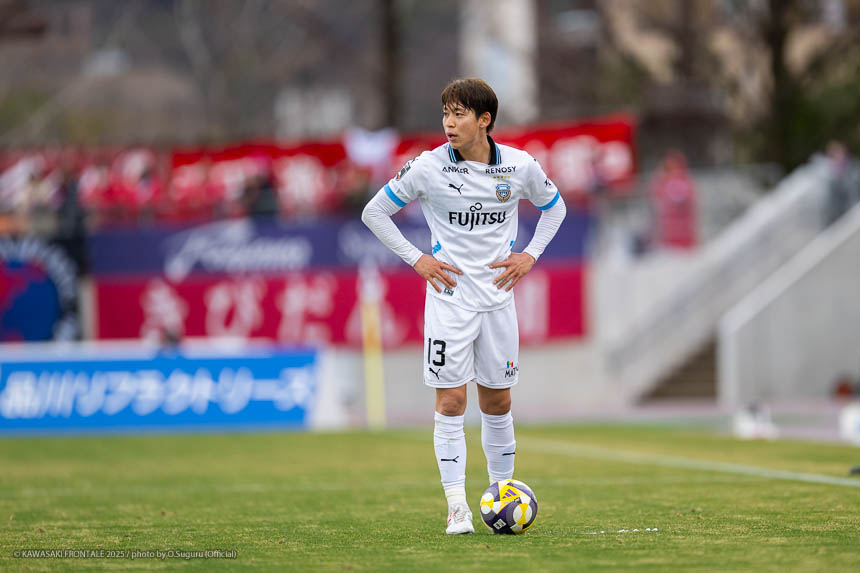 - ACLEでもJ3でも試合に出たので、プロデビューとは違ってあまり緊張しなかった。点が欲しい状況だったので、ゴール前に関わる決定的な仕事をすることを意識して入った。個人としてはできること、できないことが露骨に見えた。できないところが多くて悔しい部分が強い。単純なミスも多かったし、ちょっとした横パスがずれて自分のところがブレーキになっていたので、試合に出る選手としてレベルアップしないといけないと感じた。ピッチの問題にするのは簡単。J1で、フロンターレでスタメンの座をつかむためにはいらないミスだった。今年から帰ってきて試合に絡ませてもらっているなかで、自分の色や活躍を見せていかないとチャンスを失っていくと思う。これから代表活動に入るが、しっかりとレベルアップして、チームに貢献できるようにしていきたい。