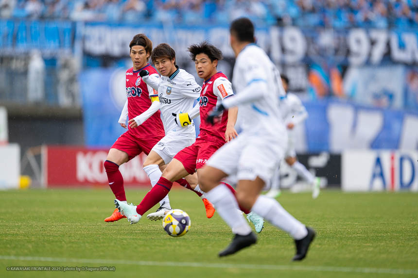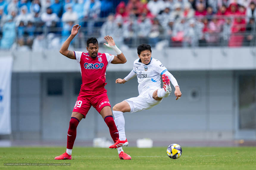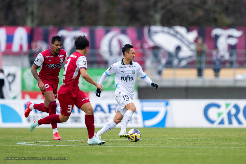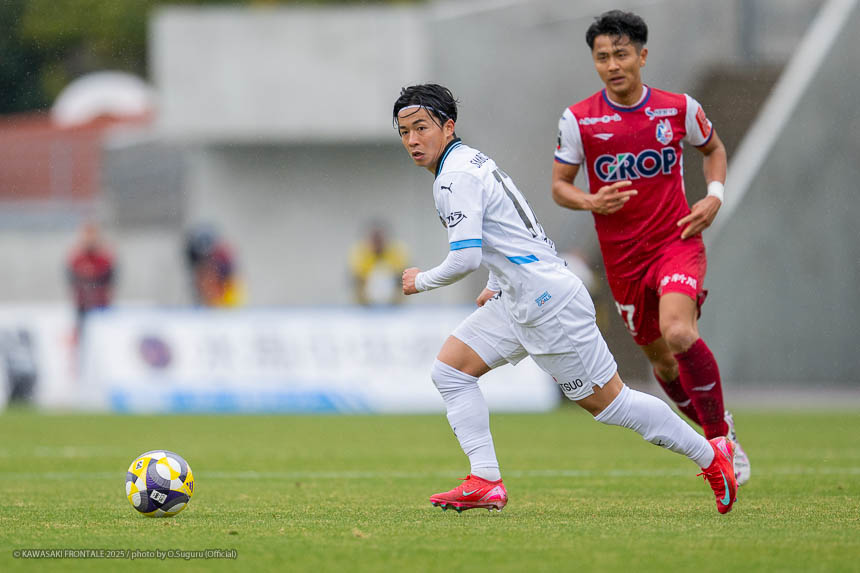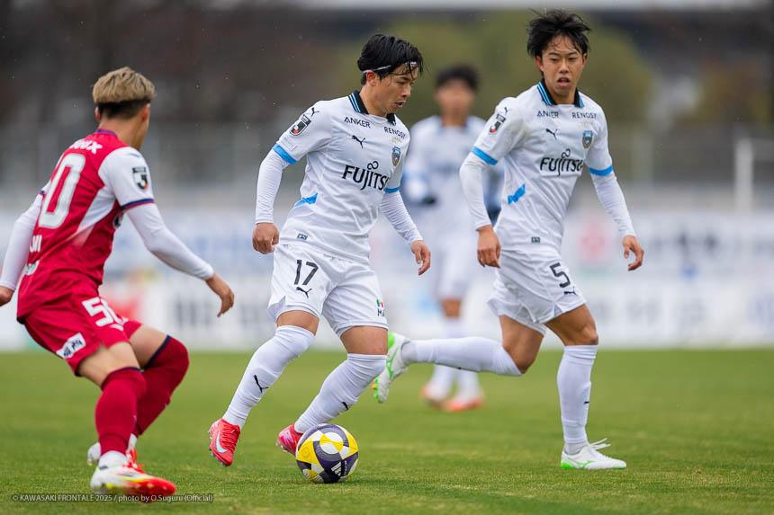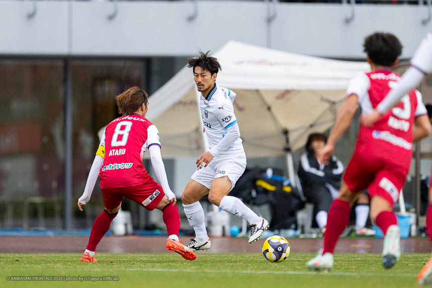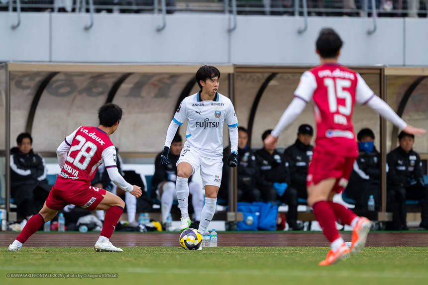 - ACLEでもJ3でも試合に出たので、プロデビューとは違ってあまり緊張しなかった。点が欲しい状況だったので、ゴール前に関わる決定的な仕事をすることを意識して入った。個人としてはできること、できないことが露骨に見えた。できないところが多くて悔しい部分が強い。単純なミスも多かったし、ちょっとした横パスがずれて自分のところがブレーキになっていたので、試合に出る選手としてレベルアップしないといけないと感じた。ピッチの問題にするのは簡単。J1で、フロンターレでスタメンの座をつかむためにはいらないミスだった。今年から帰ってきて試合に絡ませてもらっているなかで、自分の色や活躍を見せていかないとチャンスを失っていくと思う。これから代表活動に入るが、しっかりとレベルアップして、チームに貢献できるようにしていきたい。
