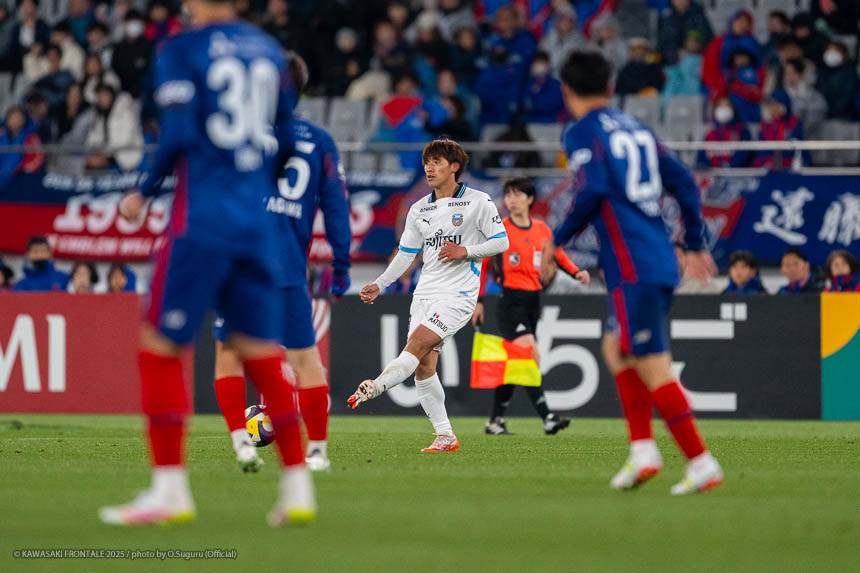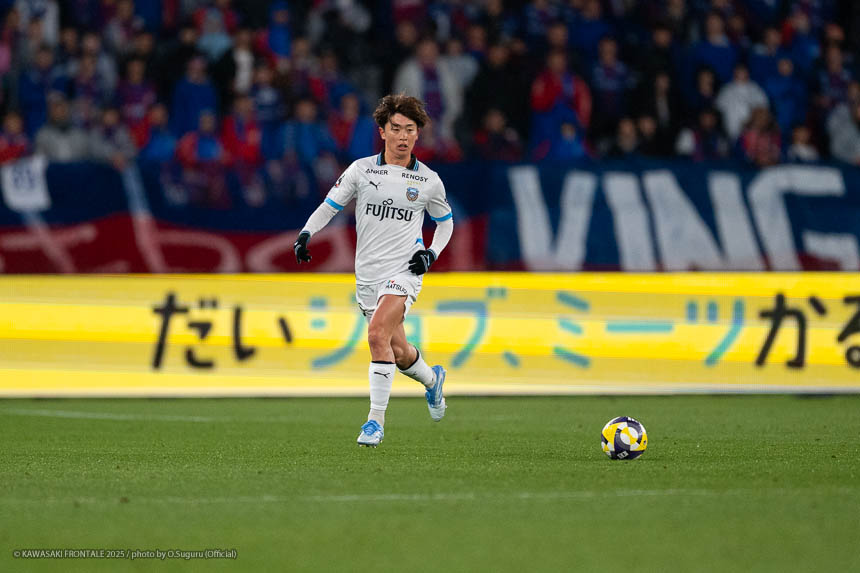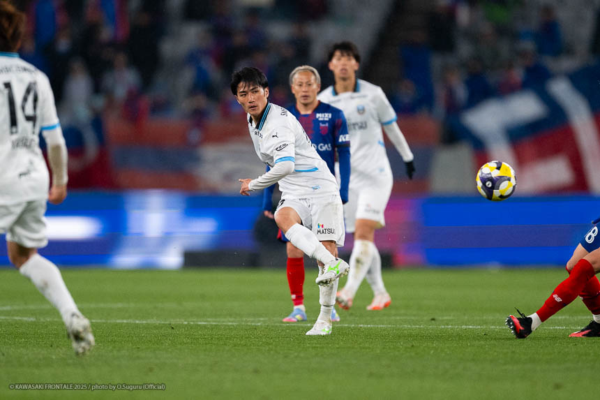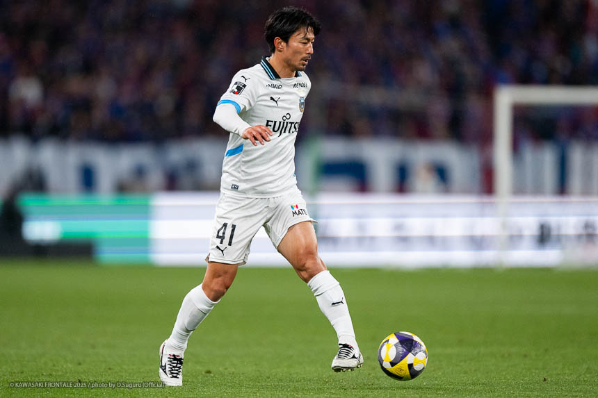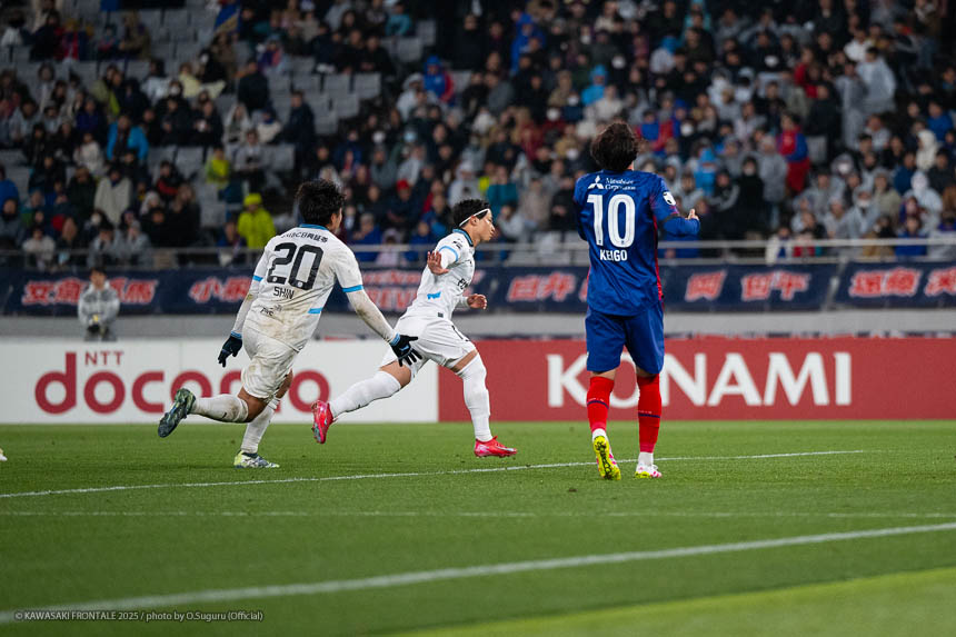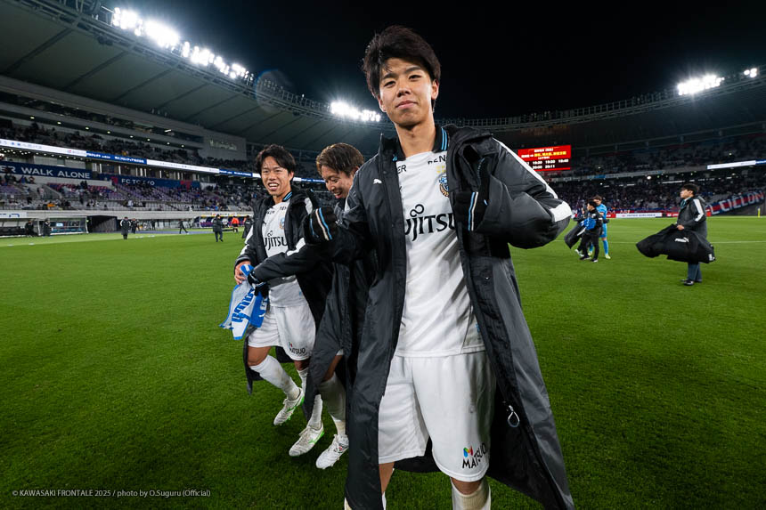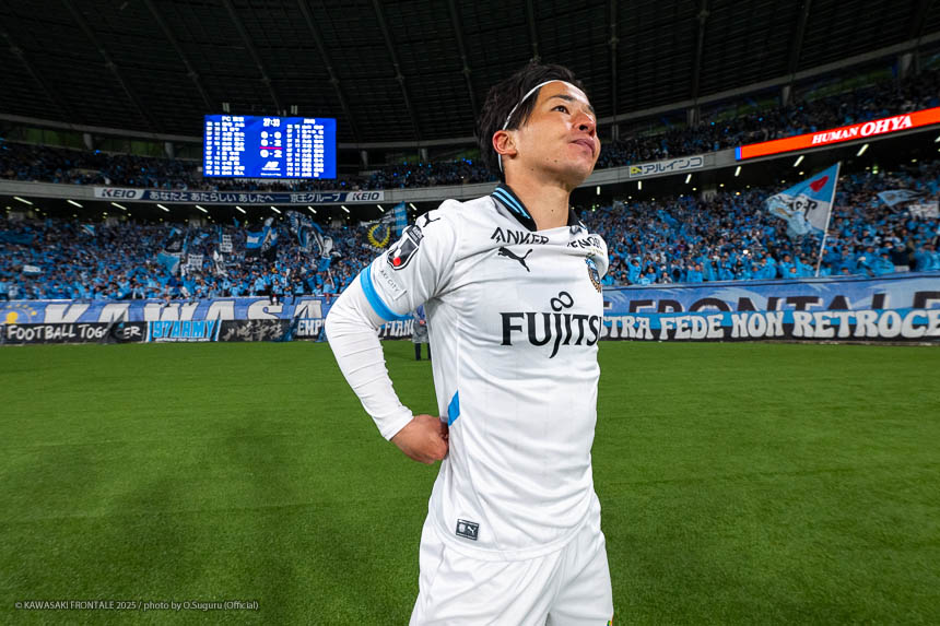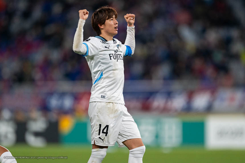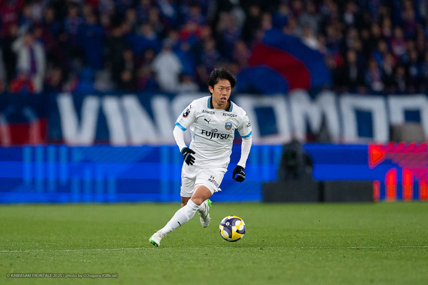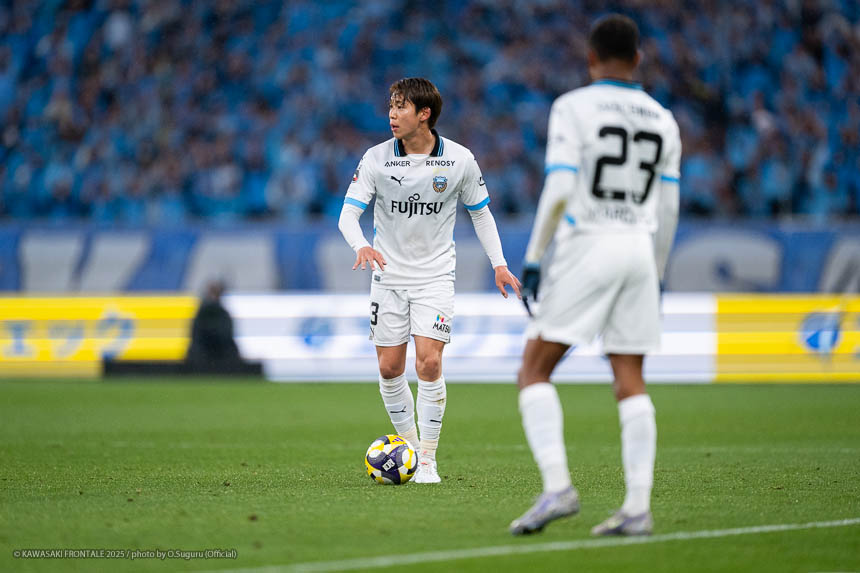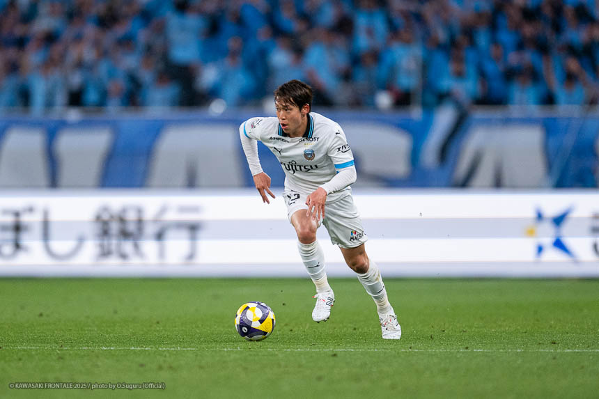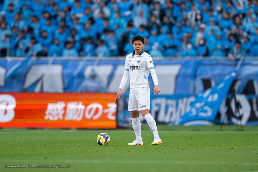 - 前半は悪いときの自分たちというか、距離感もすごく遠くて、準備してきたことがうまく出せなかった。そのなかでルイくん(山口瑠伊)がビッグセーブで止めてくれた。きつい時間帯でも失点をしないのは今年のチームの特徴だと思うし、去年からの変化。あそこで耐えられたからこそ後半のようなゲームができたと思う。先制点のシーンはボールを受けたときに1枚はがして中を見たらヤスくん(脇坂泰斗)がフリーだったので、速いボールでも止めてくれると思ってパスを出した。アシストできたが、あれだけ相手がアキさん(家長昭博)にマークをつけたら自分はフリーになれる。1枚ならはがせる自信があるし、思い切ってしかけようと毎試合やっている。それがうまく結果につながってよかった。