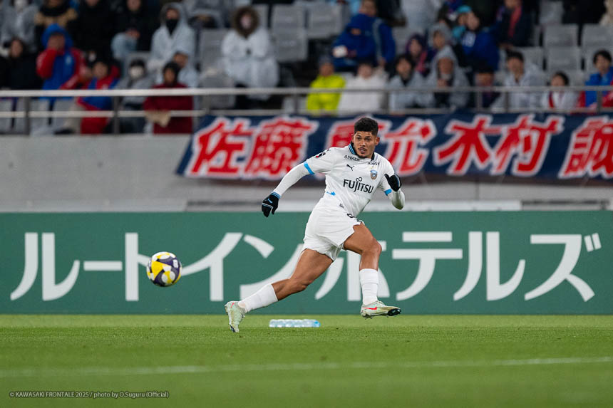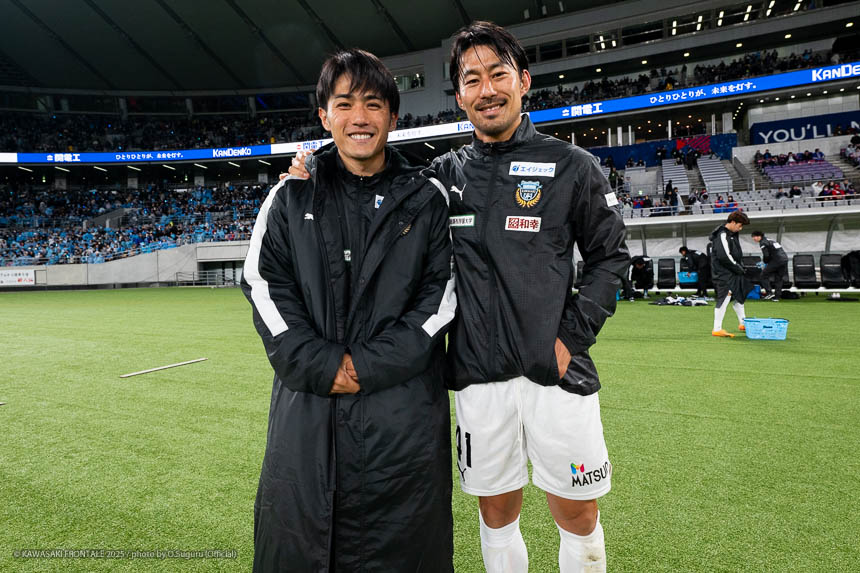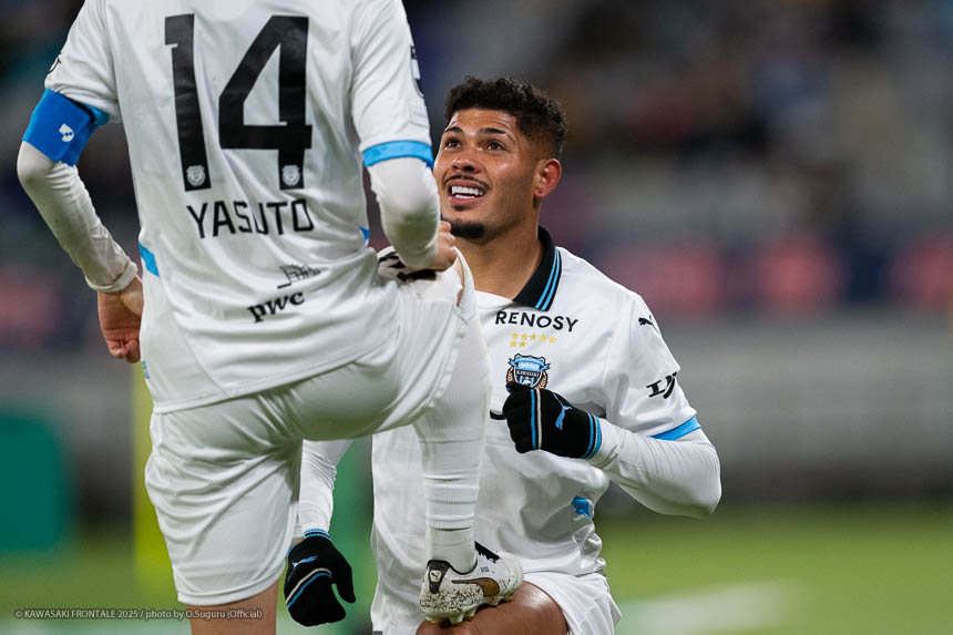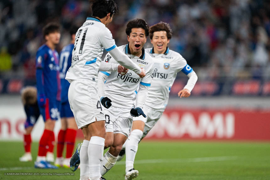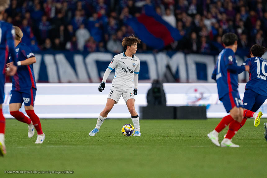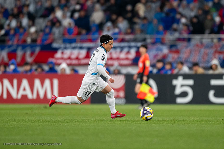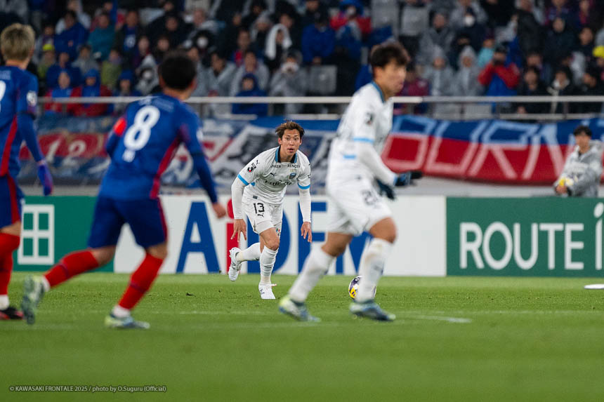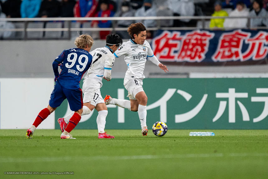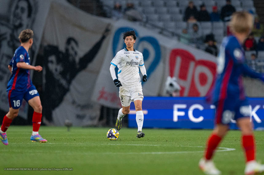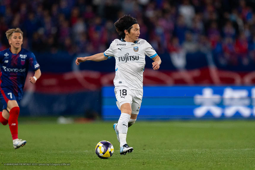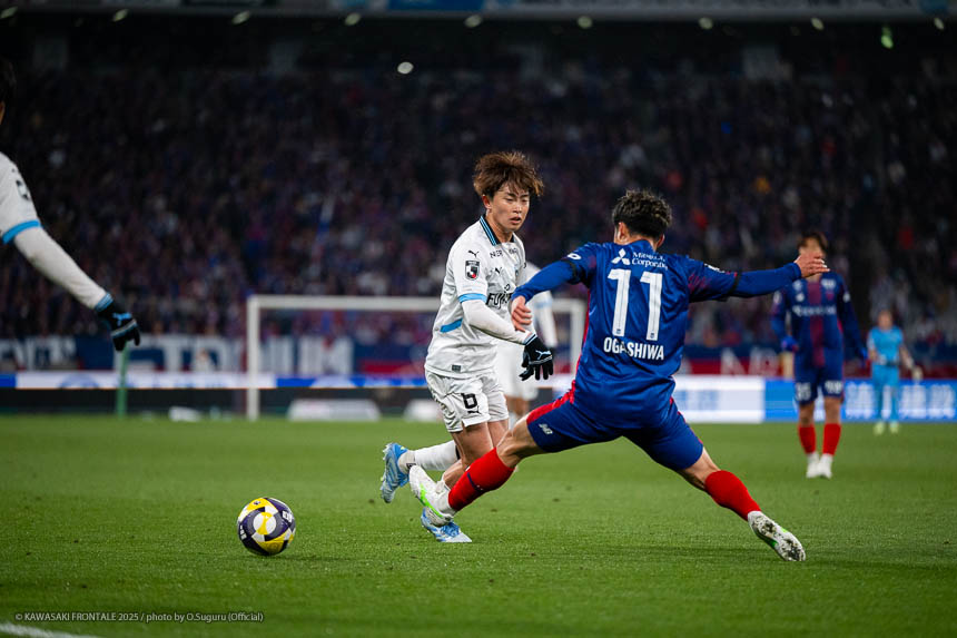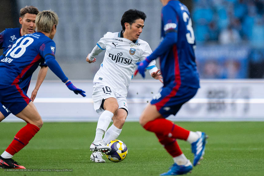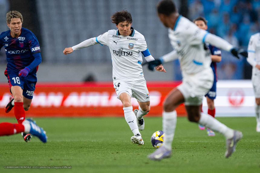- 前半は悪いときの自分たちというか、距離感もすごく遠くて、準備してきたことがうまく出せなかった。そのなかでルイくん(山口瑠伊)がビッグセーブで止めてくれた。きつい時間帯でも失点をしないのは今年のチームの特徴だと思うし、去年からの変化。あそこで耐えられたからこそ後半のようなゲームができたと思う。先制点のシーンはボールを受けたときに1枚はがして中を見たらヤスくん(脇坂泰斗)がフリーだったので、速いボールでも止めてくれると思ってパスを出した。アシストできたが、あれだけ相手がアキさん(家長昭博)にマークをつけたら自分はフリーになれる。1枚ならはがせる自信があるし、思い切ってしかけようと毎試合やっている。それがうまく結果につながってよかった。