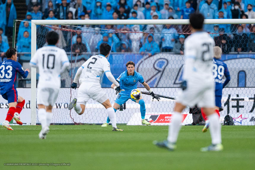 48分、セカンドボールを拾って相手陣内に押し込むがファウルで止められる。さらにサイドから崩しをかけて脇坂が抜け出して折り返し。さらに左サイドから三浦が速いボールを入れるがGKにキャッチされる。49分、FC東京の攻撃。直後に反撃をかけられ左サイドから安斎に低いボールを入れられるがGK山口がキャッチ。51分、ペナルティエリア右前からのフリーキックの場面。安斎に直接シュートを打たれるがゴール右に外れる。52分、速い攻撃を狙われ右サイドから白井にクロスを入れられるが、GK山口が触りしのぐ。54分、フロンターレの攻撃。左サイドから崩しをかけ裏のスペースに抜け出したマルシーニョが折り返すがクリアされる。迎えた55分、フロンターレの攻撃。丸山のインターセプトから相手陣内にボールを運び、右サイドから佐々木が中央の脇坂にパス。ゴール前に出たボールを山田が粘って反転しながらシュートを決める。(1-0)57分、FC東京の攻撃。背後のスペースにボールを入れられ俵積田に左サイドからシュートを狙われるが高井が戻りながらブロック。59分、自陣からボールを運ばれ押し込まれるがチームディフェンスで対応。61分、フロンターレの攻撃。中盤でボールを奪い返して押し込み、左サイドから三浦がクロスを入れるがGKにキャッチされる。67分、FC東京の攻撃。パスをつながれ押し込まれるが守備陣がしのぐ。68分、自陣からボールを運ばれ右サイドから崩しをかけられるが守備陣が戻り対応。70分、パスをつながれ両サイドから突破を狙われるが守備陣が対応。