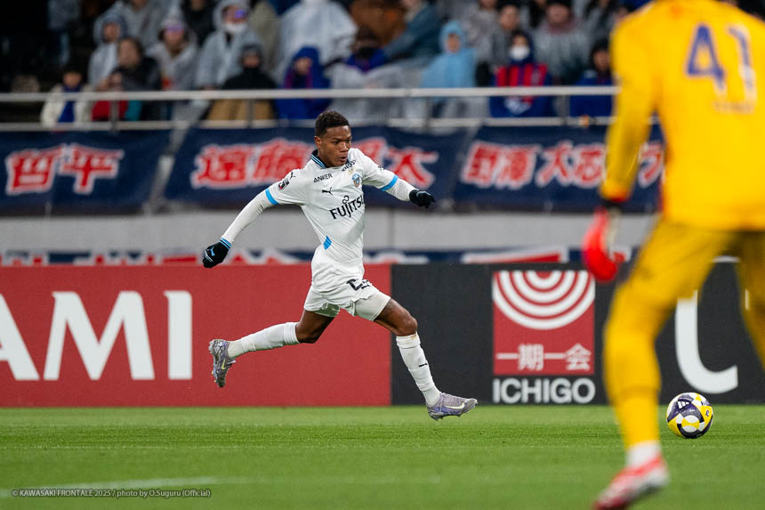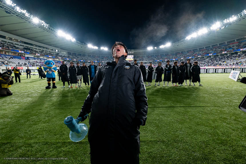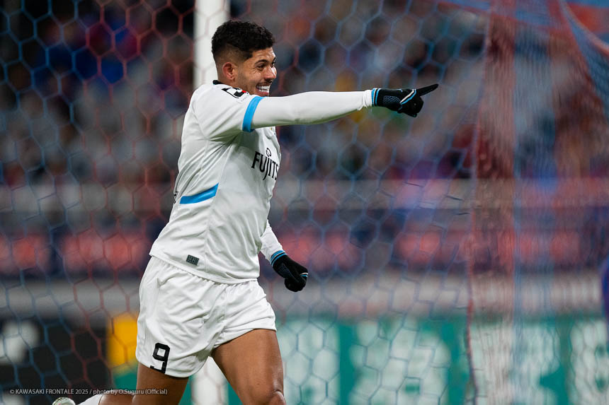- 前半は守備で苦しい時間もあったがいい形でボールを奪えてチャンスを作れていたし、守備とクロスからチャンスになりそうだなと思っていたので、しっかり動き続けようと意識していた。そのなかでリョウタくん(大島僚太)から100点のパスが来てチャンスがあったので、そこで決めなければいけなかった。ゴールシーンはヤスくん(脇坂泰斗)のトラップミスがうまく自分のところに来た。その流れで相手を背負った状態だったが、思い切って振り抜けた。あの場所で背負ったらシュートにもっていける感覚があるし、ヤスくんが自分の外を回ってくれてGKを釣ってくれたおかげでニアに打てば入る状況を作れた。シュート自体は弱かったが、いろいろな人が関わったからこそコースが空いたと思う。ここからの連戦で試合を重ねるごとに体は確実に辛くなっていくと思うが、心と体はつながっているので勝つと次の試合に向けてよりいい準備ができる。そういう意味でも今日は3-0で勝ててよかった。