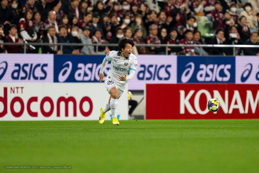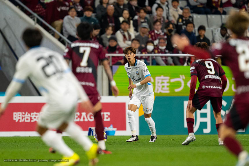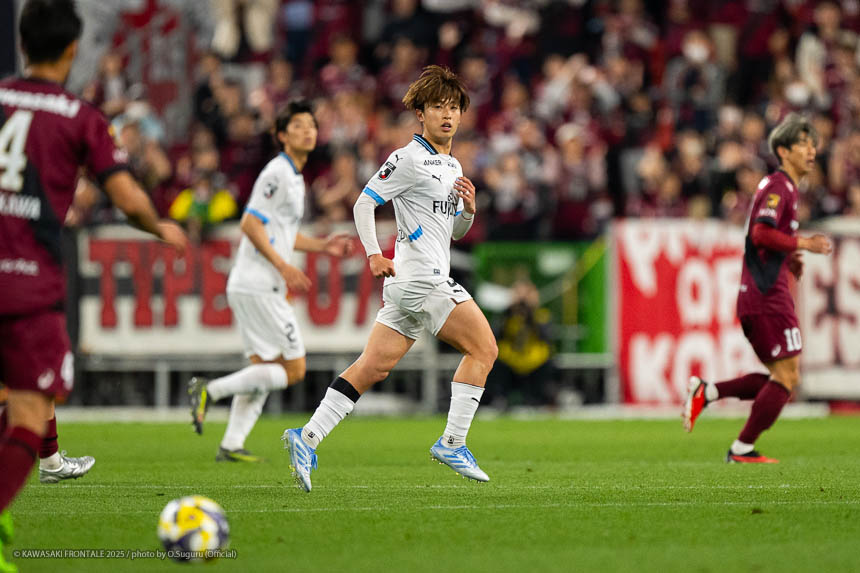 どのポジションで出ても自分自身のやることは変わらない。ここ2試合で課題が自分のなかで出た。準備をして頭の整理はできているので、体を動かす、しっかりとゲームに入ることを意識してやりたい。神戸のタイセイくん(宮代大聖)とは、フロンターレにいるときから仲良くさせてもらっていた。よく1対1の練習をしていたが、最後のほうはけっこう止めていたので、今回も止められるんじゃないかなと。…