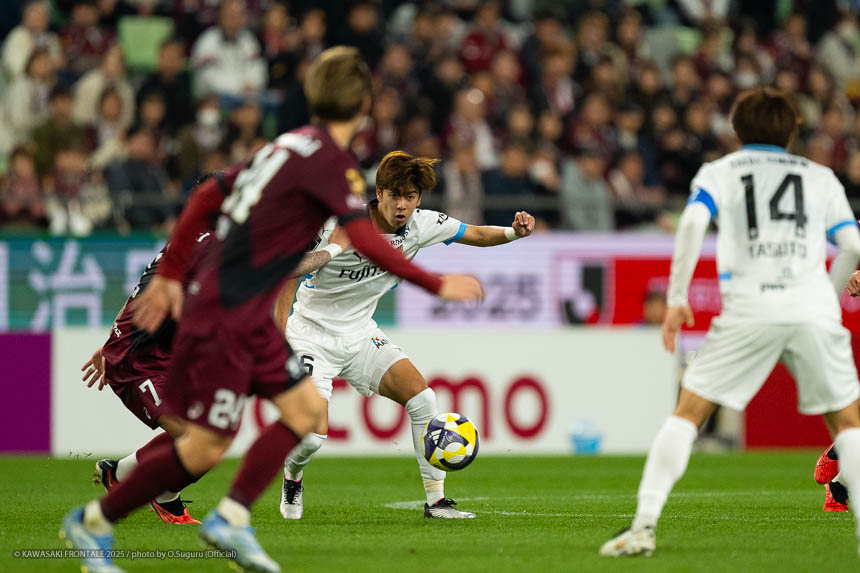 フロンターレのスターティングメンバーはトップにエリソン、その下に脇坂、左ワイドにマルシーニョ、右に伊藤、ボランチは山本と河原のコンビ、最終ラインは三浦-丸山-高井-佐々木、GK山口。4分、フロンターレの攻撃。右サイドでボールキープ。中央の河原を経由して左サイドに展開するがフィニッシュにつながらず。5分、左コーナーキックの場面。三浦のボールはクリアされる。こぼれ球を拾い左サイドから山本がクロスを入れ、ファーサイドのマルシーニョがヘッドで狙うがうまくミートせず。6分、神戸の攻撃。エリキに右サイドから切れ込まれ、左サイドからゴール前にボールが入るが守備陣がクリア。さらに攻勢をかけられ右サイドからクロスが入るがGK山口がキャッチ。7分、中盤でボールを奪い返されカウンターを受け、右サイドのエリキにシュート性のボールを入れられるがGK山口がセーブ。ピンチをしのぐ。9分、ロングボールのセカンドボールを拾われ右サイドからクロスが入るが丸山がクリア。9分、フロンターレの攻撃。直後にカウンターを狙いエリソンが中盤からドリブルでボールを運ぶがシュートに持ち込めず。10分、神戸の攻撃。左サイド裏のスペースを突かれエリキに折り返されるが守備陣が対応。15分、左サイドでパスをつながれクロスを入れられ、さらに右サイドからクロスを狙われるが守備陣がブロック。さらに圧力をかけられるが守備陣がしのぐ。17分、右サイド裏のスペースを突かれエリキに深い位置から折り返されるが高井がクリア。18分、右コーナーキックの場面。汰木のボールは丸山がクリア。セカンドはボールを拾われボールを入れられ、最後は本多にシュートを打たれるが守備陣が体に当ててしのぐ。19分、左コーナーキックの場面。汰木のボールはマルシーニョがクリア。19分、カウンターを狙うが中盤で止められ、反撃を受け右サイドからアーリークロスが入るがGK山口がキャッチ。20分、中盤でボールを奪われショートカウンターを狙われるが宮代には高井が対応。21分、カウンターを狙ったところでカウンターを返され右サイドからクロスが入るが山本がクリア。21分、フロンターレの攻撃。直後にカウンターを狙いエリソンが左サイドからシュートに持ち込むが枠を外れる。23分、神戸の攻撃。ロングボールのセカンドボールを拾われ押し込まれ、左サイド汰木にクロスを入れられるが三浦がクリア。神戸のファウルの判定。