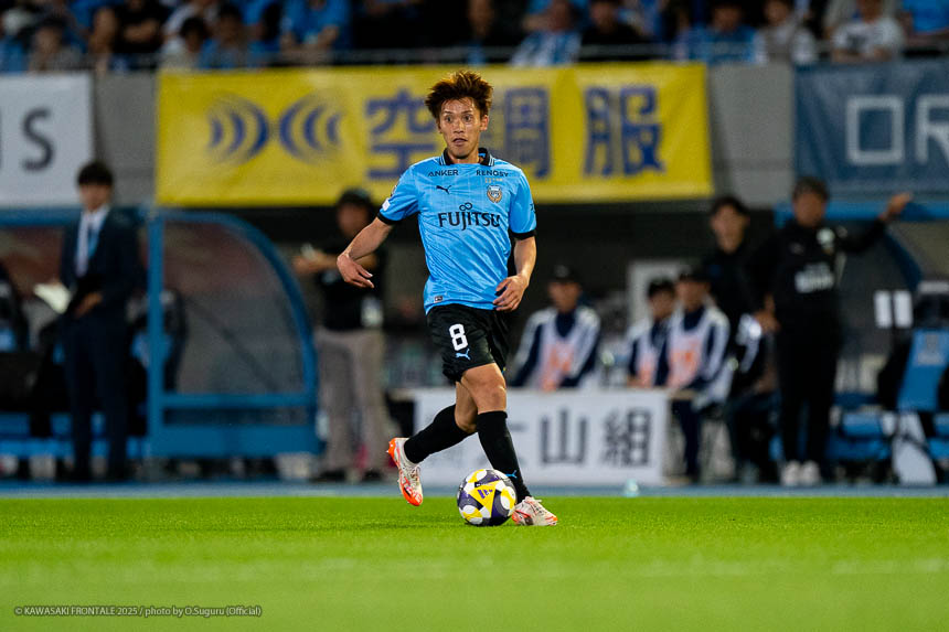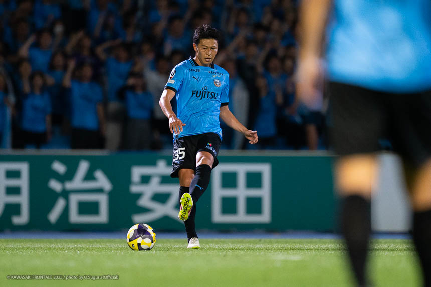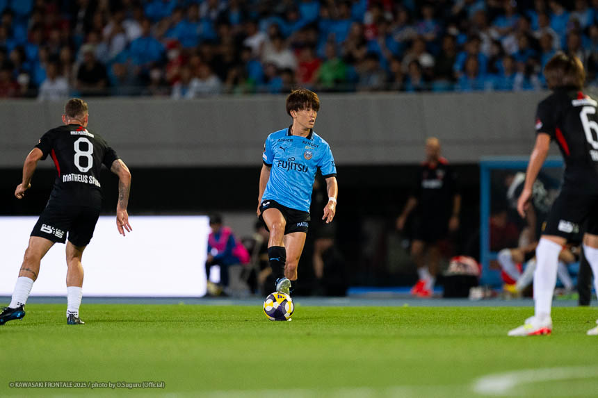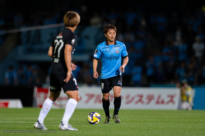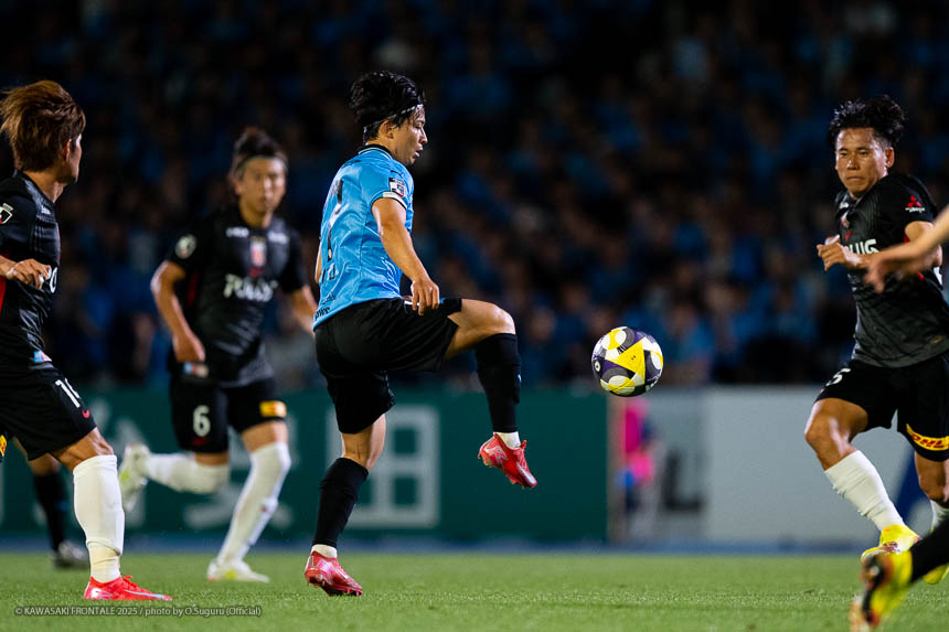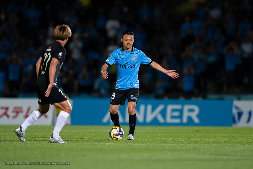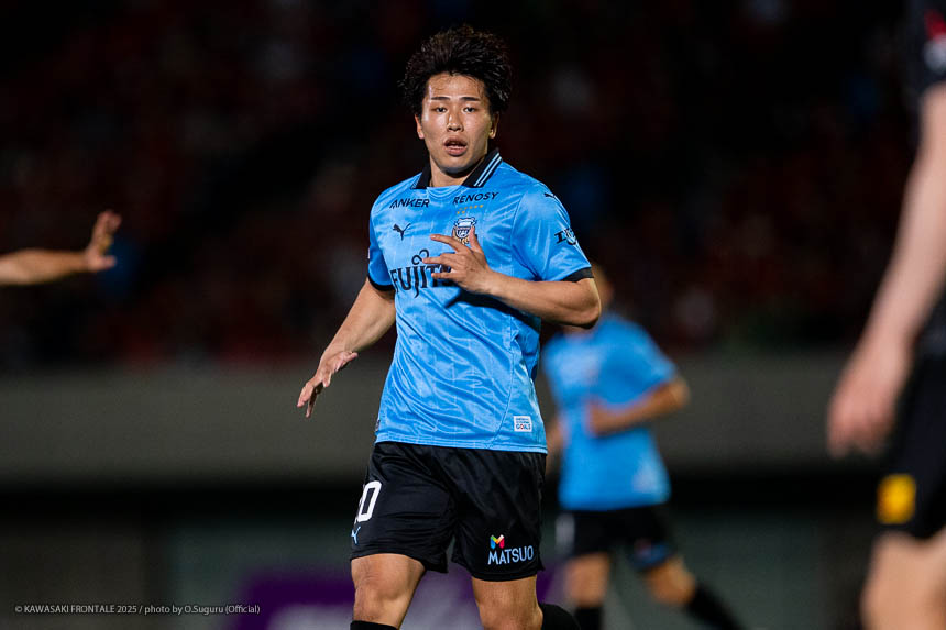 - 勝利にふさわしいゲームだったと思う。ただ、シーズンのなかでこういう試合は必ずあるので、逆に気を落とさないことが大事。この連戦で勝点を積み上げているのはポジティブなことだと思う。まだ連戦が続くのでしっかり切り替えて次の試合に向かいたい。(2点目のシーンは)ゼキ(大関友翔)と目が合った。アキさん(家長昭博)が相手のサイドバックを釣り出してくれたときのスペースの使い方は共有できていて、そこにゼキがいい形でボールを出してくれた。あとはいい形で落とせればと思っていた。ゼキからのボールがいい形で前めに来たので、相手のラインが下がっている流れを止めないでゴール前を使いたいと思ってダイレクトで出した。セガちゃん(瀬川祐輔)がうまく決めてくれた。個人としては試合が続いたほうが体が動くので、1試合ごとに体が軽くなっている感覚がある。連戦がデメリットという感じではないので、自分のプレーをチームに還元できるよう続けていきたい。