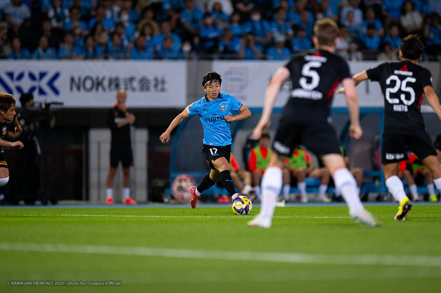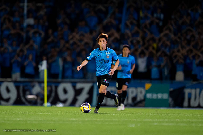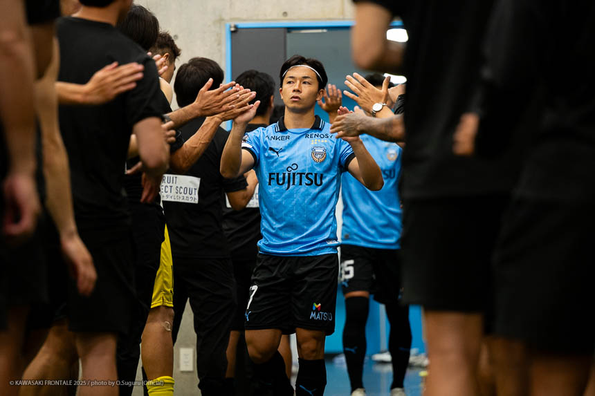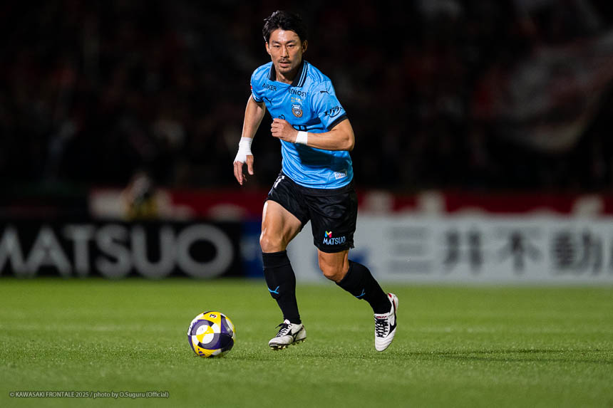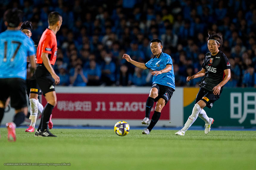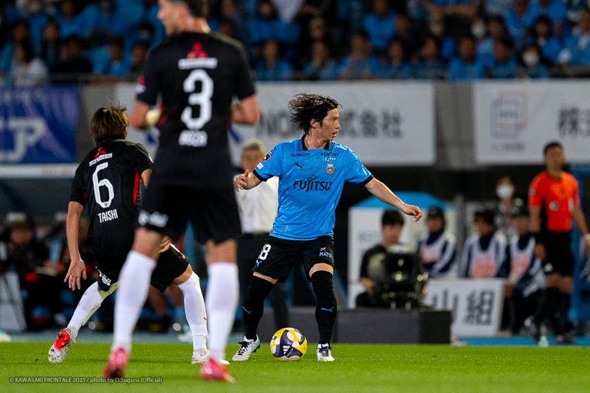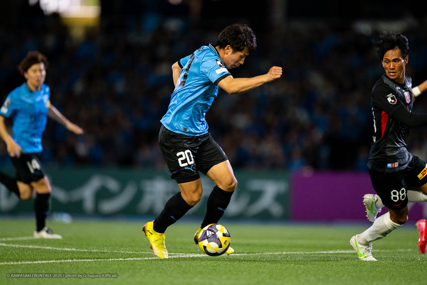 - 勝利にふさわしいゲームだったと思う。ただ、シーズンのなかでこういう試合は必ずあるので、逆に気を落とさないことが大事。この連戦で勝点を積み上げているのはポジティブなことだと思う。まだ連戦が続くのでしっかり切り替えて次の試合に向かいたい。(2点目のシーンは)ゼキ(大関友翔)と目が合った。アキさん(家長昭博)が相手のサイドバックを釣り出してくれたときのスペースの使い方は共有できていて、そこにゼキがいい形でボールを出してくれた。あとはいい形で落とせればと思っていた。ゼキからのボールがいい形で前めに来たので、相手のラインが下がっている流れを止めないでゴール前を使いたいと思ってダイレクトで出した。セガちゃん(瀬川祐輔)がうまく決めてくれた。個人としては試合が続いたほうが体が動くので、1試合ごとに体が軽くなっている感覚がある。連戦がデメリットという感じではないので、自分のプレーをチームに還元できるよう続けていきたい。