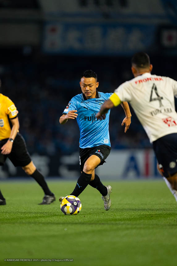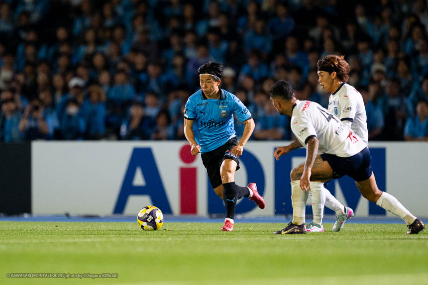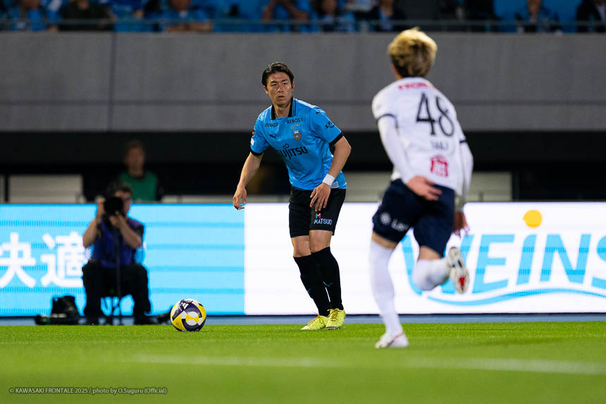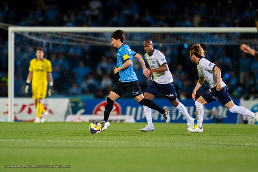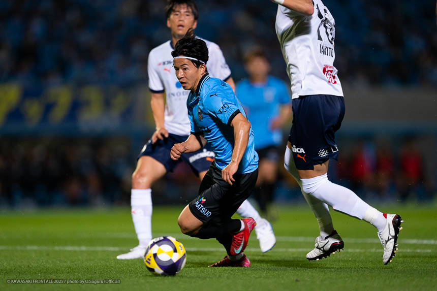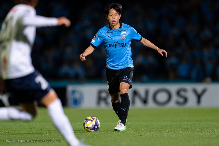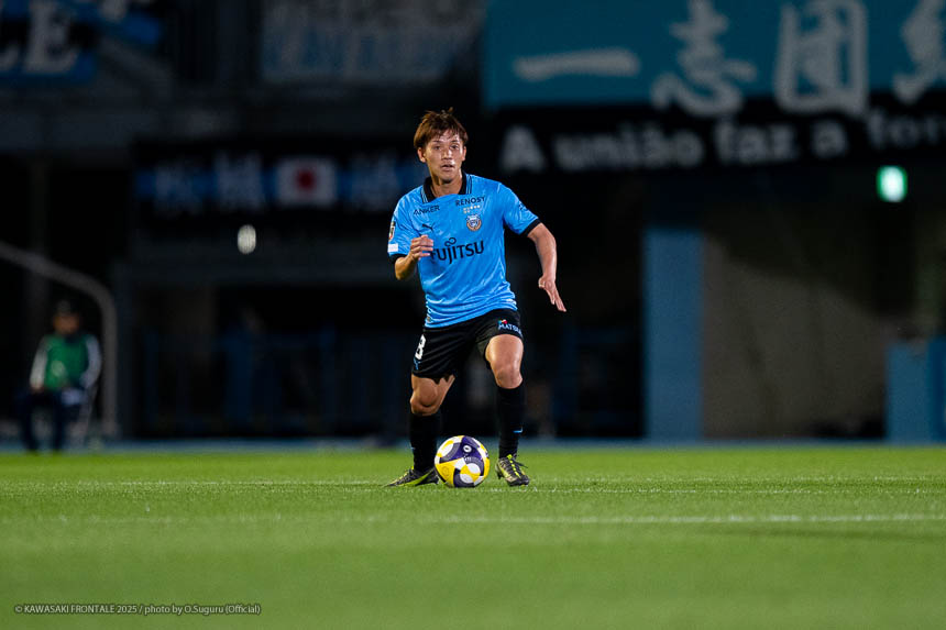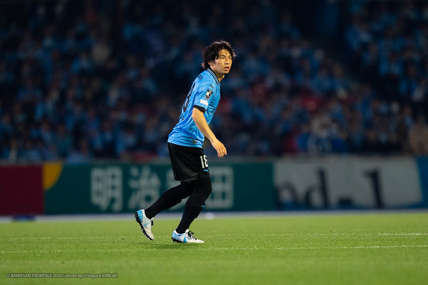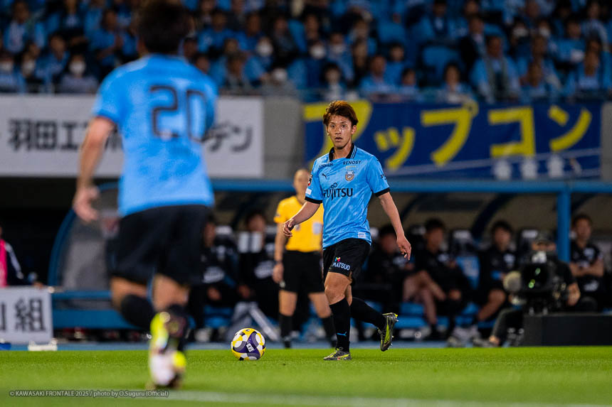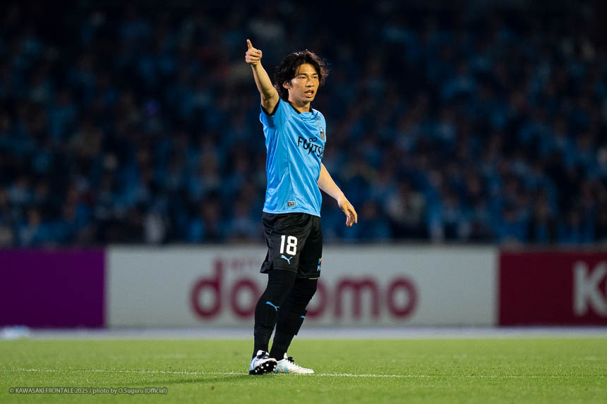 - 個人的にもまったく満足していない。これで満足してしまったら、そこまでの選手とチームになってしまうと思う。勝ちは勝ちだが、前回の鹿島戦では決めるところを決めるのが課題だったなかで今日はどうだったかというと、まだ課題はあると思う。そこは厳しくやっていかないといけない。前半は相手が引いてブロックを敷いてきて難しさもあった。外に広げて中を使うことを意識していたので、左サイドの自分たちがしかけていくよりは中を使いながら割っていければと思っていた。4分ぐらいで失点したのは反省しなければいけないが、ユウキくん(山本悠樹)が決めてくれて相手が少し出てきてくれたのでやりやすくなった。ひさしぶりにフロンターレらしくボールを動かして、相手よりもボールを握る戦いができていたと思う。そのなかでセットプレーだったが1点を取れた。つねにああいった戦いができれば相手もどんどん消耗してくるし、自分たちも楽にゲームを進められるので継続していければと思っている。