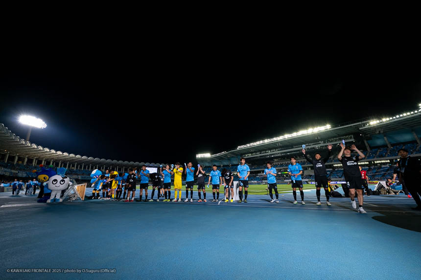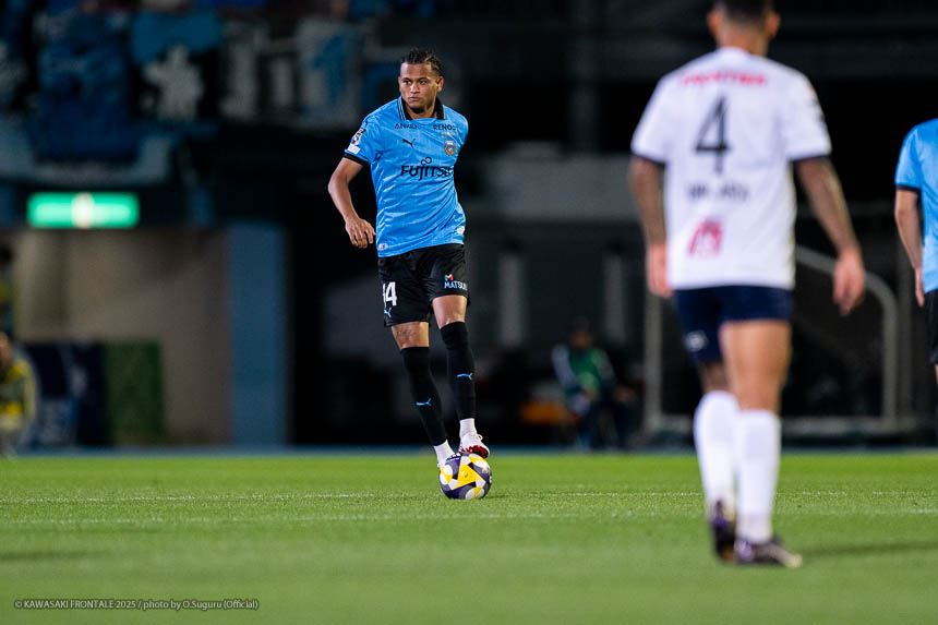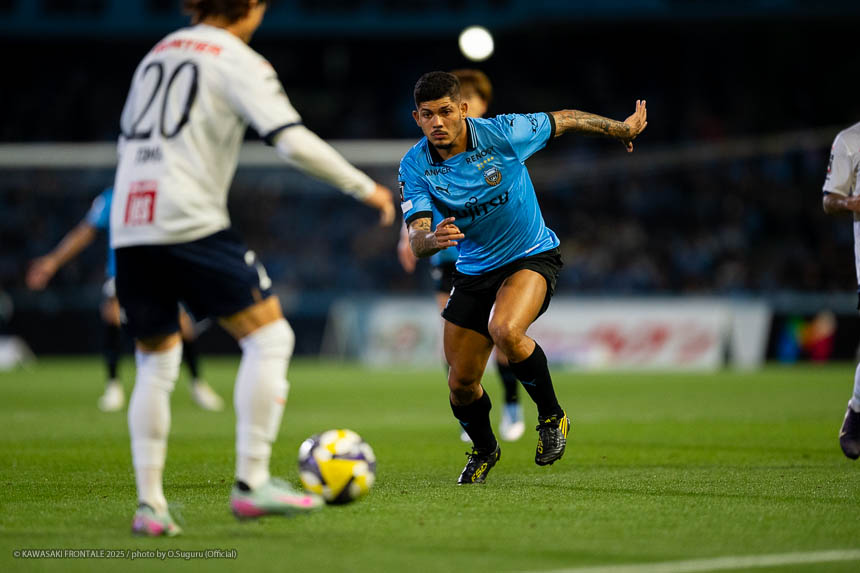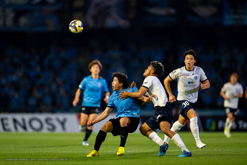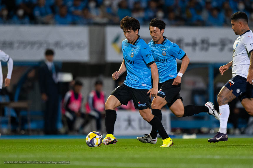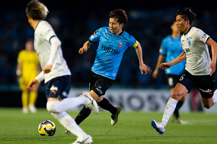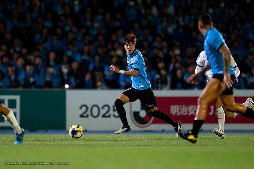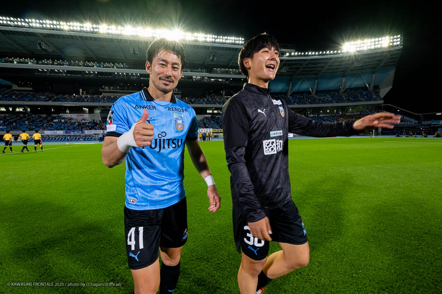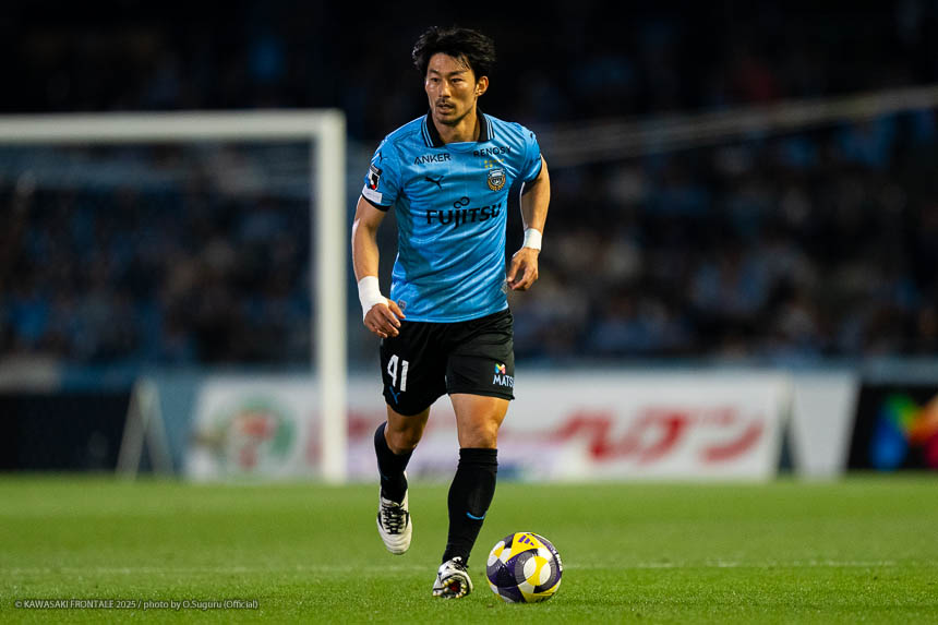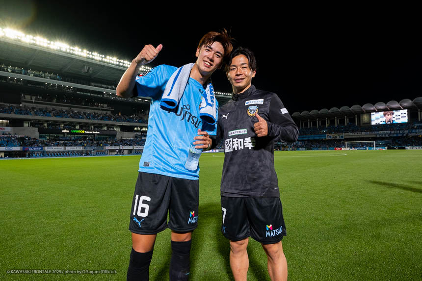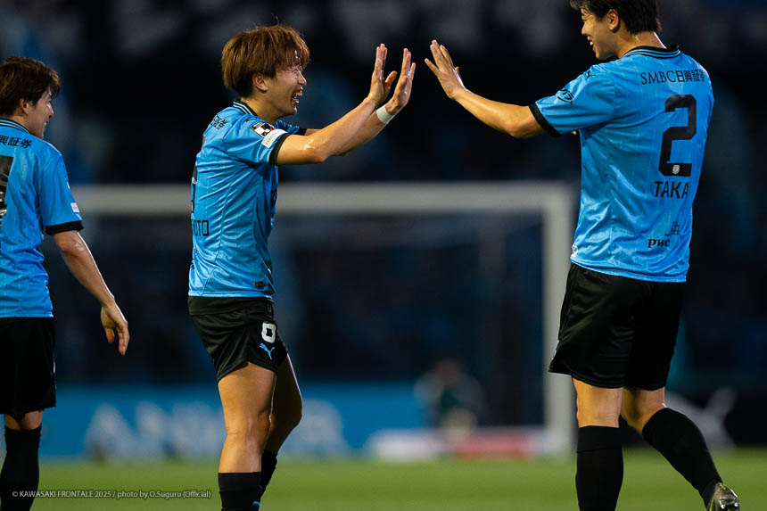 - 個人的にもまったく満足していない。これで満足してしまったら、そこまでの選手とチームになってしまうと思う。勝ちは勝ちだが、前回の鹿島戦では決めるところを決めるのが課題だったなかで今日はどうだったかというと、まだ課題はあると思う。そこは厳しくやっていかないといけない。前半は相手が引いてブロックを敷いてきて難しさもあった。外に広げて中を使うことを意識していたので、左サイドの自分たちがしかけていくよりは中を使いながら割っていければと思っていた。4分ぐらいで失点したのは反省しなければいけないが、ユウキくん(山本悠樹)が決めてくれて相手が少し出てきてくれたのでやりやすくなった。ひさしぶりにフロンターレらしくボールを動かして、相手よりもボールを握る戦いができていたと思う。そのなかでセットプレーだったが1点を取れた。つねにああいった戦いができれば相手もどんどん消耗してくるし、自分たちも楽にゲームを進められるので継続していければと思っている。