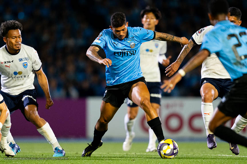 47分、フロンターレの攻撃。相手陣内でボールを奪い圧力をかける。47分、左コーナーキック。山本のボールはクリアされる。48分、右コーナーキック。山本のボールはクリアされる。51分、横浜FCの攻撃。自陣でのスローインを拾われ右サイドからのクロスを櫻川にヘッドで合わせられるが枠を外れる。52分、フロンターレの攻撃。セカンドボールを拾って右サイドから際がクロスを入れるがクリアされる。53分、横浜FCの攻撃。右コーナーキック。山田康のボールは高井がクリア。53分、さらにGKのロングボールからゴール前に圧力をかけられるが守備陣がしのぐ。54分、中盤でボールをカットされ駒井に左サイドから突破をしかけられるが橘田が対応。55分、ロングボールを入れられ櫻川に粘られるが守備陣がかき出す。57分、左サイドに展開されクロスが入るが高井がクリア。59分、左サイドに振られクロスを櫻川にヘッドで合わせられるがGK山口がセーブ。こぼれ球に詰められるがシュートは枠を外れる。危ない場面だった。60分、フロンターレの攻撃。直後に伊藤が中盤左から突破をしかけるがファウルで止められる。61分、左サイドからのフリーキック。山本のボールはそのままラインを割る。63分、フロンターレのメンバーチェンジ。脇坂に代わって大関、伊藤に代わってマルシーニョ、山田に代わってエリソンがピッチへ。66分、横浜FCの攻撃。エリア内に浮き球を入れられるがルキアンにはアイダルが対応。67分、中盤でボールを奪われカウンターを狙われるが最終ラインが戻って対応。