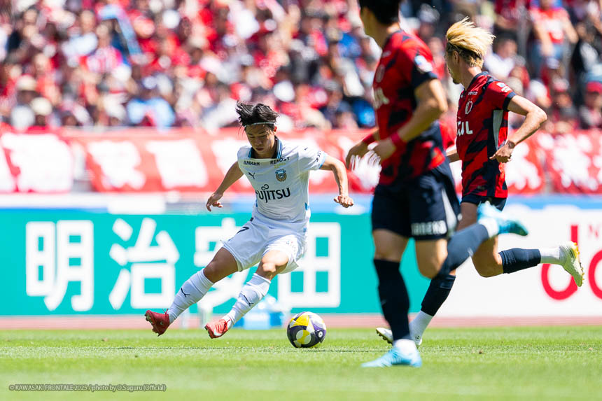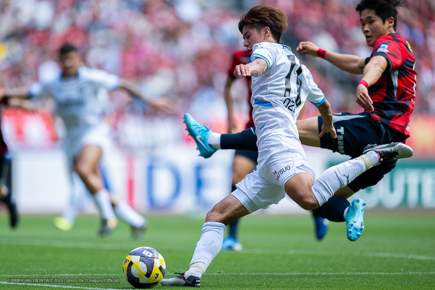 - 決定機で自分が決められなかったのが敗因だと思っている。試合で一番の決定機だったのですごく悔しい。とくに攻撃の部分でミスも少なくできたのでよかったが、決定機を外してしまった。今日はヤスくん(脇坂泰斗)がいないなかで、自分がスタメンを取るという意味でも決めなければいけなかった。そこだけだと思っている。トップ下が得点を決められるチームは強い。自分にチャンスが来ているし、そこをものにできるかどうかだと思うので麻生グラウンドに帰ってまた練習したい。