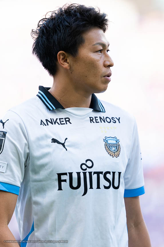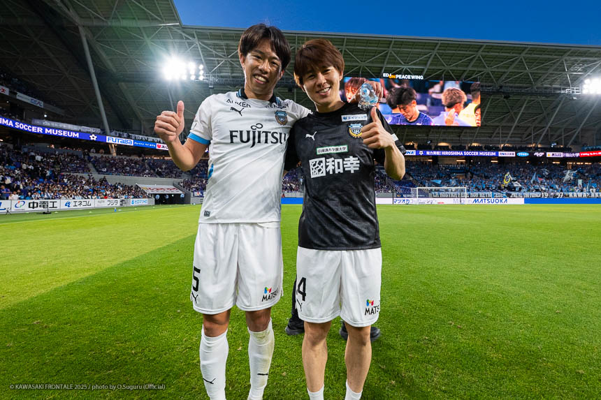 - 相手のやり方は予想の範疇だった。相手が5枚のときに、自分がウイングバックに当たりに行くのがいい形で、はまってきている感覚があった。そのなかでいい形で点を取れたのでよかった。ビルドアップに関しては広島の3枚が競り合いを含めて高いボールに強いので、そこで勝負させないように。ただクリアするのではなく相手がクリアしにくい高さで蹴るとか、なるべく足元でつなげるところはつなぐことを意識してやっていた。相手の後ろは5枚なので、押し込んでキープする時間が長ければカウンターも脅威になりにくい。一番嫌なパターンが後ろの3枚の両脇が攻撃参加されるときなので、簡単にボールを失わずにキープすることを考えていた。先制点につながったクロスは長谷部さん(長谷部茂利監督)やオグリさん(大黒将志コーチ)と練習から話していたが、手前で引っかけたら何も起きない。アキさん(家長昭博)のボールが少し右に流れたので時間を使って、いい形でクロスを上げられた。ボールにアタックをしてふんわりしたボールを上げるのは難しいので、その形が吉と出て奥までボールを上げることができたと思う。