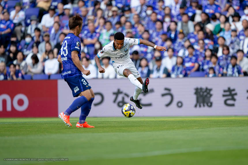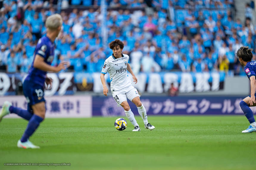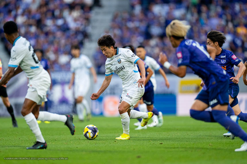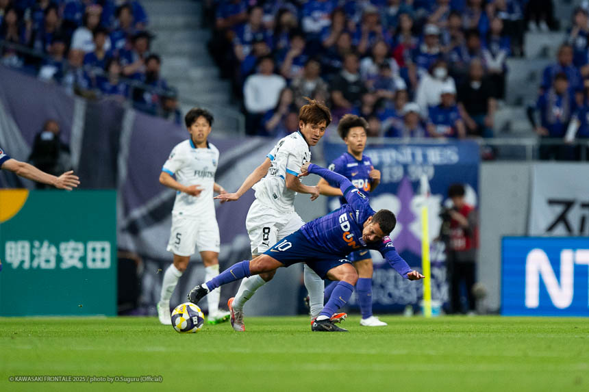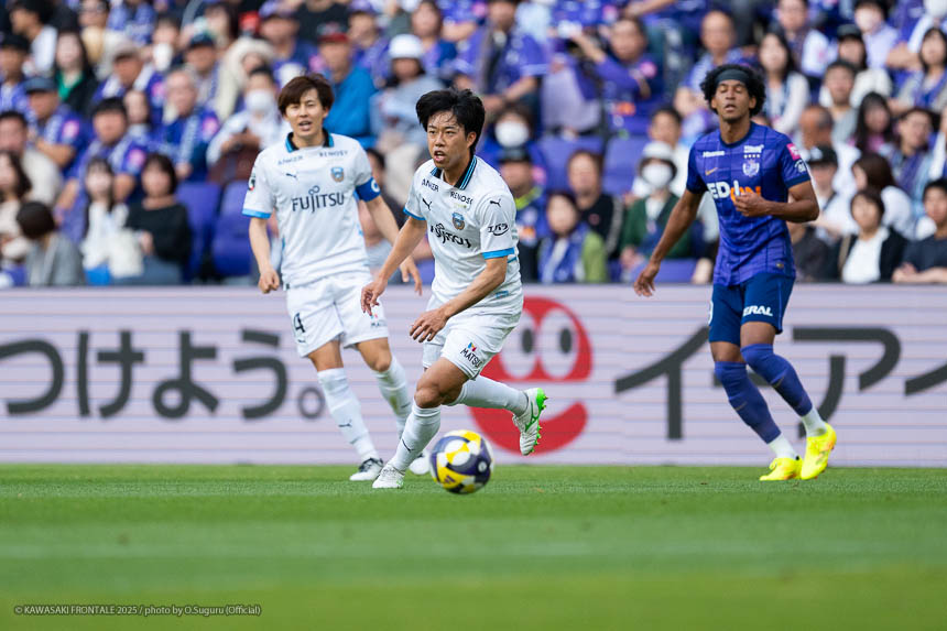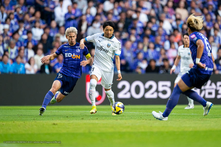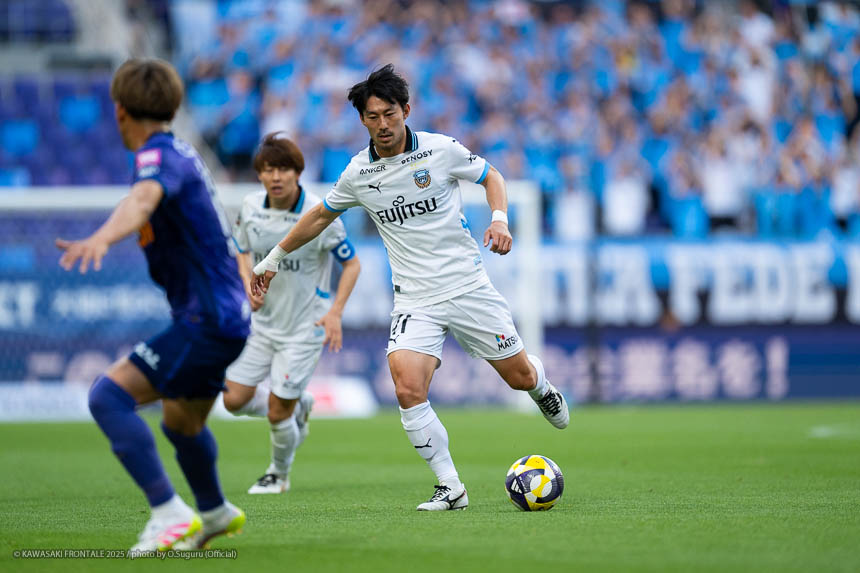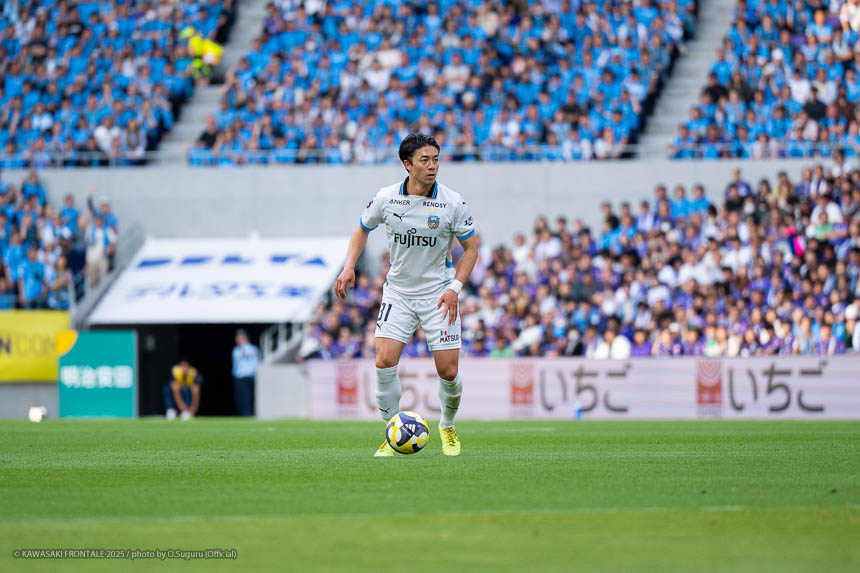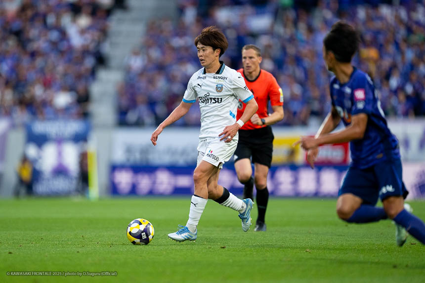 - 相手がマンツーマンのイメージで、局面で1人はがせれば全部ひっくり返せるというスカウティングもあった。そこは意識していたし、何よりも手前だけじゃなく背後を見ながらボールを動かせたことでビルドアップがスムーズにいったと思う。そこは継続していきたい。ここ最近、相手の状態を見ながら後ろの選手も真ん中の選手を見てくれているし、真ん中で数的優位をうまく使いながら前進できているシーンが多い。それがボールを握れている要因。ただチャンスはもう少し作れると思う。最後のアタッキングサードではボールに関わる人数が多いぶん、どうしてもゴール前の人が減ってしまう。今日の前半にアキさん(家長昭博)がうまく合わせた場面のように、あれだけ中に人が入るとチャンスになる。ビルドアップ、アタッキングゾーンはちょっと切り分けて考えないといけないと思う。そうすれば崩し切ることもそうだし、単純に人数で上回れる部分もあると思う。