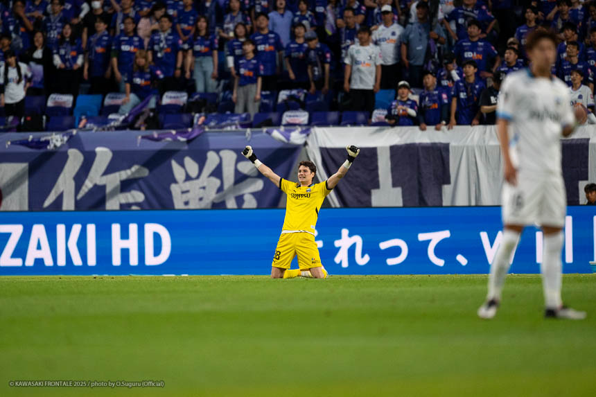 - ゴールシーンはコウタ(高井幸大)が競り勝っていたので入ったかなと思ったが、ボールがこぼれてきたのでなんとかふかさないようにと思って下に叩きつけた。あのまま1-0で終わるか、追加点を取って2-0でゲームを終わらせるのが一番だが、またクロスから失点してしまった。課題はまだまだたくさんあると思っている。ただアウェイで難しい相手、このスタジアムで勝てたのはすごく大きい。