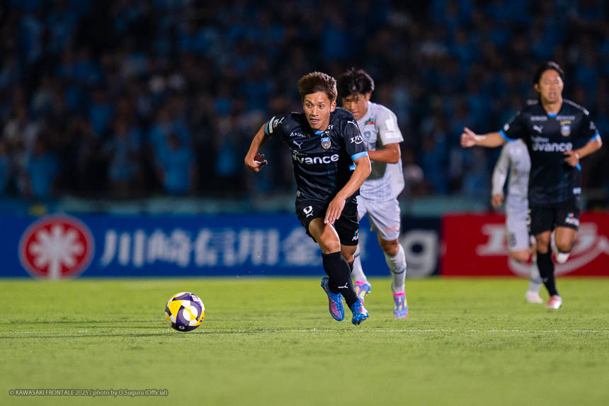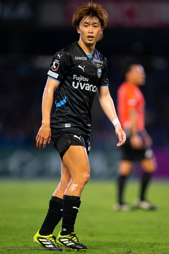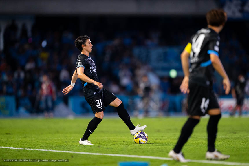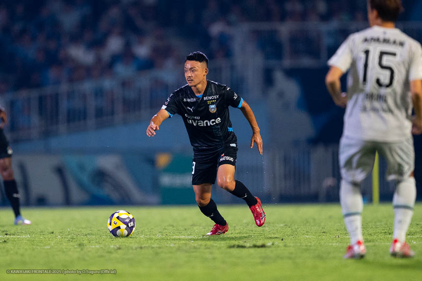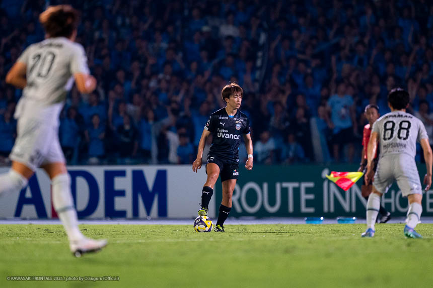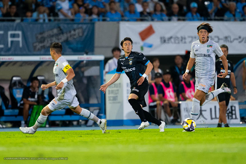 - 2人退場者が出るのはあまりない経験だったが、難しさはありつつもやれないことはないという感じだった。相手が早い段階でしかけるサイドを決めてくれたこともあって、圧縮して人数さえ足りていれば守れるかなという感覚があった。もったいない試合だった。10人になった段階では人数が足りないなかでビルドアップに参加するかどうかはケント(橘田健人)に任せて、相手が前から来るだろうという想定があったので、ひっくり返してエリソンが競り合ったこぼれ球に自分とヤスくん(脇坂泰斗)で人数をかけたほうが効率よく前進できるかなと感じていた。あとはケントがボールにうまく顔を出して出口になってくれたので、より前をとりやすかった。実際にそのイメージで得点を取ることができた。数的不利になったら相手が入りたいところを消しながらやるしかないし、10人のときにクロスを上げられるシーンもあったが、そこは最後のところでやらせないことにみんなフォーカスしていたと思う。それだけにセットプレーの2失点がもったいなかったし、なんとかできたんじゃないかという思いがある。