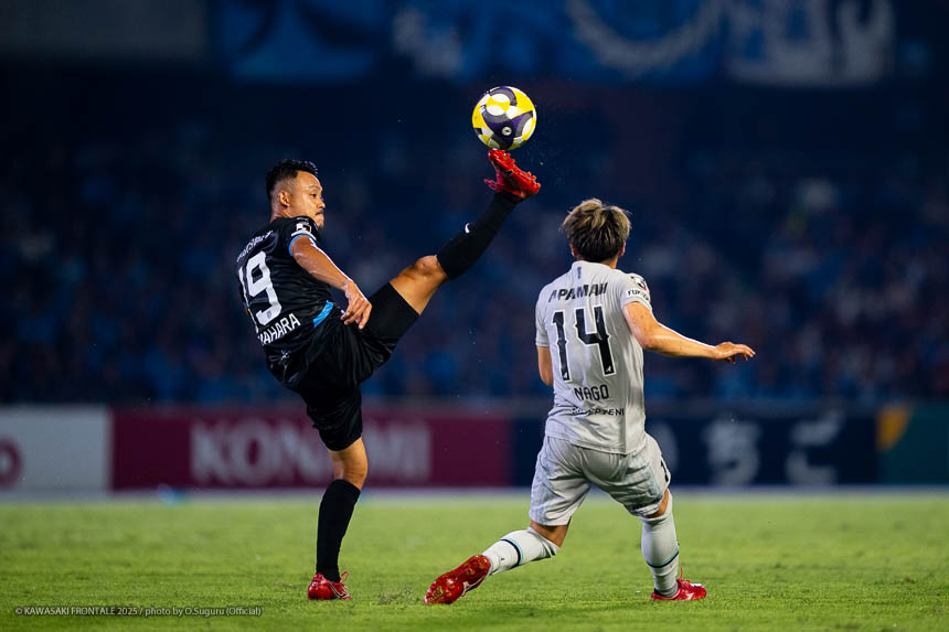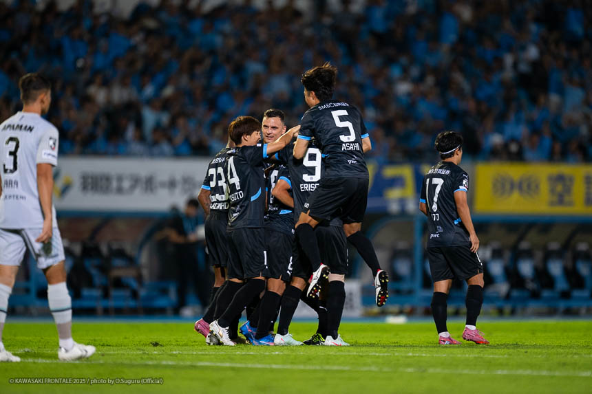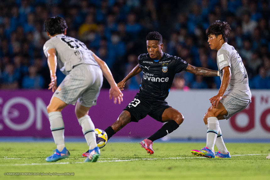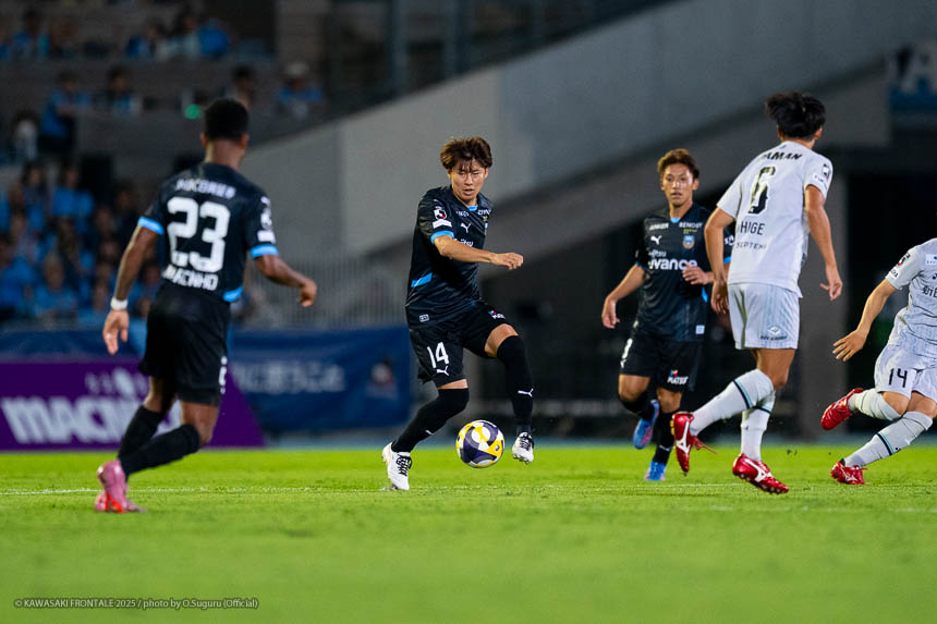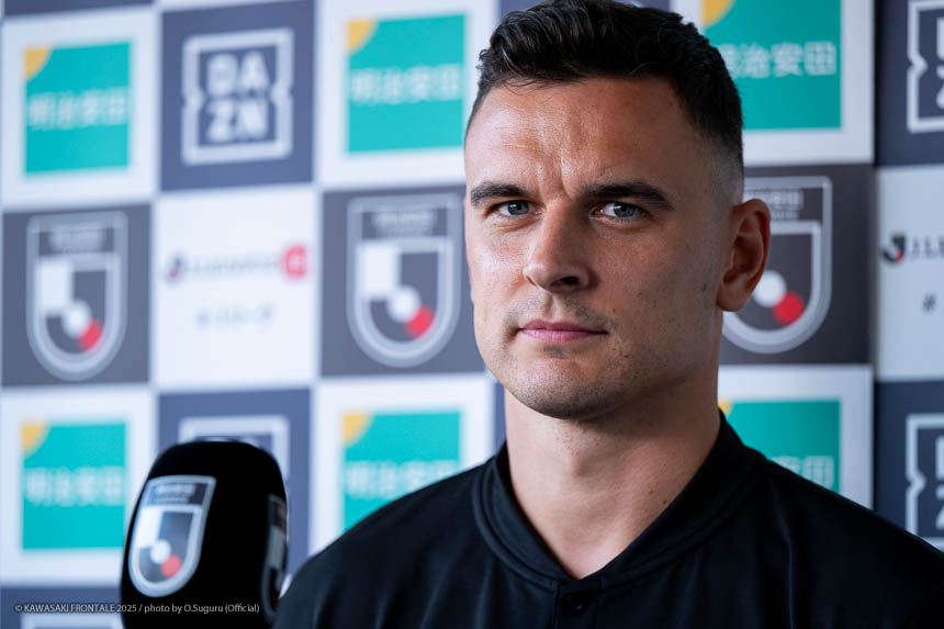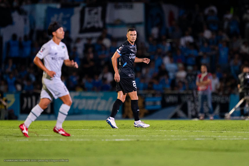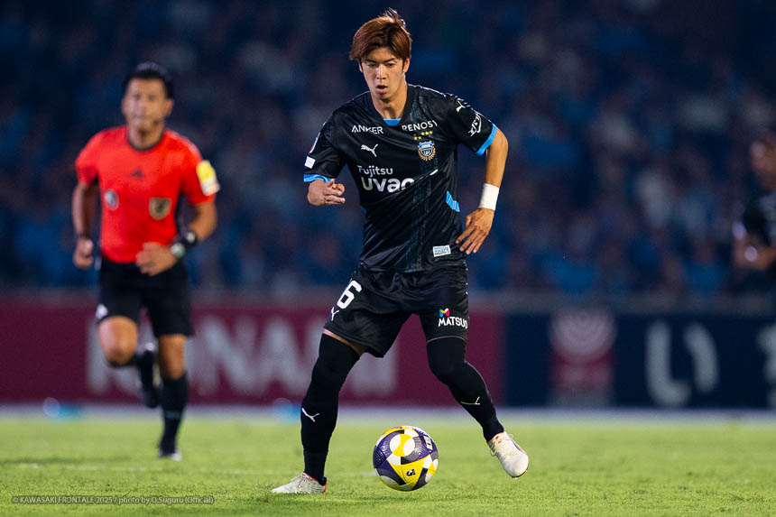 - 2人退場者が出るのはあまりない経験だったが、難しさはありつつもやれないことはないという感じだった。相手が早い段階でしかけるサイドを決めてくれたこともあって、圧縮して人数さえ足りていれば守れるかなという感覚があった。もったいない試合だった。10人になった段階では人数が足りないなかでビルドアップに参加するかどうかはケント(橘田健人)に任せて、相手が前から来るだろうという想定があったので、ひっくり返してエリソンが競り合ったこぼれ球に自分とヤスくん(脇坂泰斗)で人数をかけたほうが効率よく前進できるかなと感じていた。あとはケントがボールにうまく顔を出して出口になってくれたので、より前をとりやすかった。実際にそのイメージで得点を取ることができた。数的不利になったら相手が入りたいところを消しながらやるしかないし、10人のときにクロスを上げられるシーンもあったが、そこは最後のところでやらせないことにみんなフォーカスしていたと思う。それだけにセットプレーの2失点がもったいなかったし、なんとかできたんじゃないかという思いがある。
